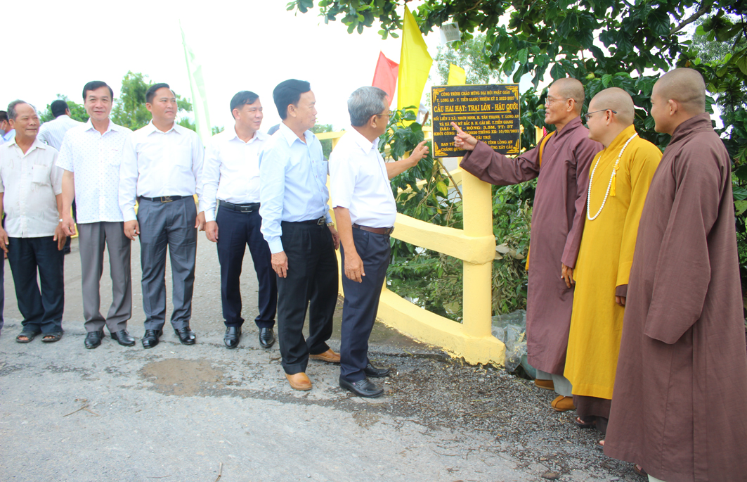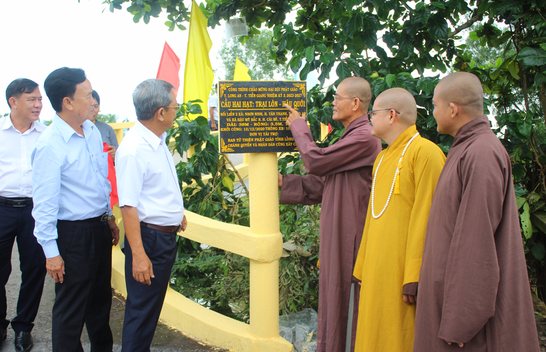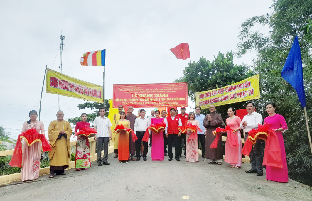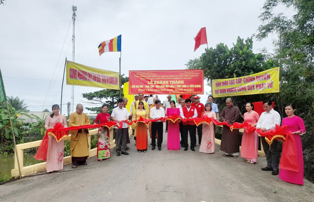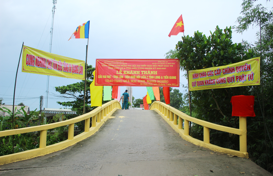 Hướng đến chào mừng Đại hội Đại biểu Phật giáo tỉnh Long An nhiệm kỳ X( 2022- 2027) Sáng ngày 28/ 05/ 2022( 28/04/ Nhâm Dần), Ban từ Thiện xã Hội GHPGVN tỉnh Long An, Ban Trị sự GHPGVN huyện Tân Thạnh phối hợp với UBND huyện Tân Thạnh, tỉnh Long An , UBND huyện Cái Bè, tỉnh Tiền Giang tổ chức lễ khánh thành cầu Hai Hạt – Trại Lòn – Hậu Quới nối liền 2 xã Nhơn Ninh, huyện Tân Thạnh và xã Hậu Mỹ Bắc B, huyện Cái Bè, tỉnh Tiền Giang.