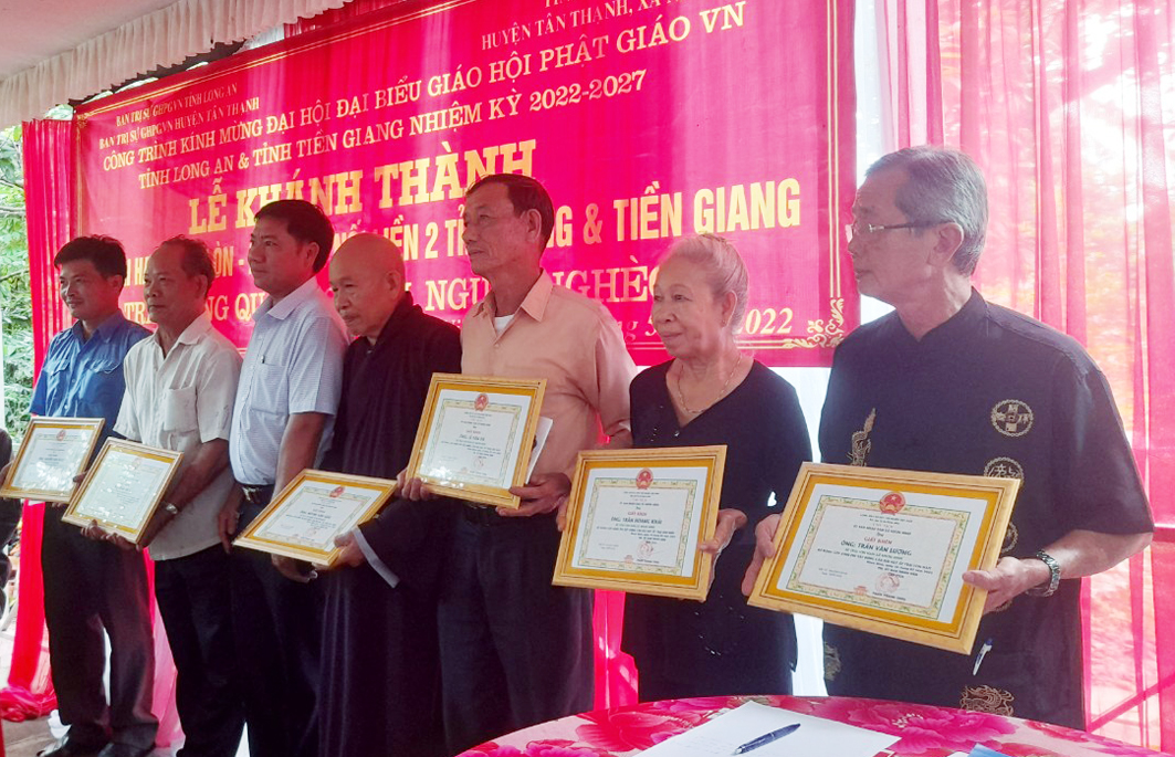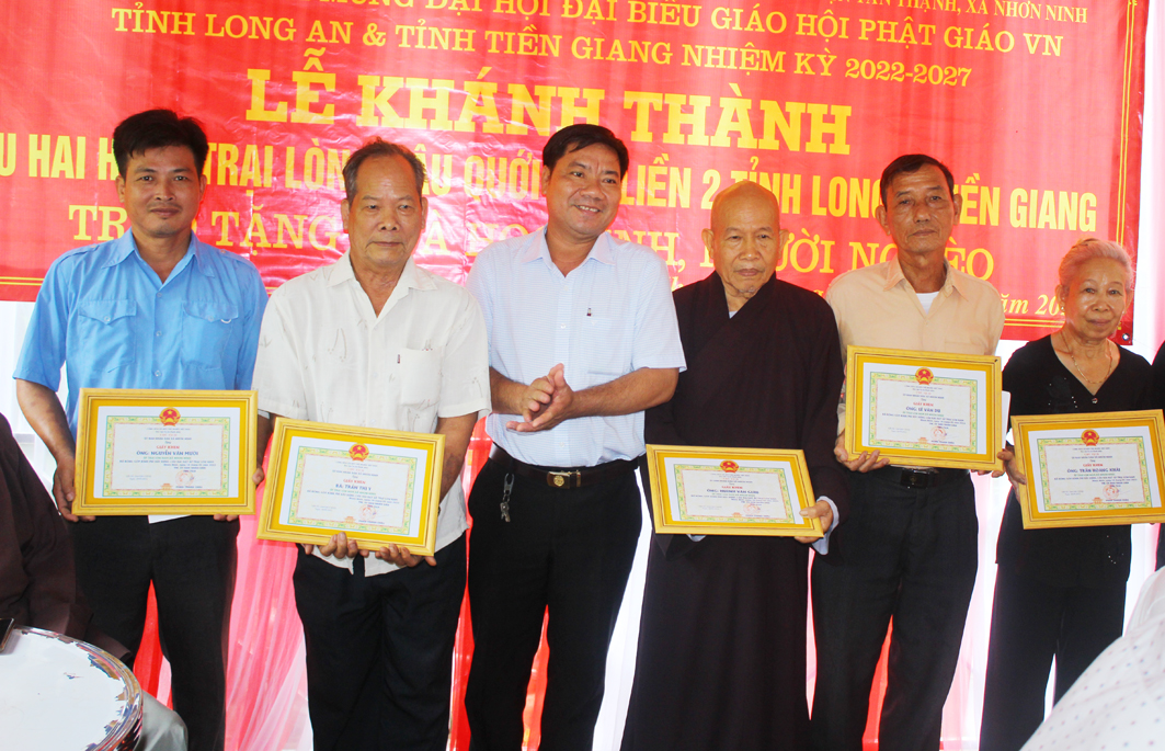 Chứng minh tham dự buổi lễ có Thượng toạ Thích Lệ Tấn- Phó Ban Từ thiện xã hội GHPGVN tỉnh Long An, Trưởng Ban Trị sự GHPGVN huyện Tân Thạnh; Đại đức Thích Lệ Duyên- Chánh thư ký Ban Trị sự GHPGVN tỉnh Long An; Đại đức Thích Huệ Phát- Chánh Thư ký Ban Trị sự GHPGVN tỉnh Tiền Giang, Cùng quý chư tôn đức trong doàn.