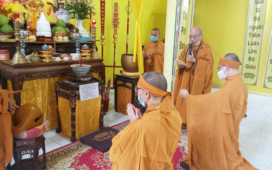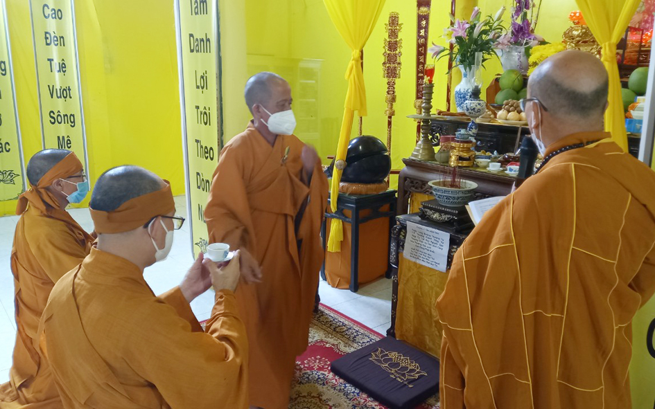 Trước giác Linh đài Đại đức Thích Huệ Quang thay mặt Tăng Ni Phật tử huyện dâng lời tri ân, nhắc lại công đức , những lời dạy của Ngài và phát nguyện tiếp tục công việc Phật sự hoà thượng đã truyền trao. Sau lời tưởng niệm, Chư tôn đức dâng hương, tụng thời kinh, cung tiến Giác linh. Buổi lễ tuy đơn giản do giãn cách xã hội nhưng thể hiện đầy đủ lòng tri ân sâu sắc của Tăng Ni và Phật tử đến Giác Linh Hòa Thượng.