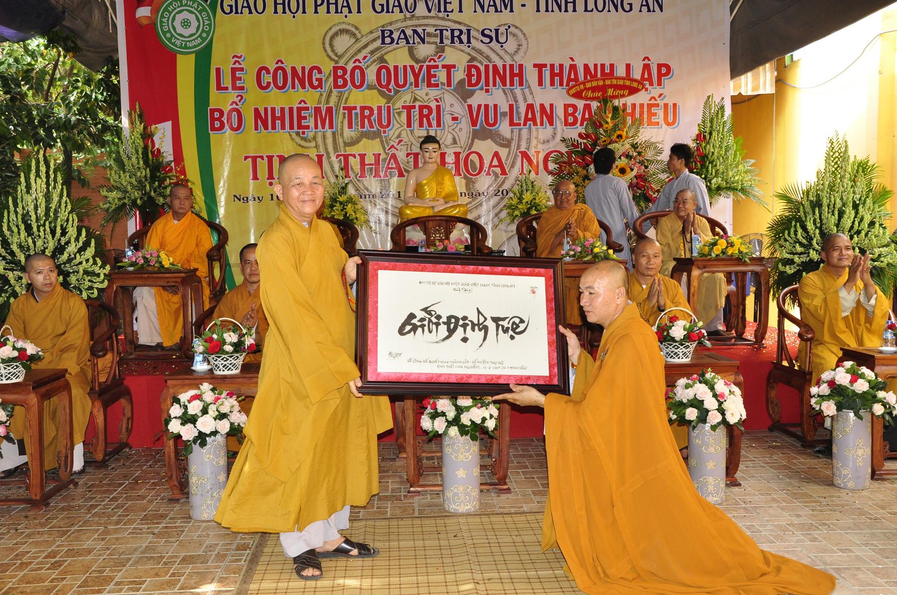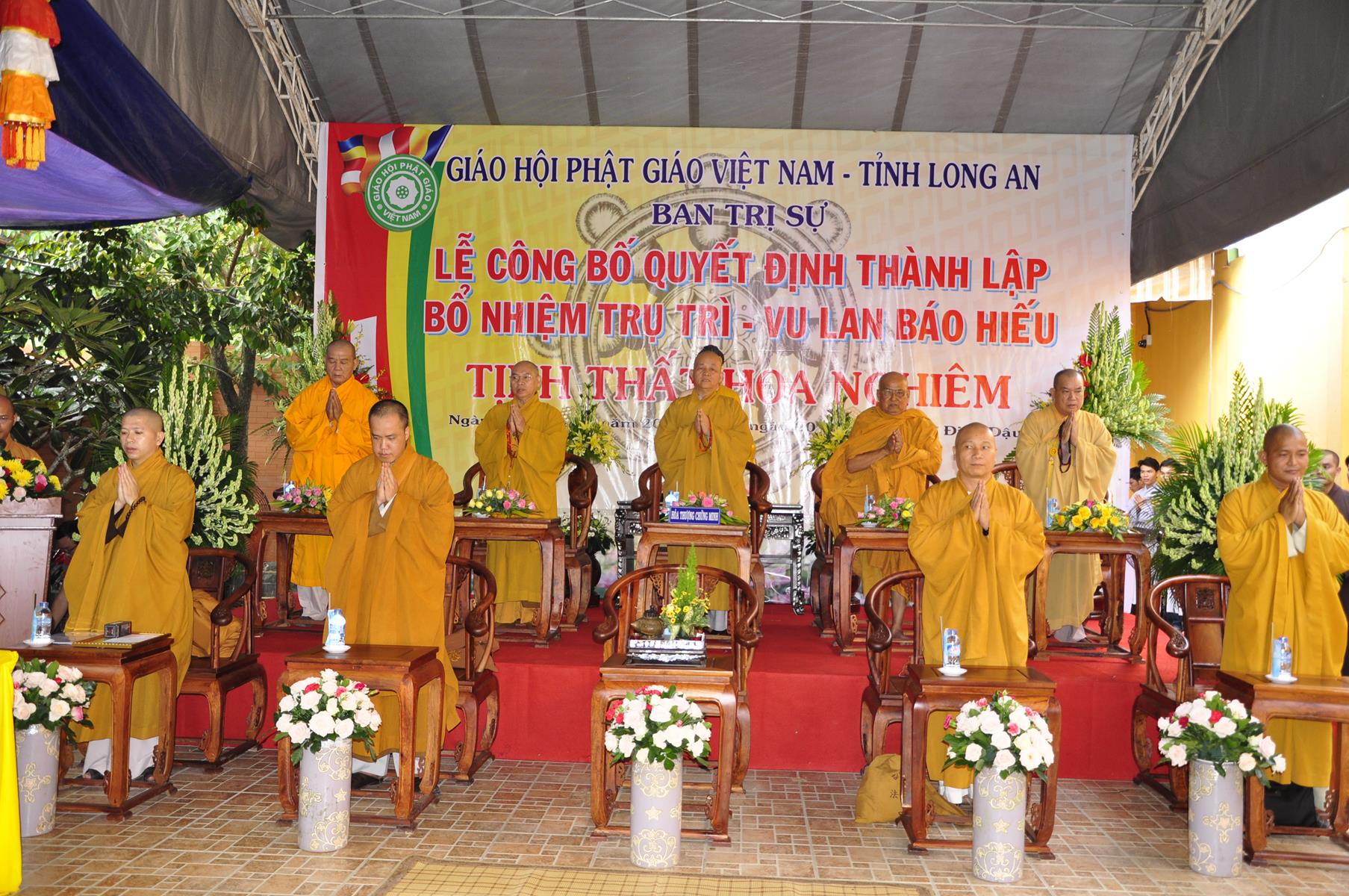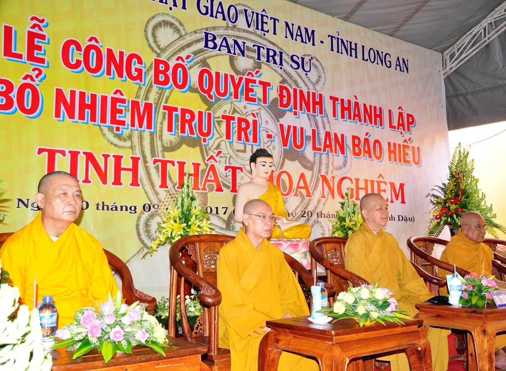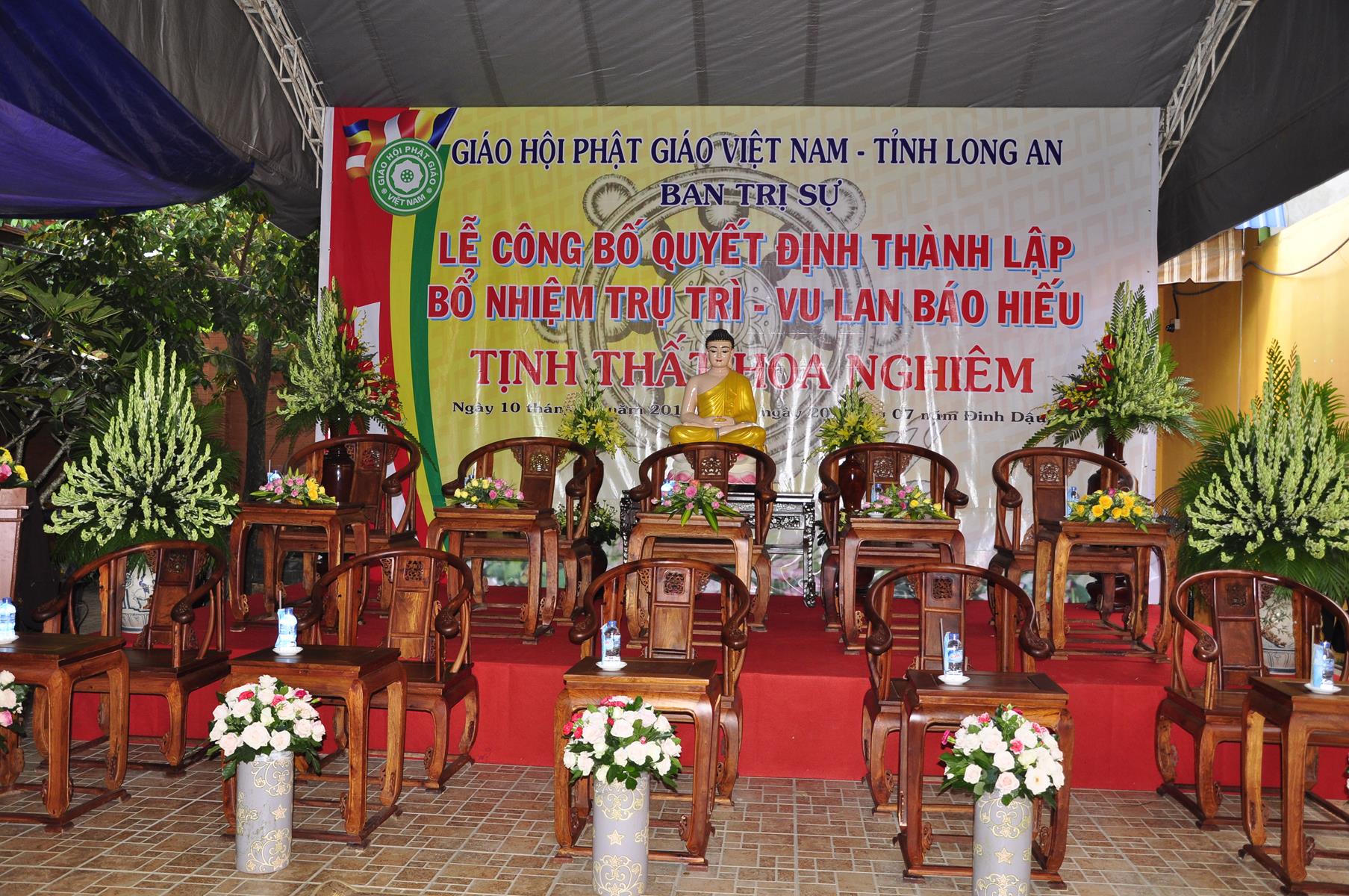 Sáng nay, vào lúc 8 giờ ngày 10 tháng 9 năm 2017 (nhằm 20.7.Đinh Dậu) Ban Trị sự GHPGVN tỉnh Long An tổ chức lễ công bố quyết định thành lập và bổ nhiệm trụ trì tịnh thất Hoa Nghiêm tại xã Phước Lý, huyện Cần Giuộc, tỉnh Long An.