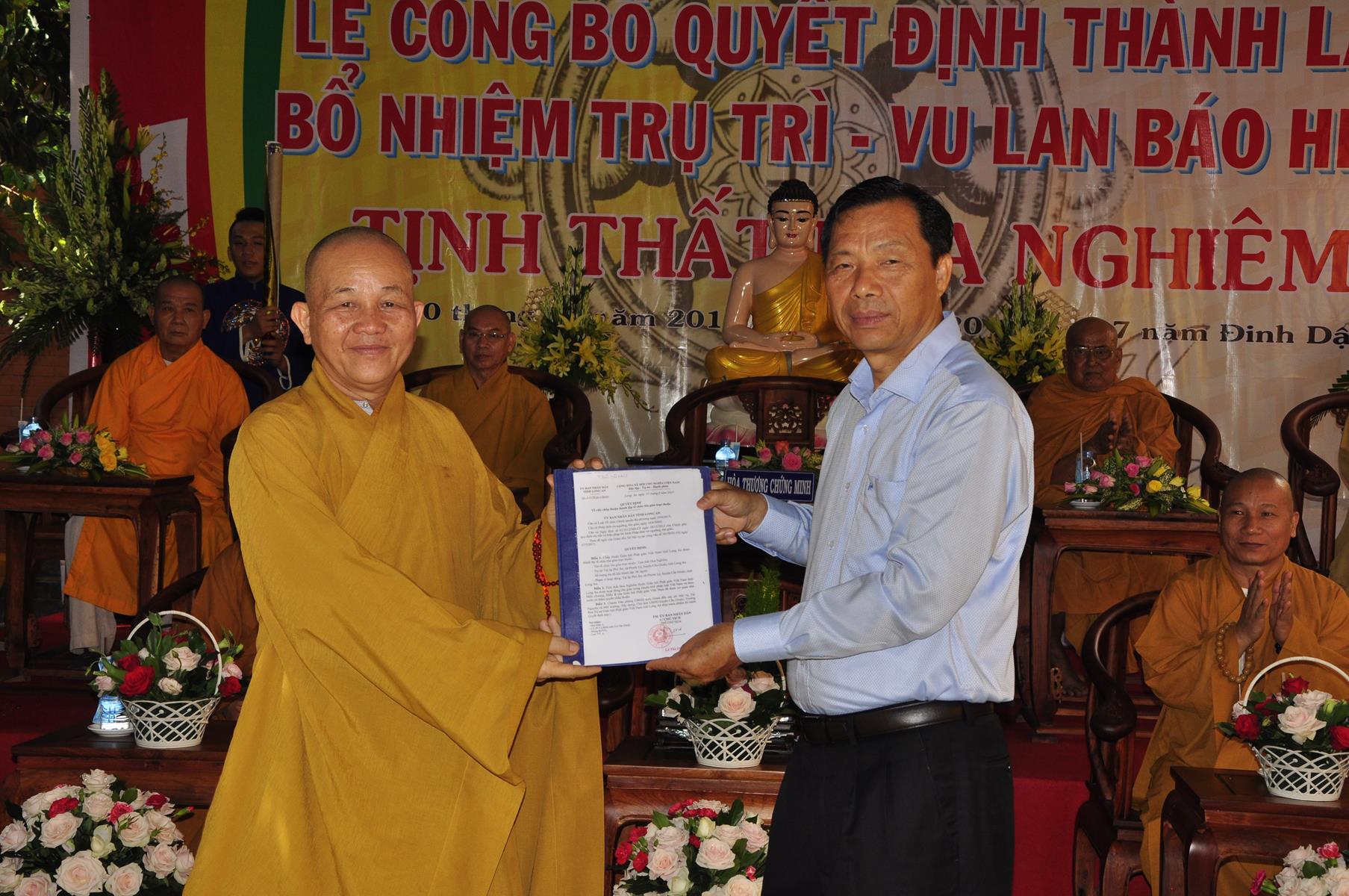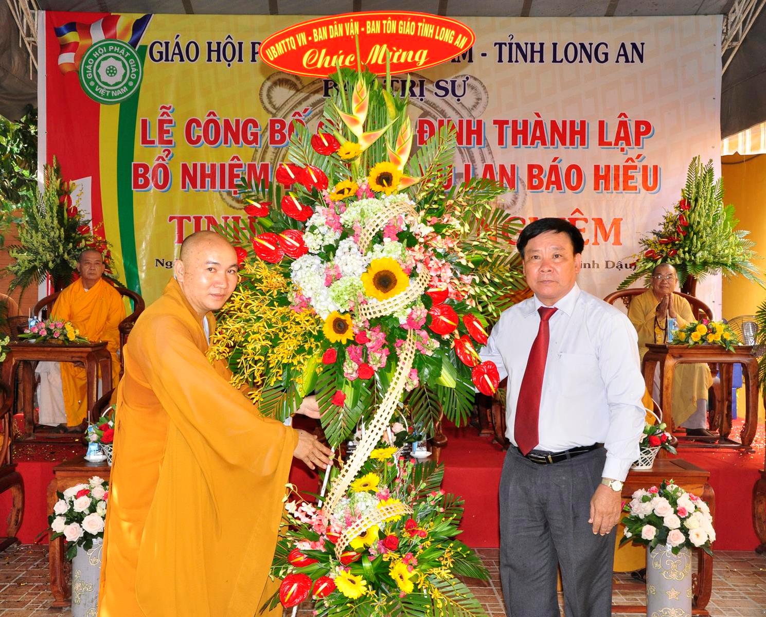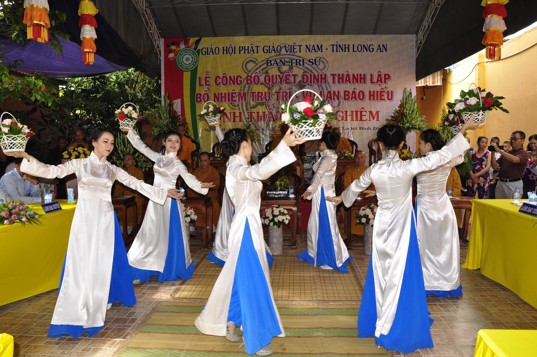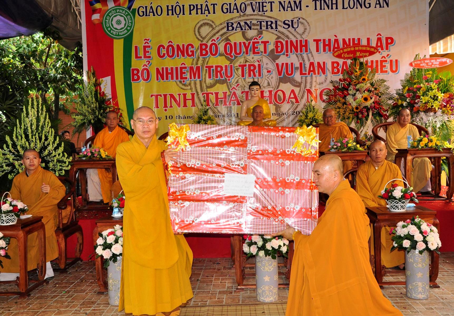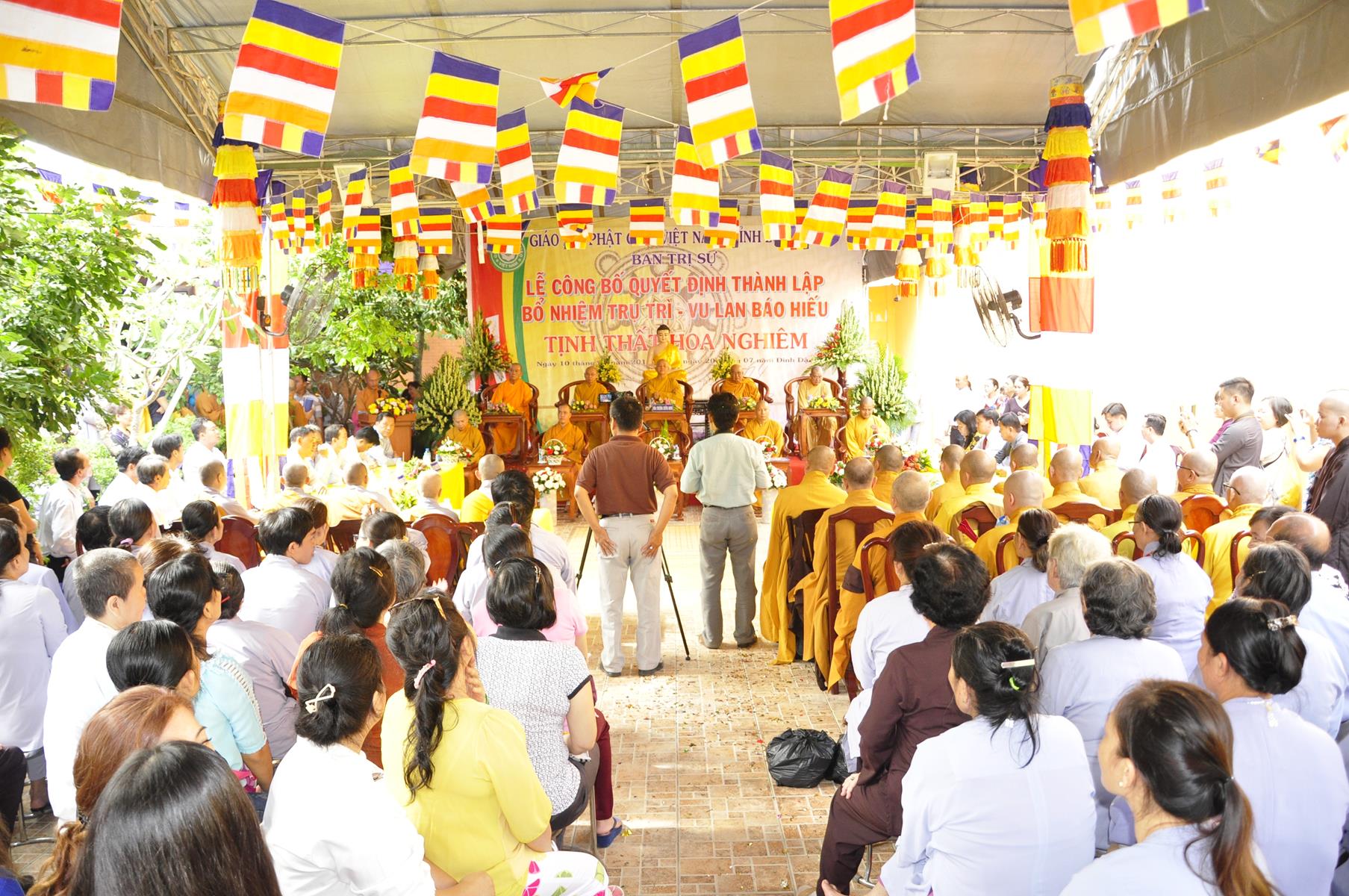 Sau nghi thức niệm Phật cầu gia bị, tuyên bố lý do và giới thiệu thành phần tham dự, ông Nguyễn Thanh Sơn: Trưởng ban Tôn giáo Dân tộc UBMTTQVN tỉnh Long An thông qua quyết định số 2809/QĐ/UBND về việc chấp thuận thành lập tổ chức tôn giáo trực thuộc (tịnh thất Hoa Nghiêm).
