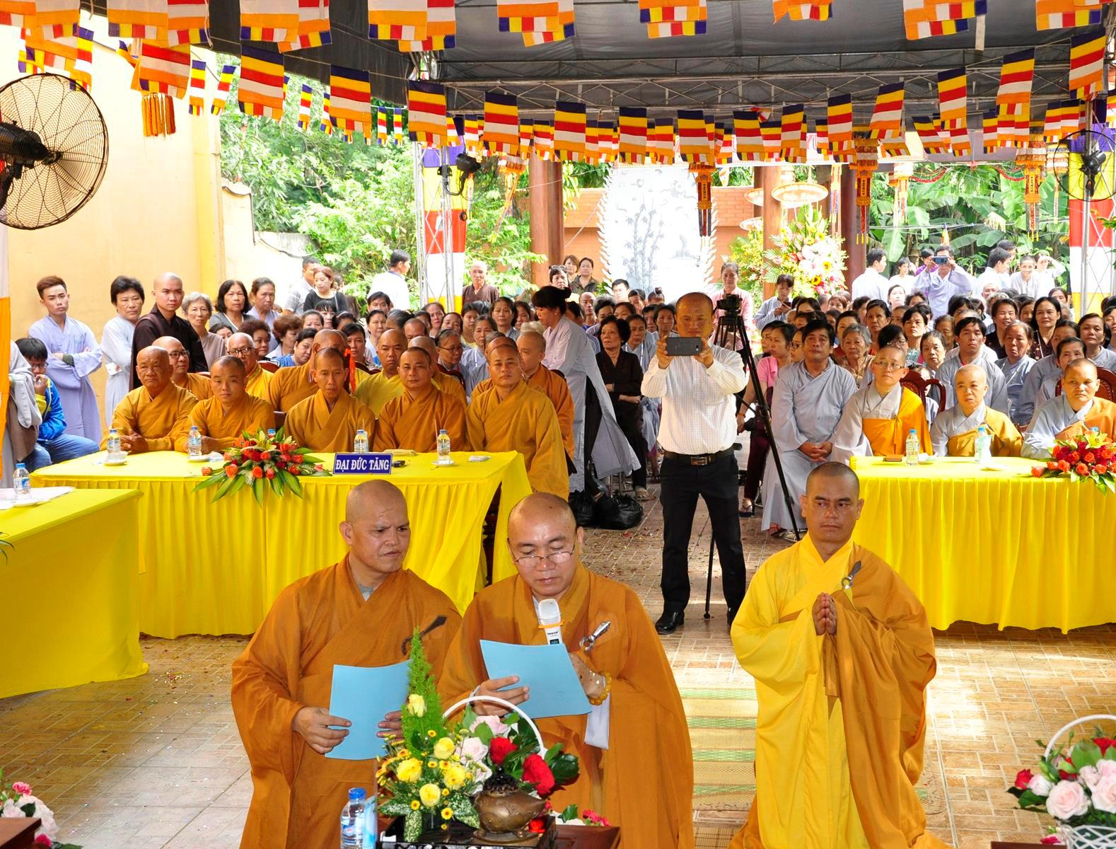 Buổi lễ dưới sự chứng minh của HT Thích Minh Thiện: Ủy viên HĐTS, Phó Trưởng ban Hoằng pháp TƯ, Trưởng ban Trị sự GHPGVN tỉnh Long An; HT Thích Huệ Bạch: Trưởng ban Trị sự GHPGVN huyện Cần Giuộc; cùng Chư Tôn đức Tăng Ni.