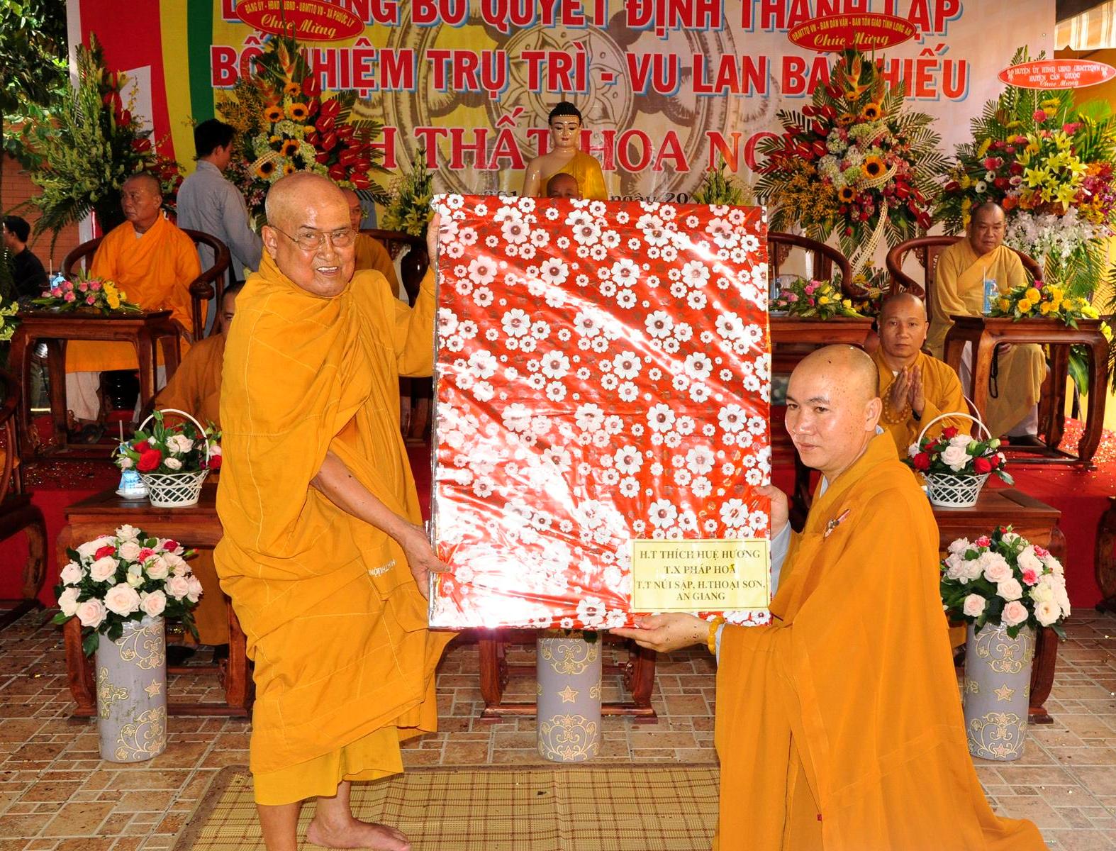 Nhiều lẵng hoa, phần quà được trao tặng đến Đại đức tân trụ trì Thích Giác Tôn. Buổi lễ thành công và khép lại sau lời cảm tạ của Đại đức Thích Lệ Trí.