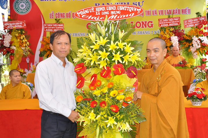 Tiếp theo chương trình là phần tặng hoa chúc mừng từ quý ban ngành Phật giáo và Chính quyền.