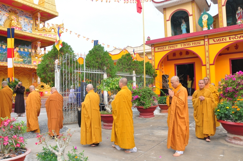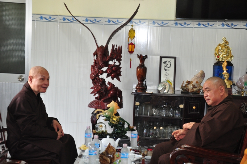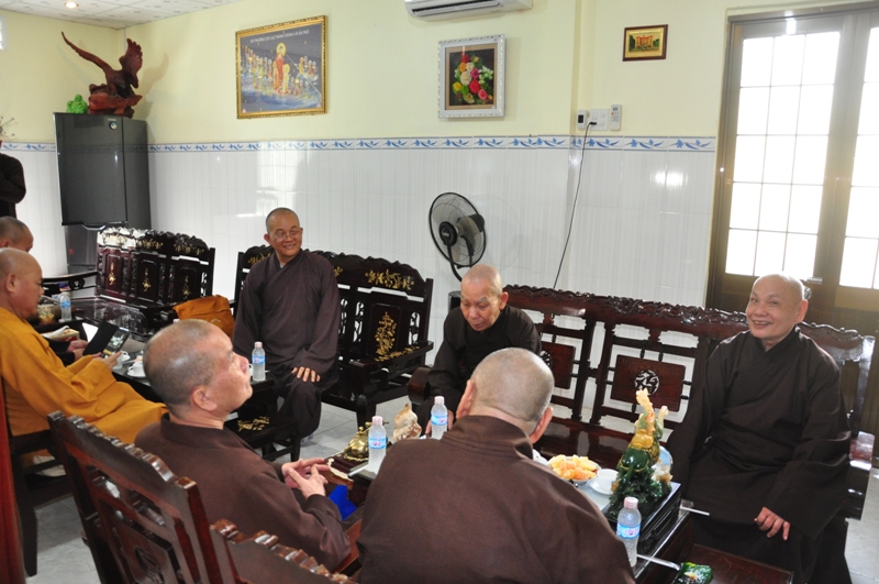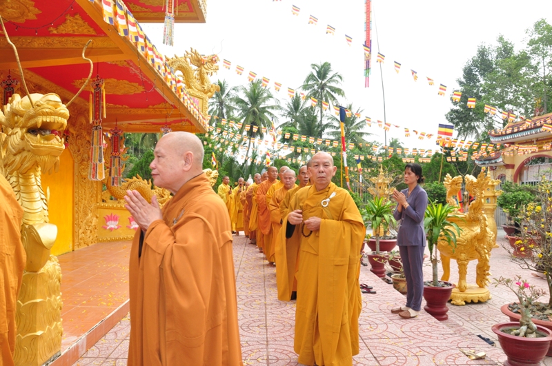 Buổi chiều cùng ngày, HT Thích Thiện Nhơn đã hướng dẫn phái đoàn Chư tôn đức lãnh đạo văn phòng 2 TW GH cùng môn nhơn pháp quyến trở về Tổ đình Vạn Hoà – thị trấn Cầu Kè, tỉnh Trà Vinh đảnh lễ Tổ sư tại chốn Tổ.