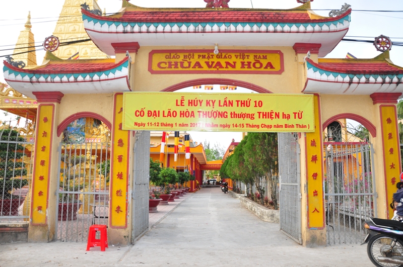 Sáng ngày 12/ 1/ 2017 (15.12.Bính Thân), HT Thích Thiện Thông – Thành viên HĐCM GHPGVN, chứng minh BTS GHPGVN tỉnh Trà Vinh, trụ trì Tổ đình Vạn Hoà cùng môn nhơn pháp quyến tổ chức lễ huý nhật Giác linh cố Đại lão Hoà thượng thượng Thiện hạ Từ được tổ chức tại Tổ đình Vạn Hoà.