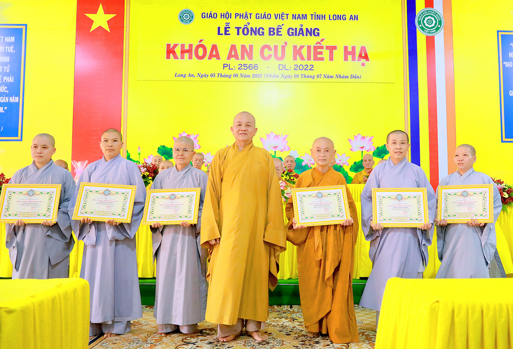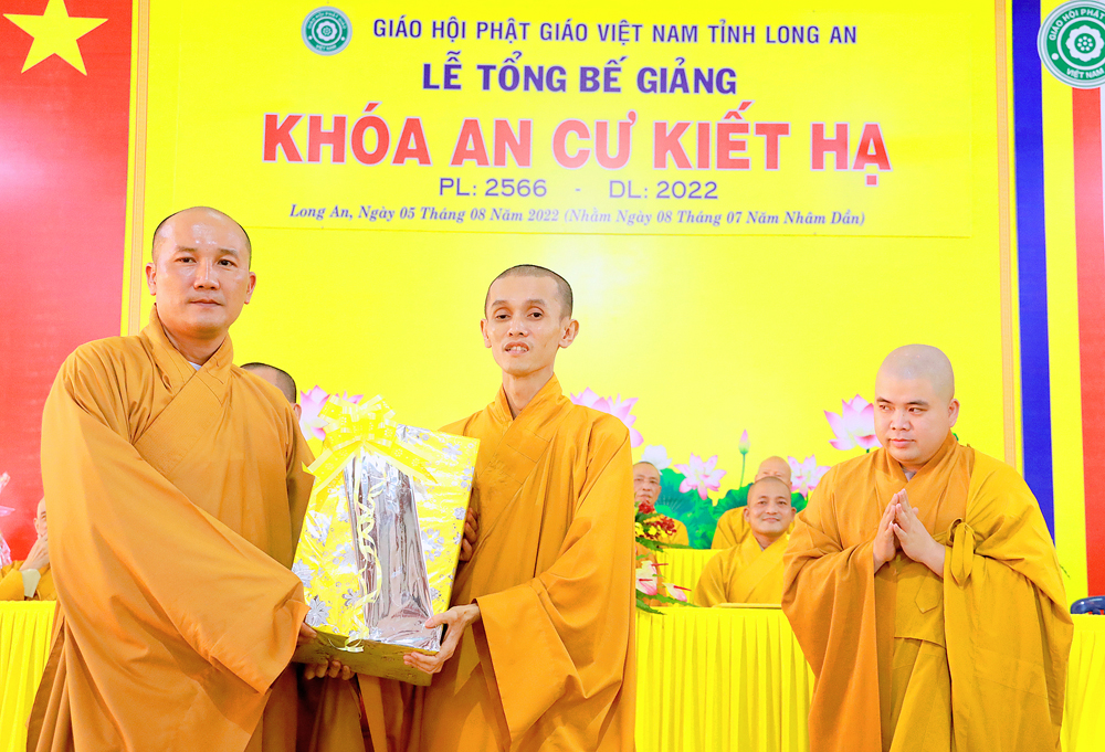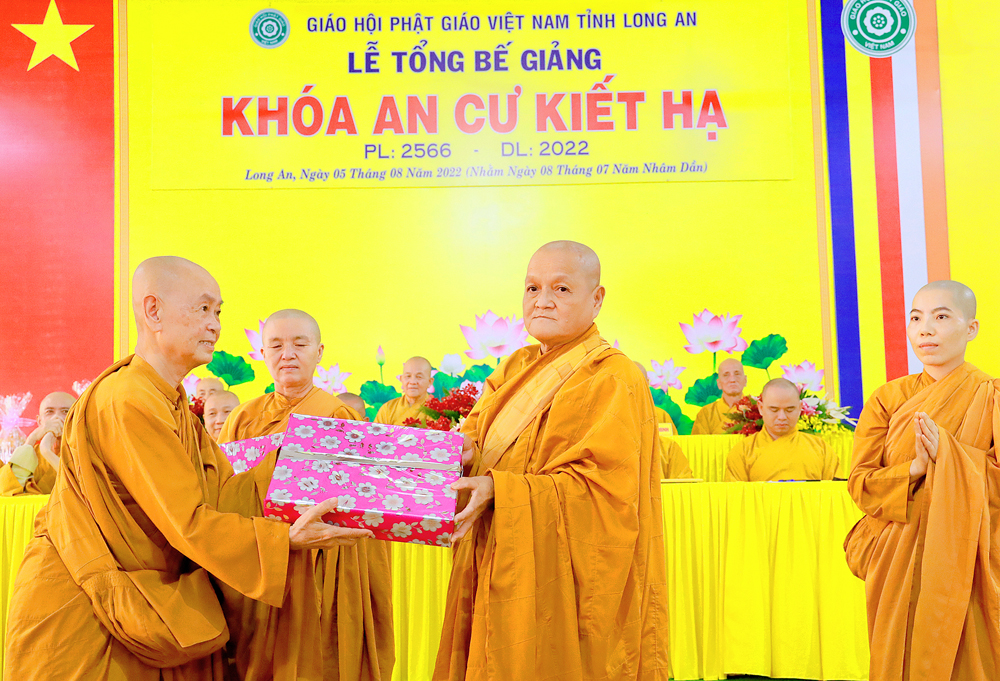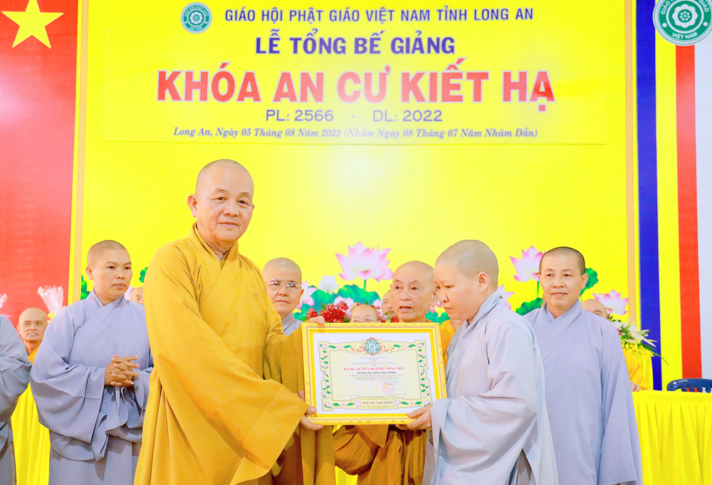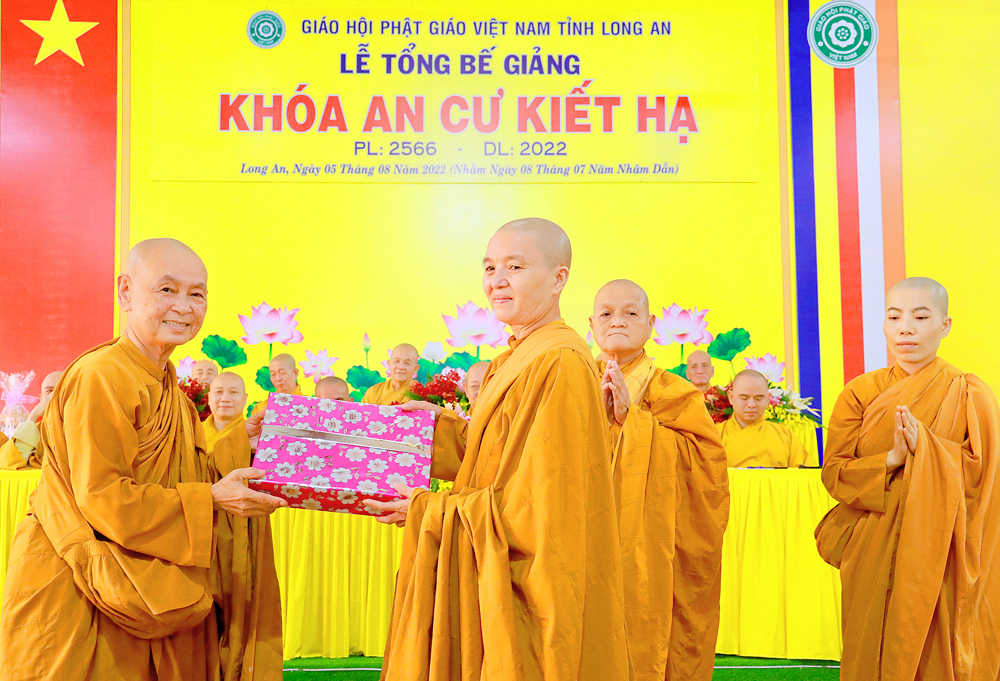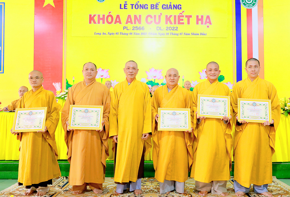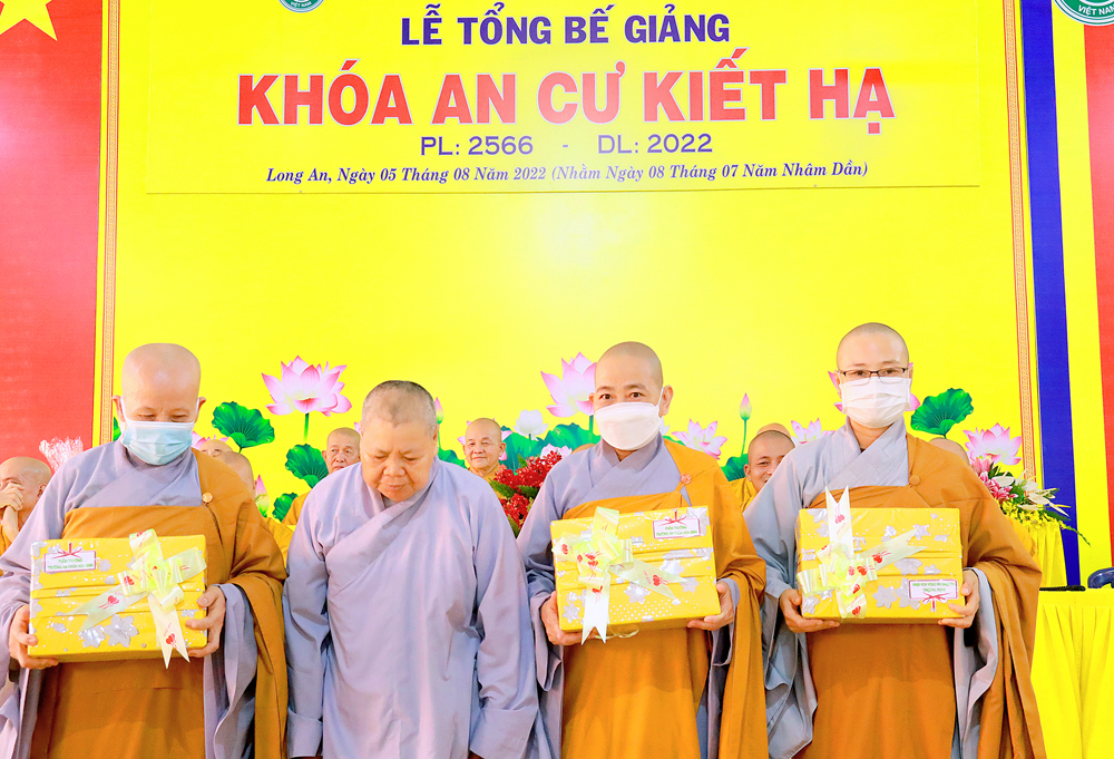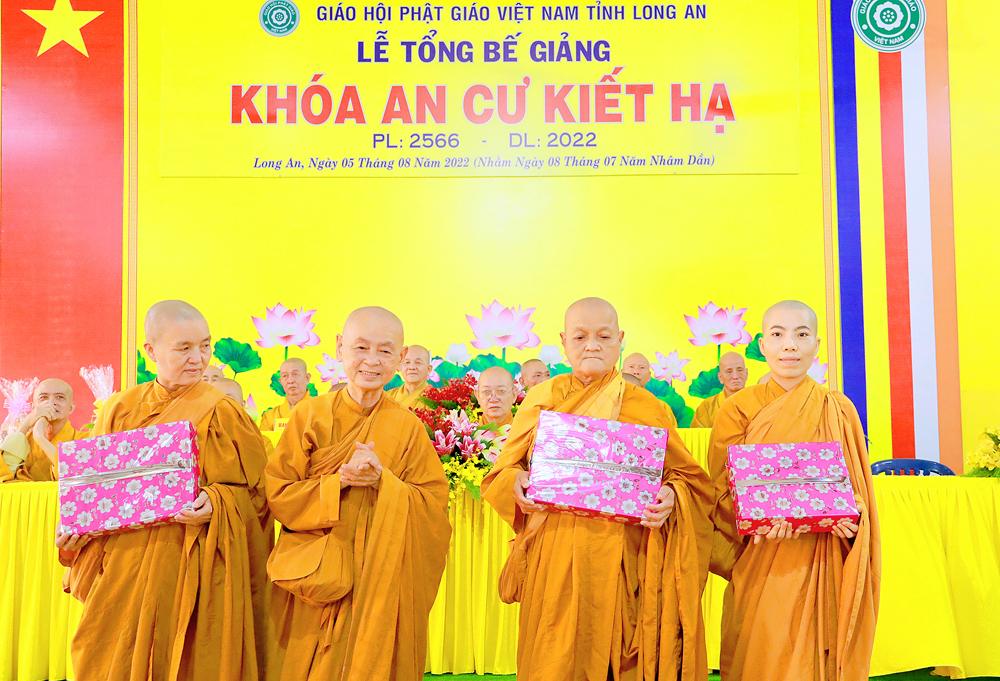 Sau ba tháng tu học, trưởng dưỡng đạo tâm, vun bồi đạo nghiệp, Sáng ngày (nhằm ngày 08/7/Nhâm Dần), Ban Trị sự GHPGVN tỉnh Long An tổ chức Lễ Tổng Bế Giảng Khóa An Cư Kiết Hạ PL. 2566 DL. 2022 tại Văn phòng BTS GHPGVN huyện Thủ Thừa – Chùa Kim Cang, huyện Thủ Thừa, tỉnh Long An.