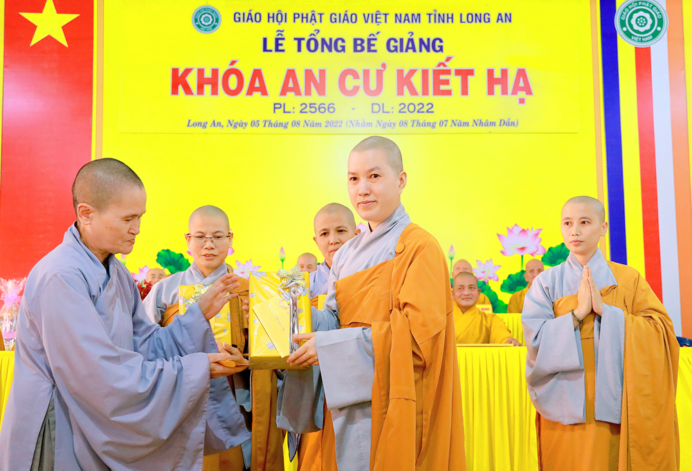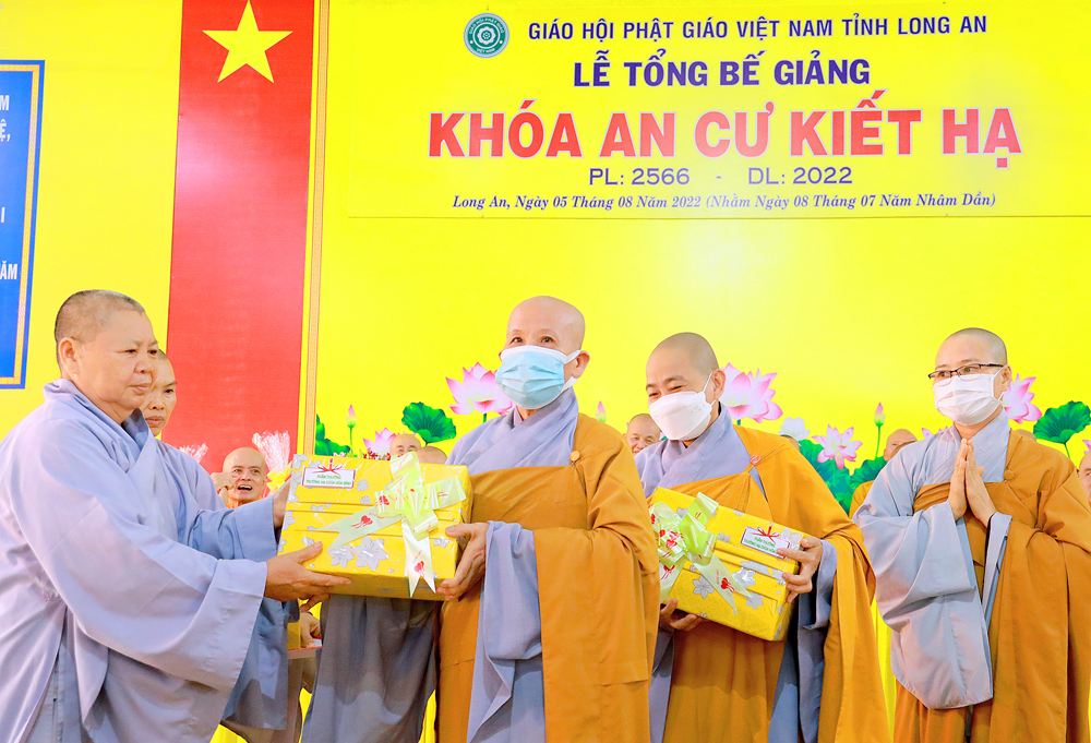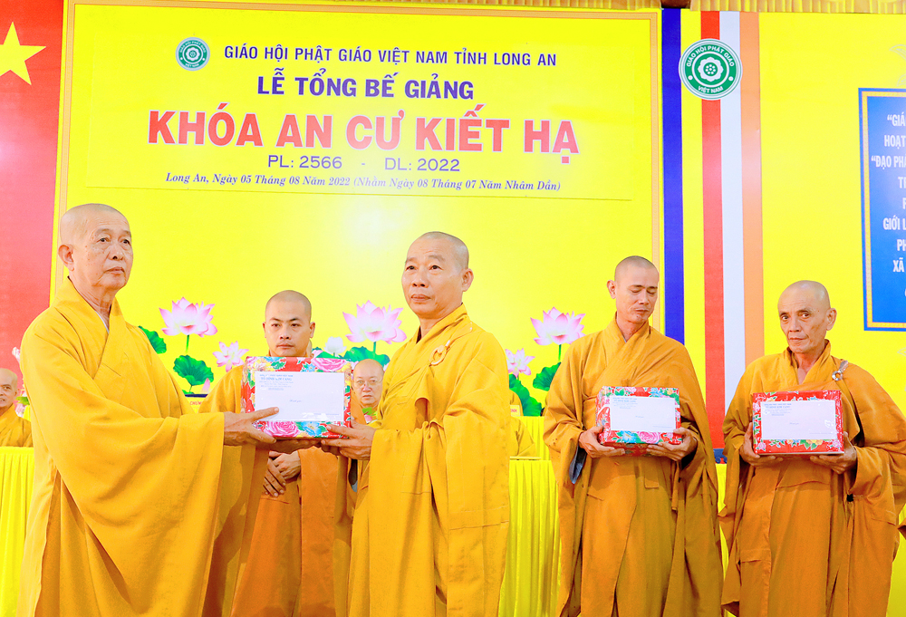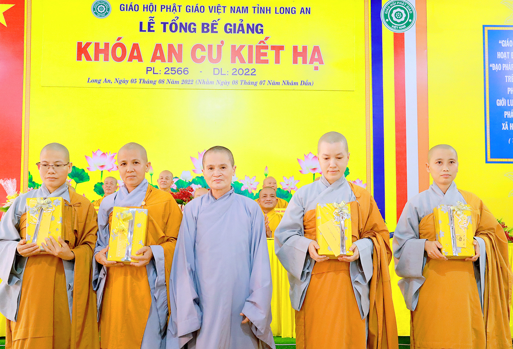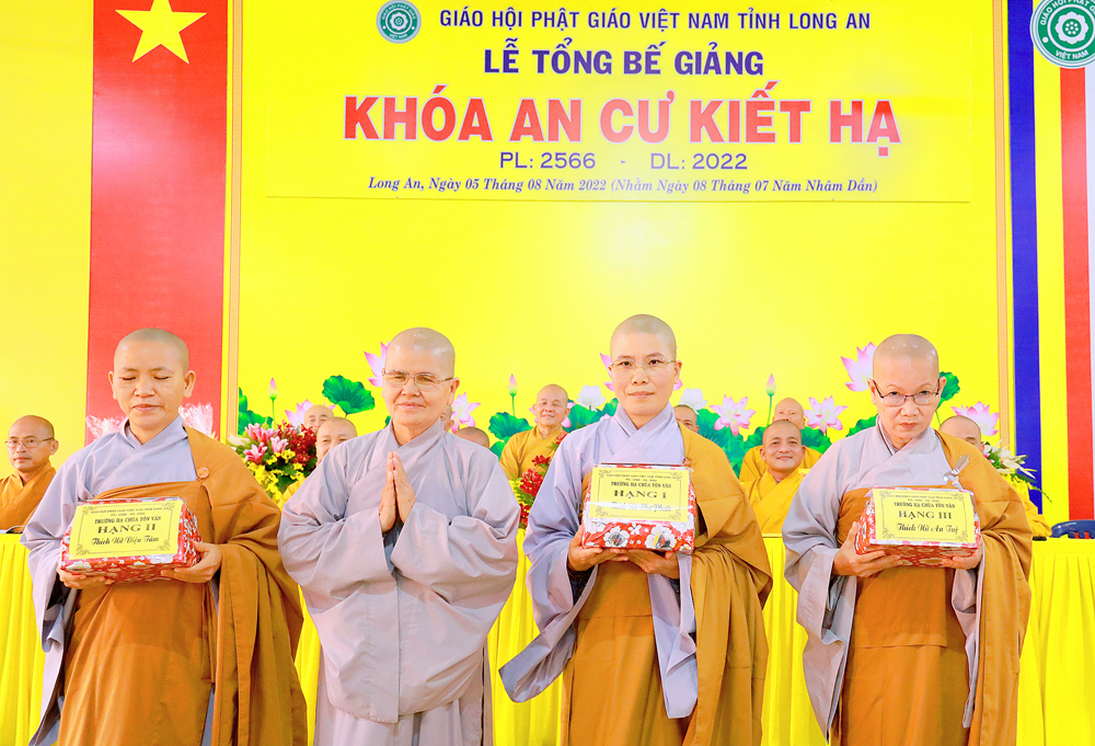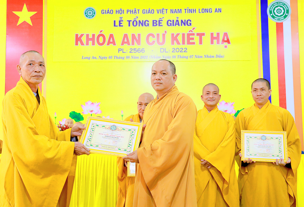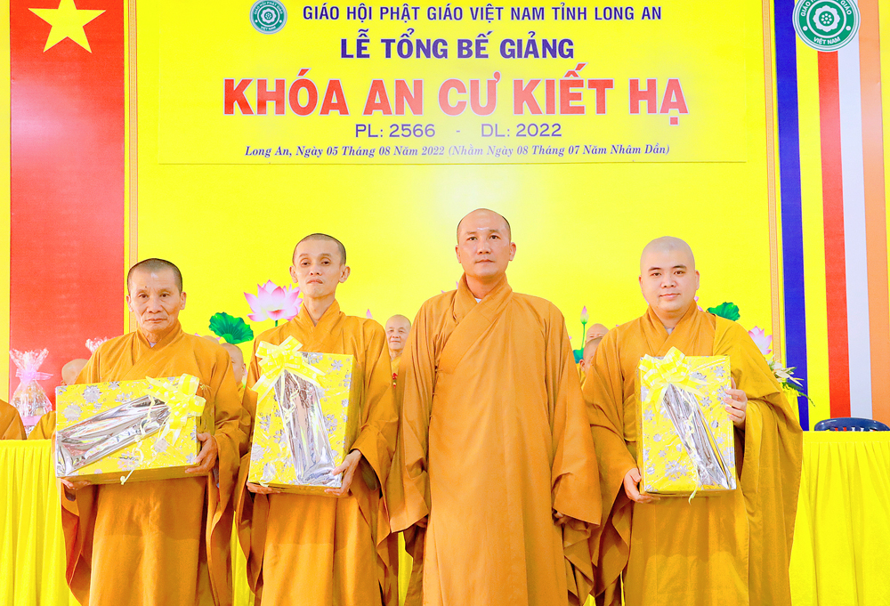 Sau ba tháng tu học, trưởng dưỡng đạo tâm, vun bồi đạo nghiệp, Sáng ngày (nhằm ngày 08/7/Nhâm Dần), Ban Trị sự GHPGVN tỉnh Long An tổ chức Lễ Tổng Bế Giảng Khóa An Cư Kiết Hạ PL. 2566 DL. 2022 tại Văn phòng BTS GHPGVN huyện Thủ Thừa – Chùa Kim Cang, huyện Thủ Thừa, tỉnh Long An.