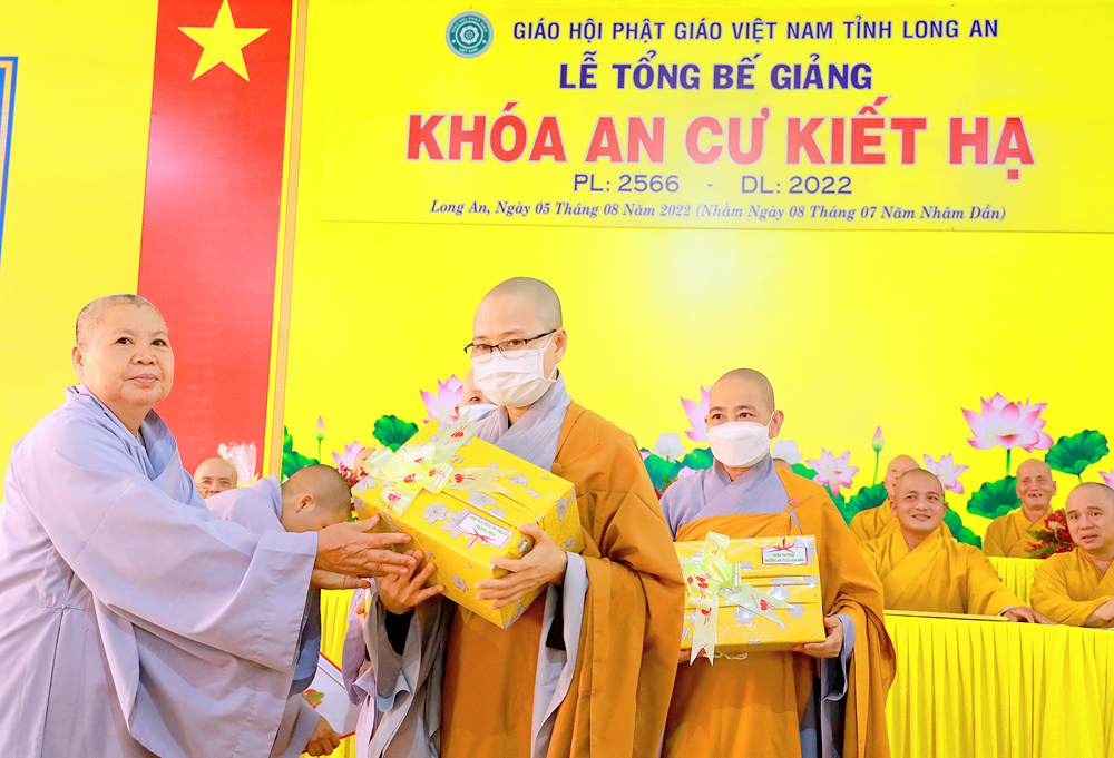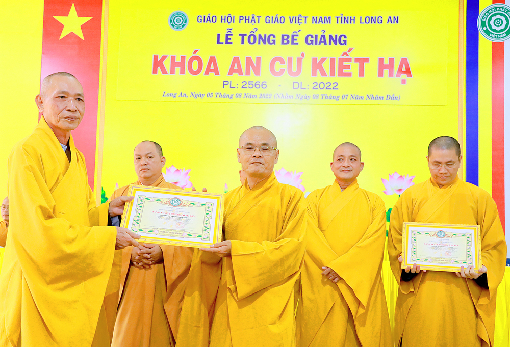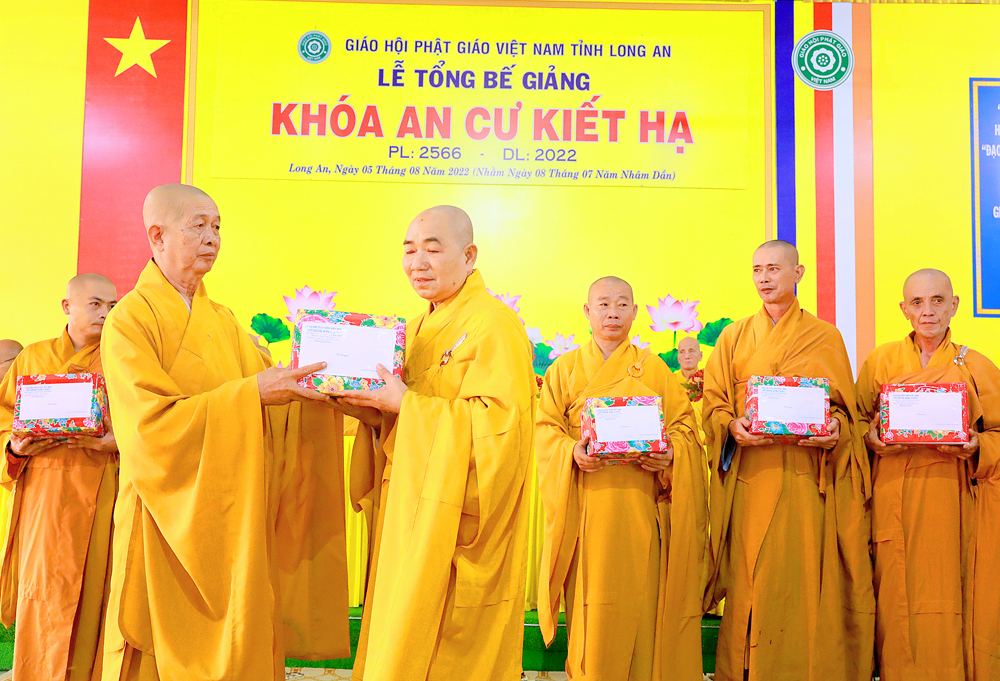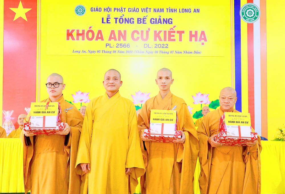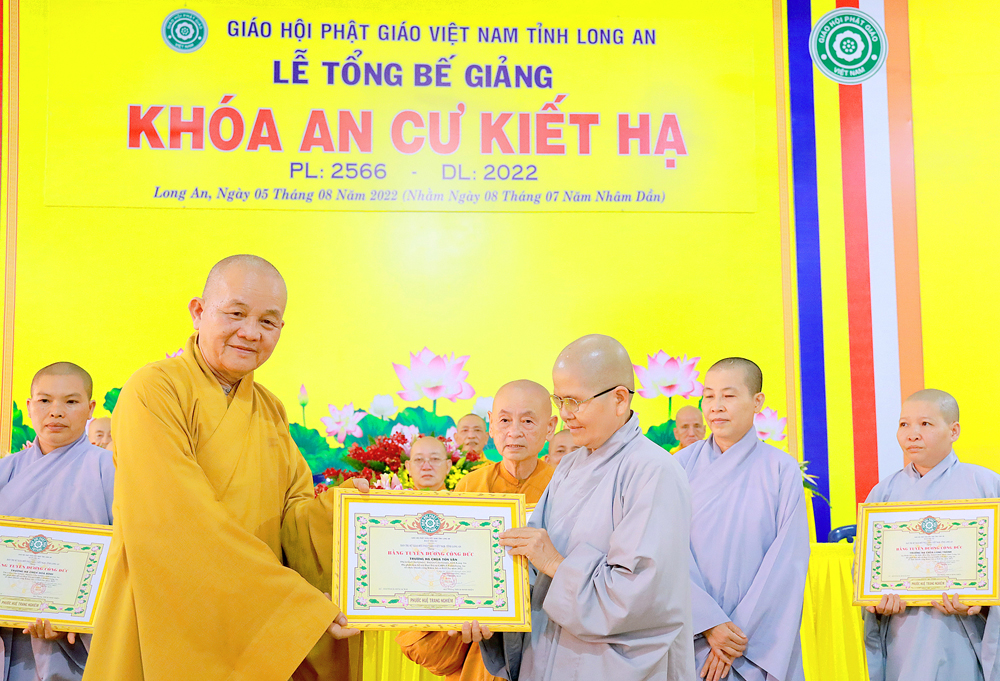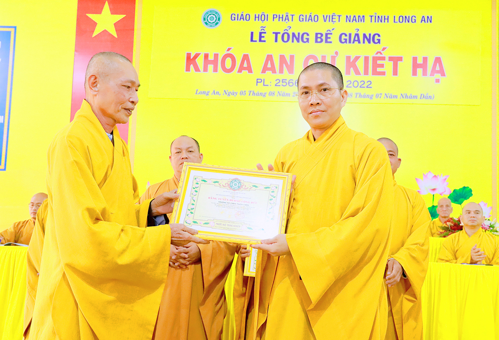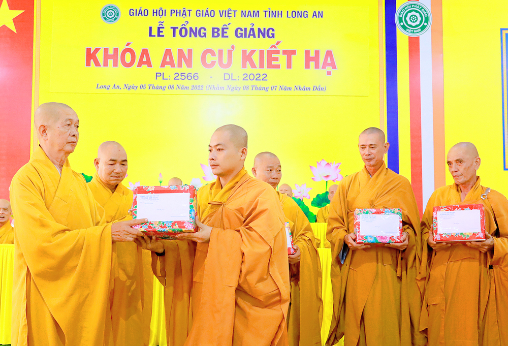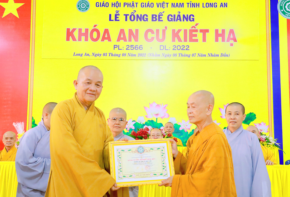 Sau ba tháng tu học, trưởng dưỡng đạo tâm, vun bồi đạo nghiệp, Sáng ngày (nhằm ngày 08/7/Nhâm Dần), Ban Trị sự GHPGVN tỉnh Long An tổ chức Lễ Tổng Bế Giảng Khóa An Cư Kiết Hạ PL. 2566 DL. 2022 tại Văn phòng BTS GHPGVN huyện Thủ Thừa – Chùa Kim Cang, huyện Thủ Thừa, tỉnh Long An.