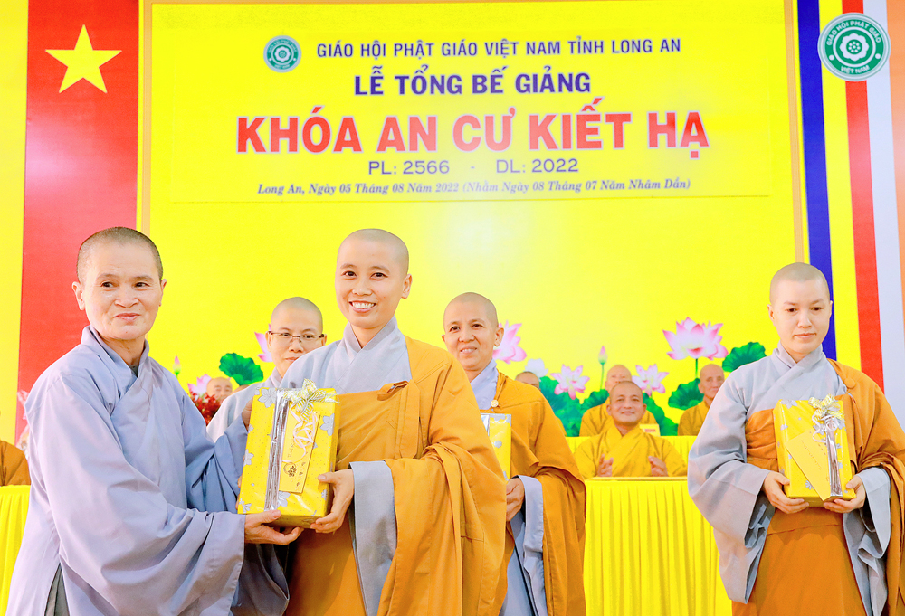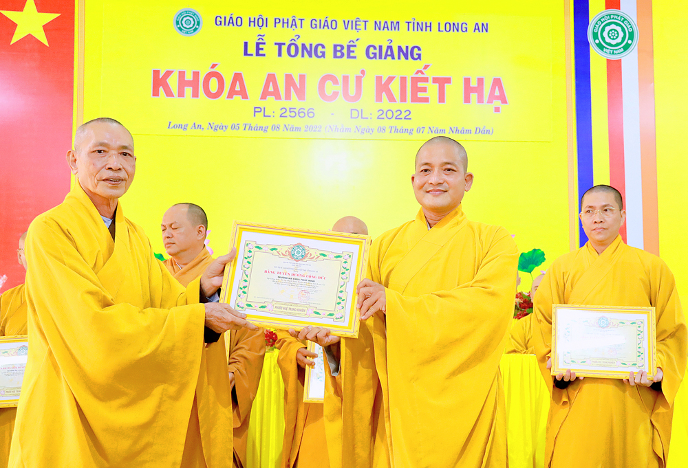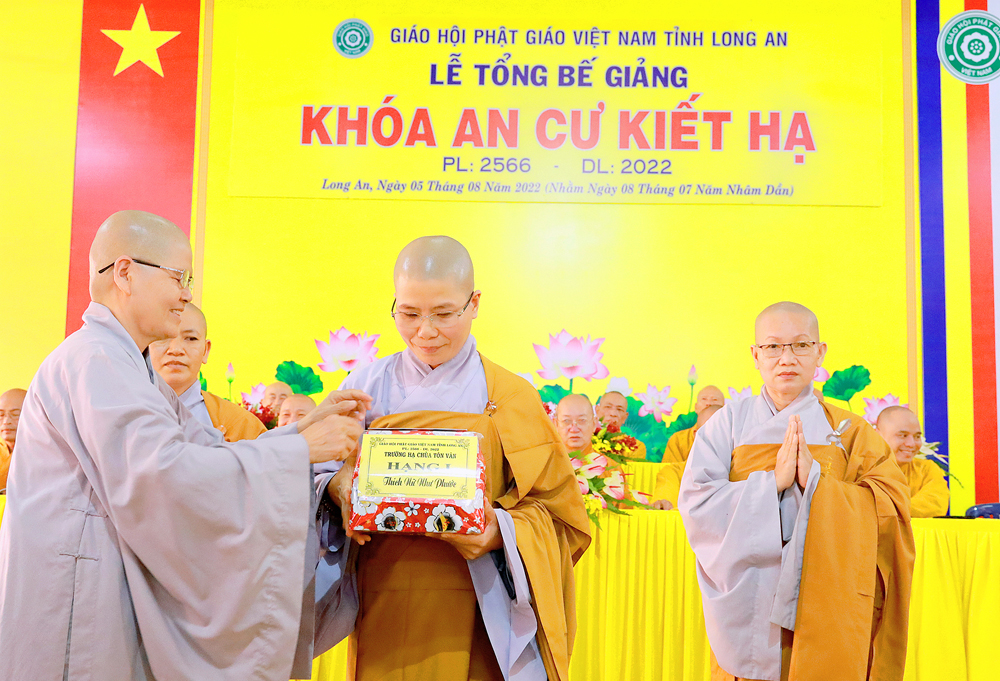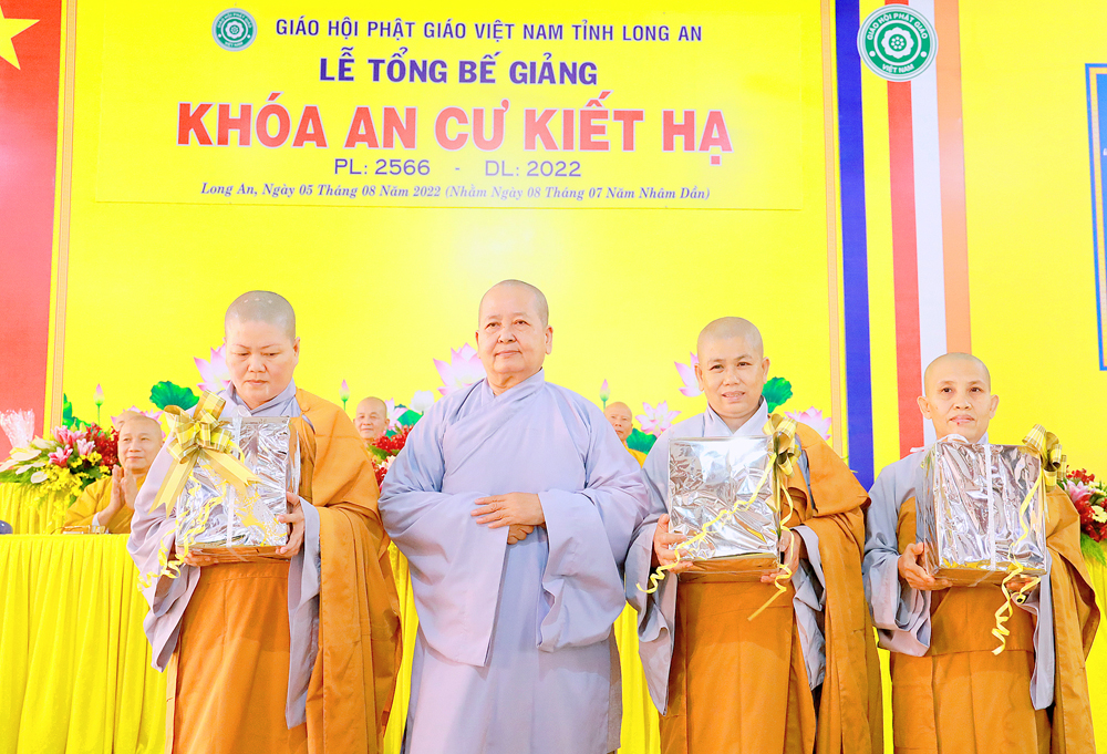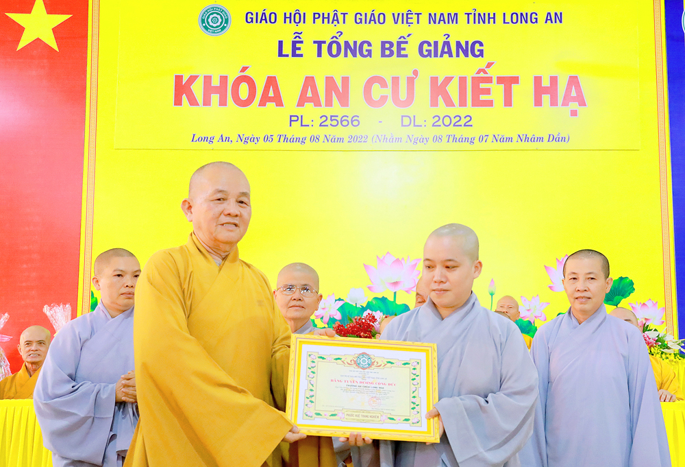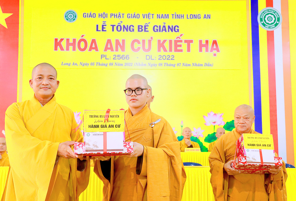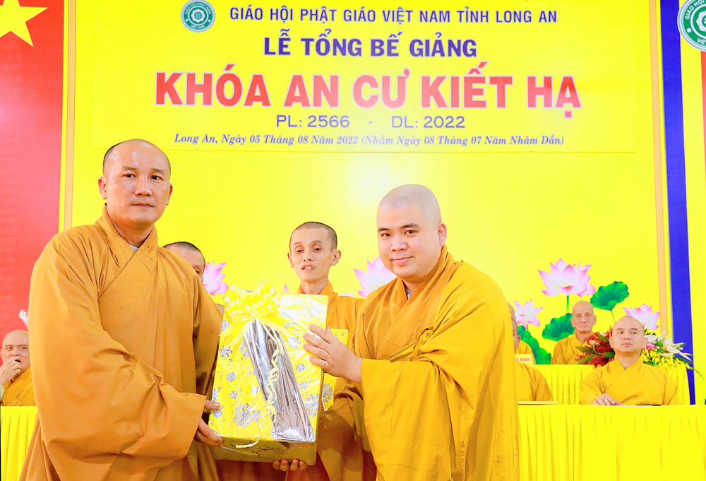 Sau ba tháng tu học, trưởng dưỡng đạo tâm, vun bồi đạo nghiệp, Sáng ngày (nhằm ngày 08/7/Nhâm Dần), Ban Trị sự GHPGVN tỉnh Long An tổ chức Lễ Tổng Bế Giảng Khóa An Cư Kiết Hạ PL. 2566 DL. 2022 tại Văn phòng BTS GHPGVN huyện Thủ Thừa – Chùa Kim Cang, huyện Thủ Thừa, tỉnh Long An.