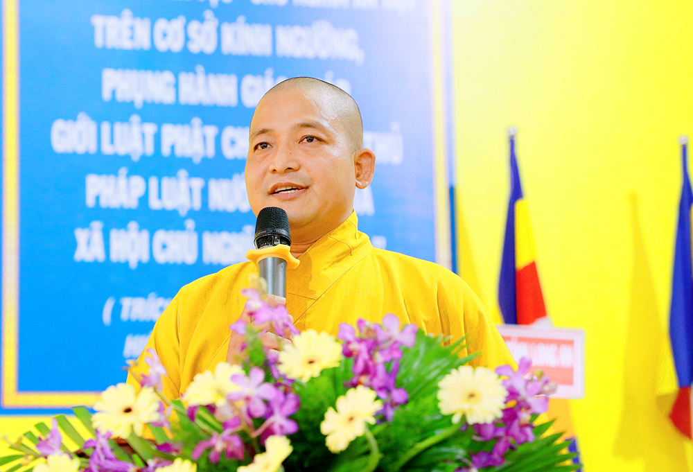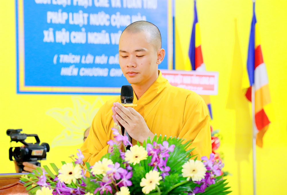 ĐĐ. Thích Lệ Ngôn đại diện cho toàn thể hội chúng đồng dâng lời Khánh tuế lên chư Tôn đức Chứng minh.