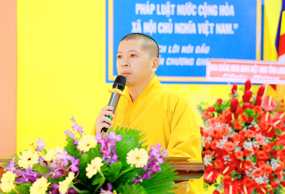 HT. Thích Thiện Huệ đã thay mặt cho chư Tôn đức Ban chứng minh có lời tán thán đến chư Tôn đức lãnh đạo BTS tỉnh Long An và toàn thể chư Tôn đức, các hành giả an cư tại 12 trú xứ. HT bày tỏ niềm hoan hỷ với những thành tựu đạt được trong khoá an cư kiết hạ. Cuối lời, HT gửi lời chúc sức khoẻ đến toan thể hội chúng.