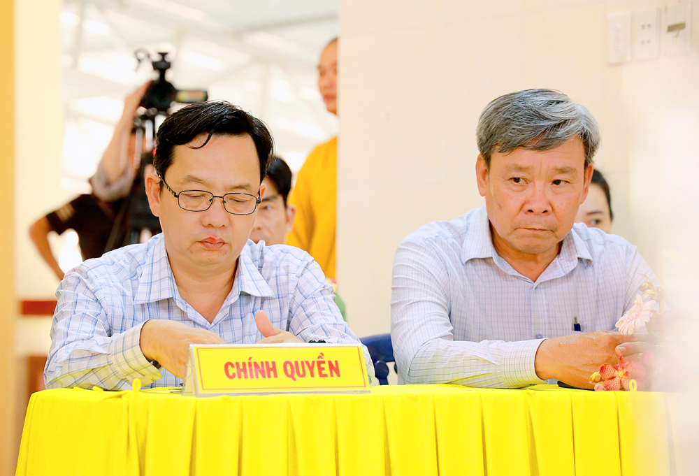 Về phía các cấp lãnh đạo chính quyền có: ông Công Hoàng Bạch – Phó ban Dân vận Tỉnh ủy Long An; ông Trịnh Quốc Bình – Phó Trưởng phòng An ninh Nội địa tỉnh Long An; ông Nguyễn Thanh Sơn – Phó ban Dân tộc Tôn giáo Phong trào UBMTTQVN tỉnh Long An; bà Trần Thị Tím – Ủy viên Thường vụ, Trưởng ban Dân vận, Chủ tịch UBMTTQ huyện Thủ Thừa; cùng các vị đại diện chính quyền tỉnh Long An, huyện Thủ Thừa và xã Bình Thạnh sở tại.