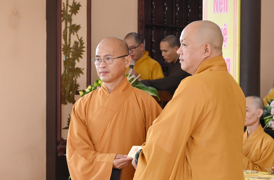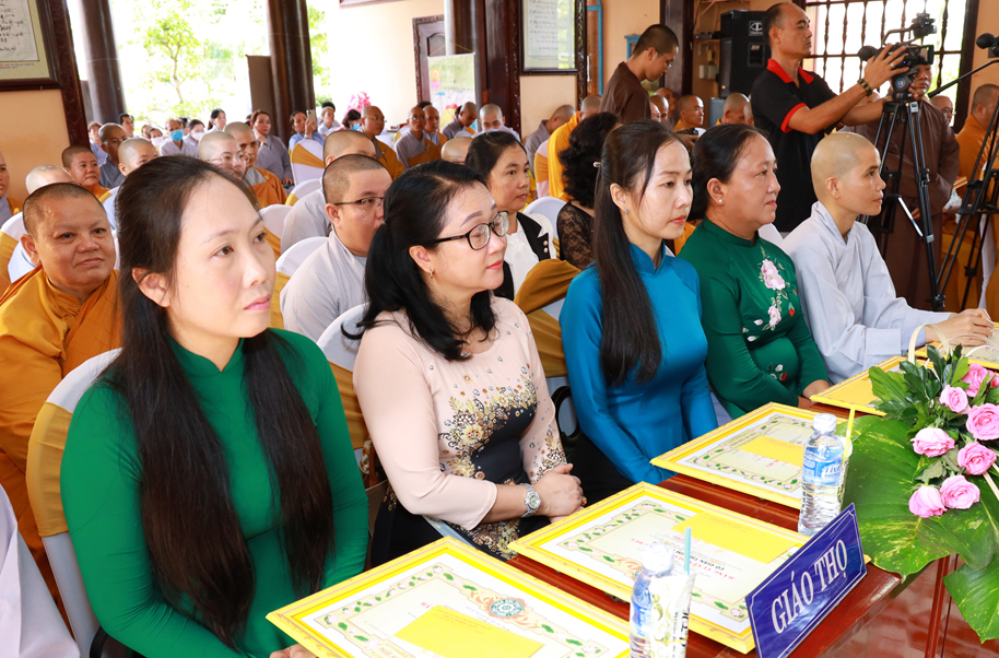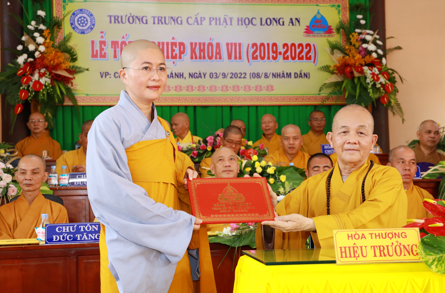 Để ghi nhân tinh thần học tập, Ban Giám hiệu Trường Long An trao tặng Giấy khen và những phần thưởng cho các Tăng Ni sinh có đạo hạnh và thành tích học tập xuất sắc trong khóa học.