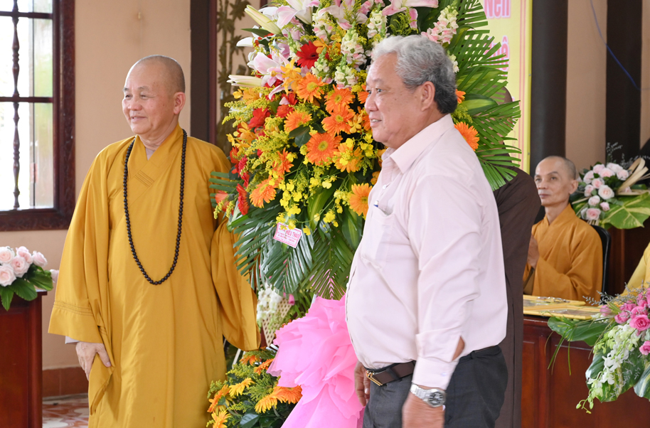 Buổi lễ được đón nhận lời phát biểu chúc mừng của Ông Nguyễn Văn Mưng – Trưởng Ban Tôn giáo Sở Nội vụ tỉnh Long An, trong lời phát biểu ông đã lần nữa đề cao giá trị con đường học vấn qua việc xây dựng xã hội, phát triển đất nước, góp phần vào sự phồn hoa của đất nước, bồi dưỡng người tài xây dựng đất nước, đối với Phật giáo học vấn có giá trị đào tạo Tăng tài, Bồi dưỡng Tăng, Ni, đáp ứng nhu cầu tu tập, đào tạo từ trình độ Sơ cấp đến Tiến sĩ Phật học, nhằm góp phần vào sự phát triển của Phật giáo, bên cạnh đó ông gửi lời chúc mừng đến Tăng, Ni sinh tốt nghiệp, mong muốn sẽ vững niềm tin vượt qua mọi khó khăn thử thách để thành tựu hơn nữa trên con đường học vấn, mong muốn BGH nhà trường sẽ tiếp tục phát triển con đường đào tạo Tăng tài, hưởng ứng phát triển tốt về phong trào yêu nước, phục vụ tốt theo hiến chương giáo hội vào lý tưởng phụng sự đạo pháp và dân tộc.