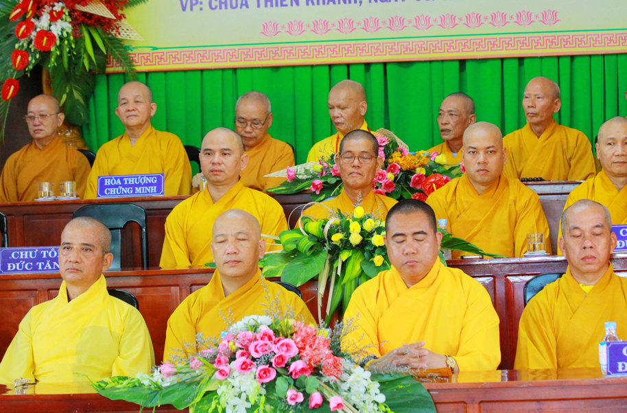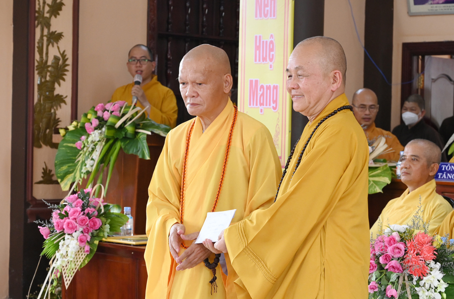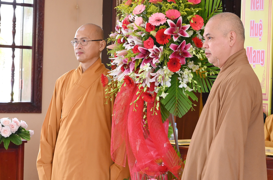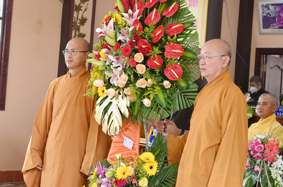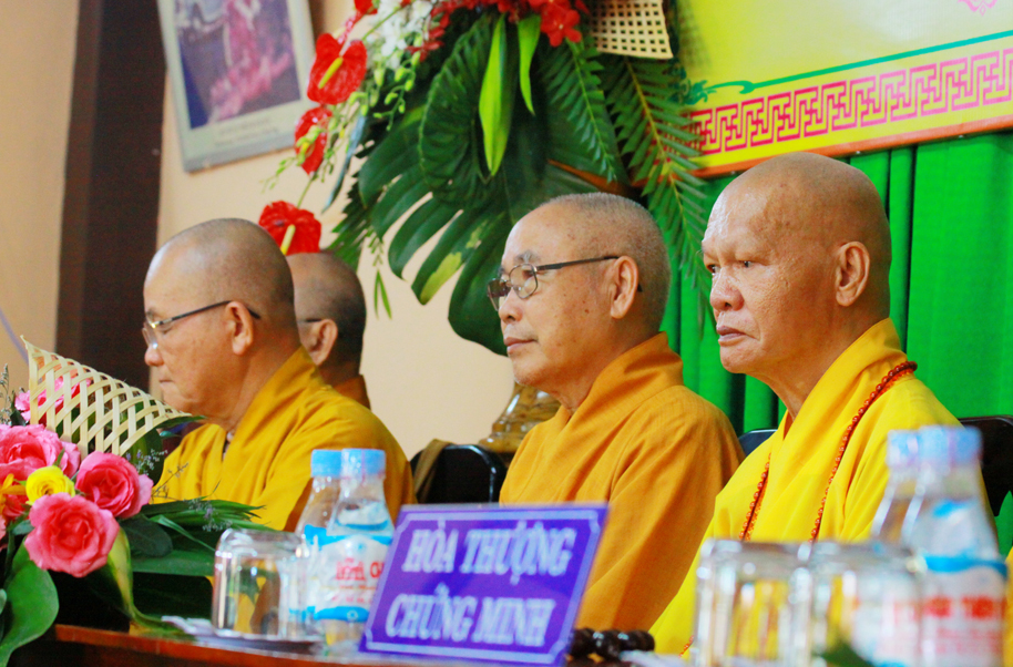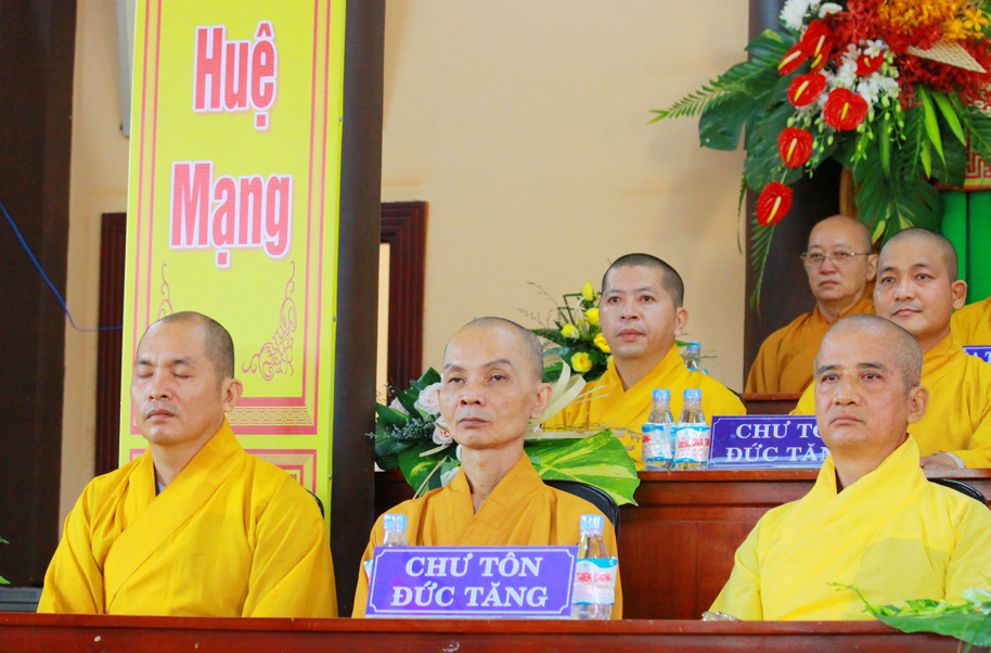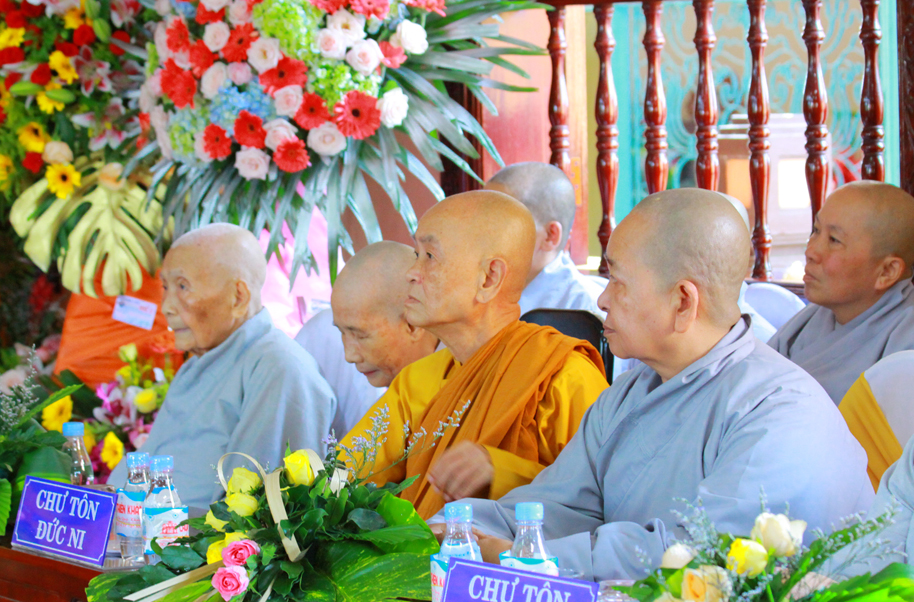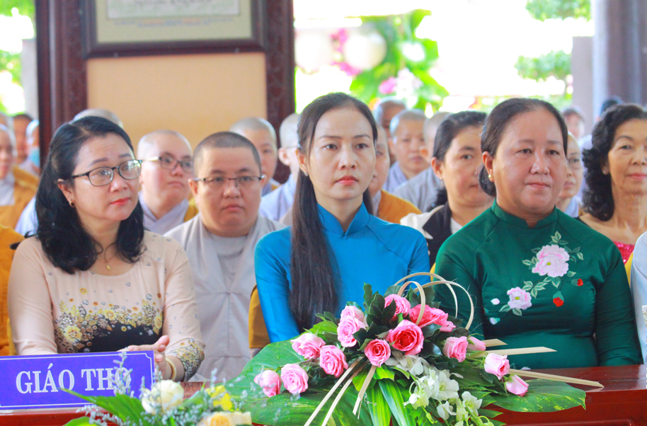 Quang lâm về chứng minh và tham dự buổi lễ có sự hiện diện của: Hòa thượng Thích Thiện Huê, Hòa thượng Thích Huệ Hồng – đồng Chứng minh BTS GHPGVN tỉnh Long An; Hòa thượng Thích Minh Thiện – UV HĐTS, Phó Trưởng ban Hoằng pháp TW, Trưởng BTS GHPGVN tỉnh Long An, Hiệu trưởng Trường TCPH Long An; Hòa thượng Thích Phước Toàn – UV Ban Văn hóa TW; Hòa thượng Thích Viên Giác – Giáo thọ Trường TCPH Long An; Hòa thượng Thích Tắc Quảng – Chứng minh BTS GHPGVN huyện Thủ Thừa; Đại đức Thích Quảng Lâm – UV HĐTS, Phó Giám đốc Trung tâm Biên Phiên Dịch tư liệu Phật giáo Quốc tế; Chư tôn đức Phó BTS GHPGVN tỉnh Long An: Thượng tọa Thích Minh Thọ; Thượng tọa Thích Lệ Trí, Thượng tọa Thích Đức Hoàng, Đại đức Thích Lệ Duyên, Đại đức Thích Lệ Ngôn; Ni trưởng Thích nữ Như Ngọc – Chứng minh Phân ban Ni giới TW; Ni trưởng Thích nữ Tuệ Đăng – Phó BTS kiêm Trưởng Phân ban Ni giới GHPGVN tỉnh Long An; Ni trưởng Thích nữ Gương Liên – Phó BTS GHPGVN tỉnh Long An; Chư tôn đức Thường trực BTS GHPGVN tỉnh Long An; Chư tôn đức Ban Giám hiệu, Ban Giáo thọ, Ban Bảo trợ Trường TCPH Long An; Chư tôn đức Thường trực BTS GHPGVN các huyện, thị xã, thành phố; Chư tôn đức là Bổn sư, Y chỉ sư của Tăng ni sinh; Chư tôn đức Tăng ni các tự viện đồng về tham dự và chúc mừng cho buổi lễ. Sự hiện diện của 63 Tăng ni sinh Khóa VII (2019-2022) Trường TCPH Long An.
