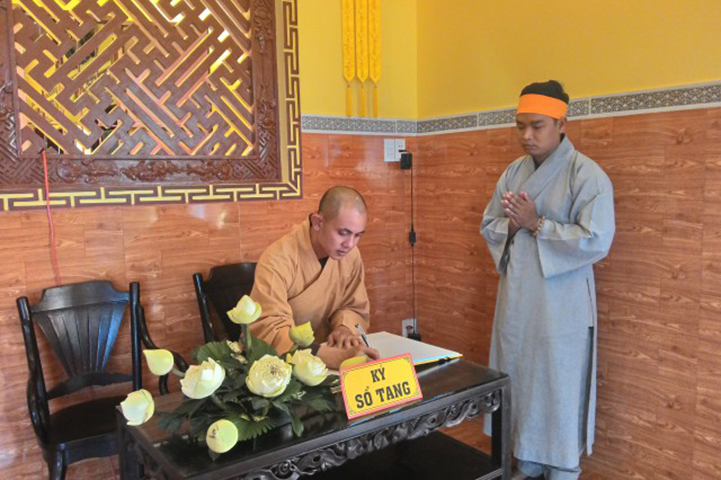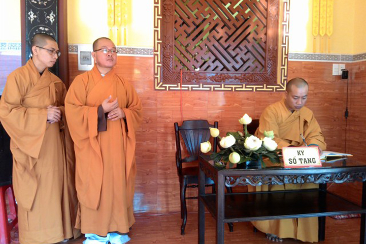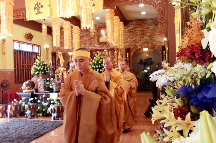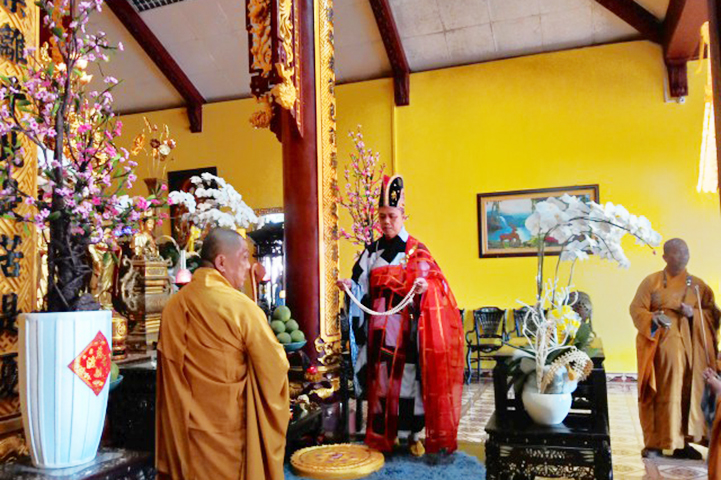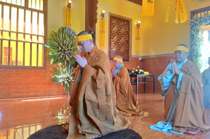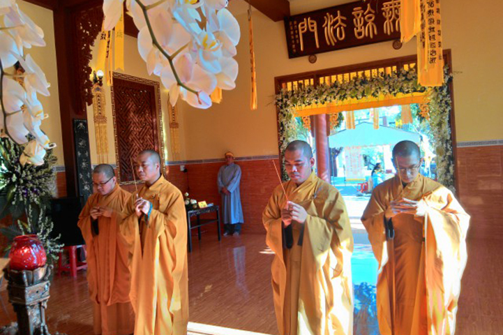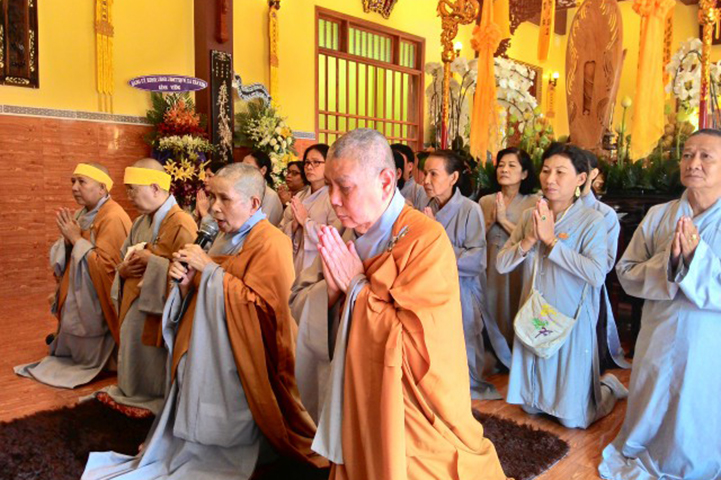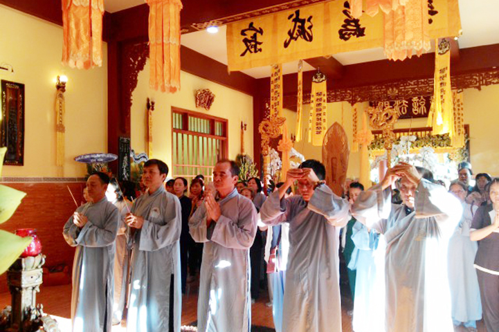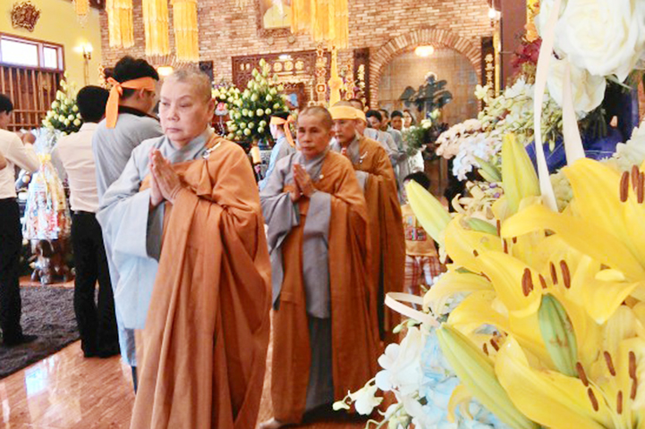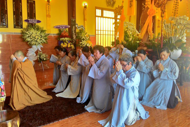 Vào lúc 16g30 chiều nay, tại đạo tràng Pháp Môn, Môn nhân pháp quyến đã trang nghiêm đàn tràng, bạch thỉnh chư Tôn đức Ban Nghi lễ Phật giáo tỉnh Long An quang lâm pháp tràng tiến hành nghi thức phụng thỉnh Linh mô Ni trưởng thính tụng Bồ-tát giới. Nghi thức phụng thỉnh Linh mô do Hòa thượng Thích Thiện Tài- Trưởng ban Nghi lễ GHPG VN tỉnh Long An chủ trì; Nghi thức tụng Bồ-tát giới do Hòa thượng Thích Tắc Phi- Phó trưởng Tông Thiên Thai Giáo Quán thực hiện. Môn đồ hiếu quyến gồm có:
