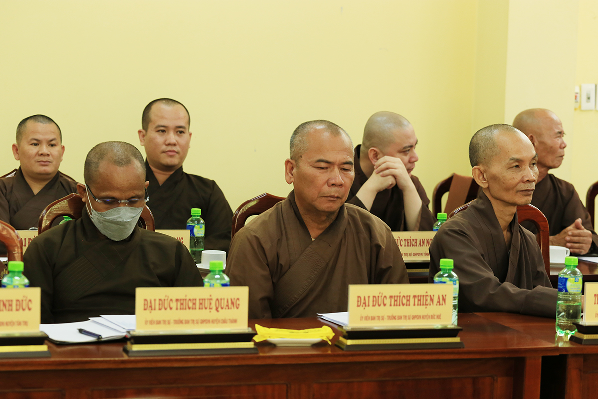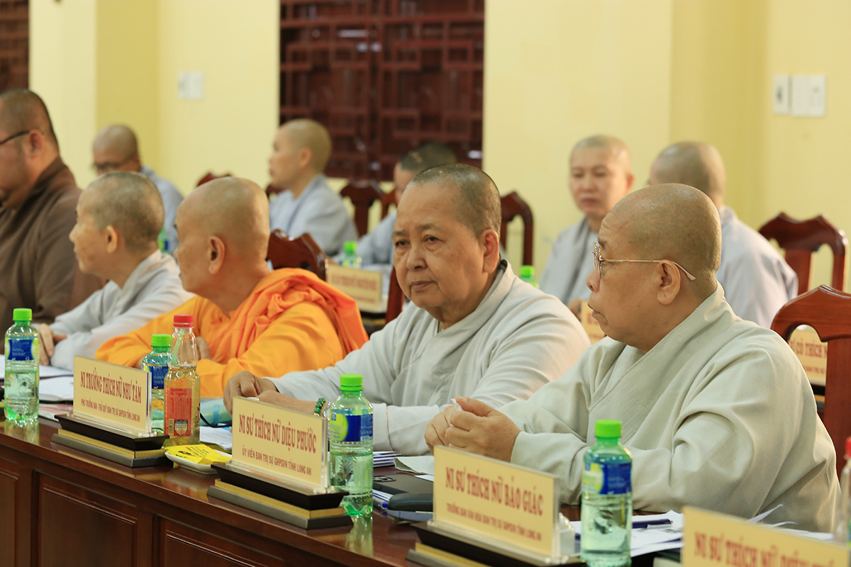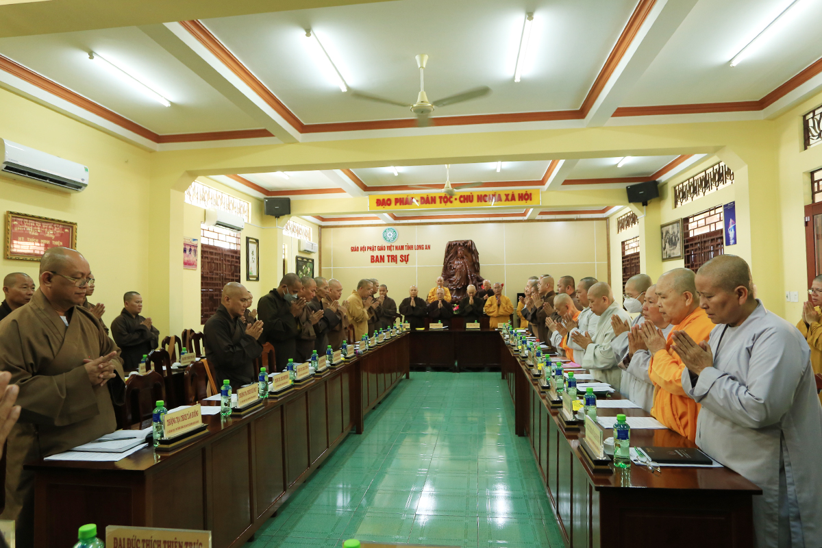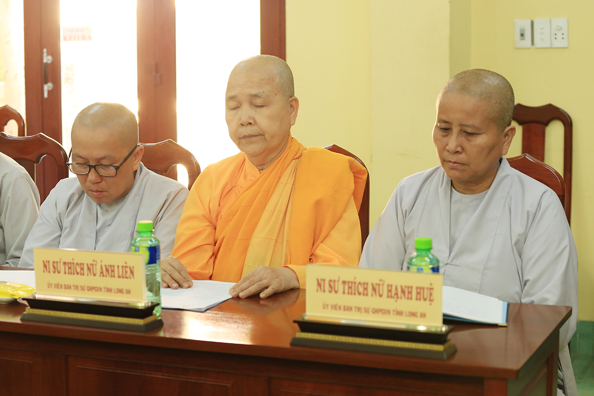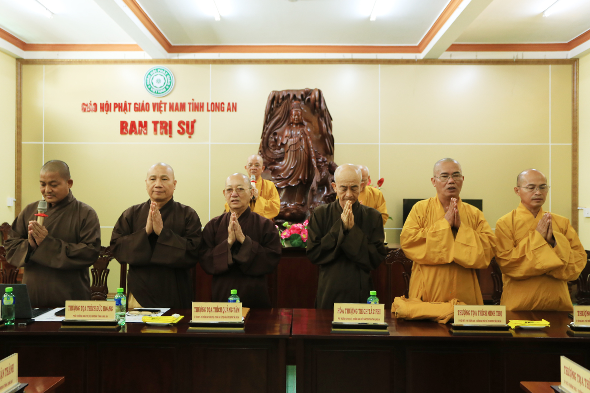 Phiên họp được cung nghinh sự quang lâm của Hòa thượng Thích Huệ Hồng – Chứng Minh BTS GHPGVN tỉnh Long An, Hòa thượng Thích Minh Thiện – UV HĐTS – Phó Trường Ban Hoằng pháp TW – Trưởng BTS GHPGVN tỉnh Long An, Thượng tọa Thích Quảng Tâm – UV HĐTS – Phó Trưởng Ban Thường trực BTS GHPGVN tỉnh Long An, cùng Chư Tôn đức đồng Phó Trưởng BTS GHPGVN tỉnh Long An, Chư tôn đức Thành viên Ban Thường trực, Chư tôn đức ủy viên BTS GHPGVN tỉnh Long An, Chư tôn đức Trưởng Ban Trị sự các huyện, thị, thành phố trực thuộc tỉnh Long An, cùng chư tôn đức Tăng Ni các Ban trực thuộc các BTS trực thuộc tỉnh đồng thân lâm tham dự.