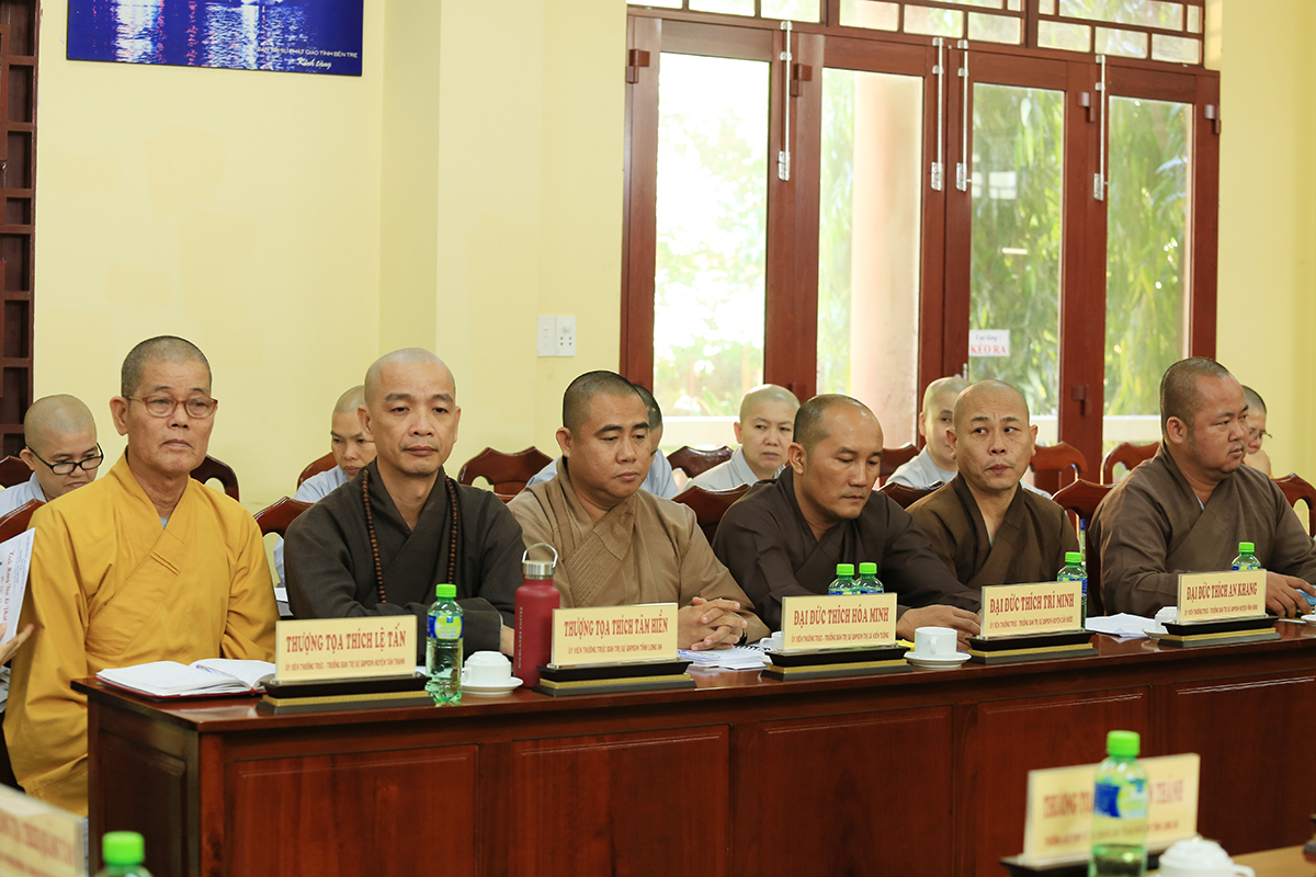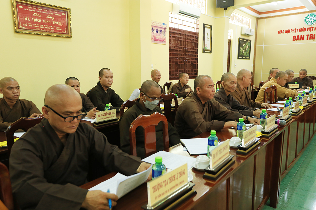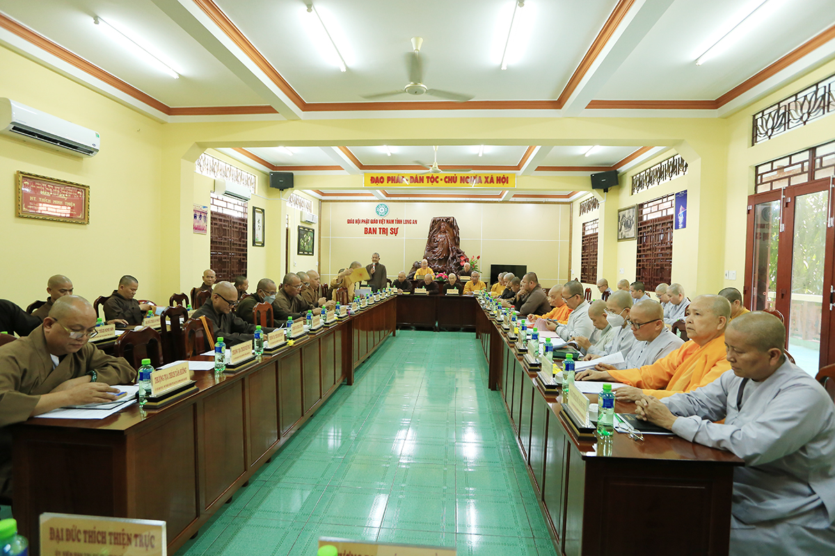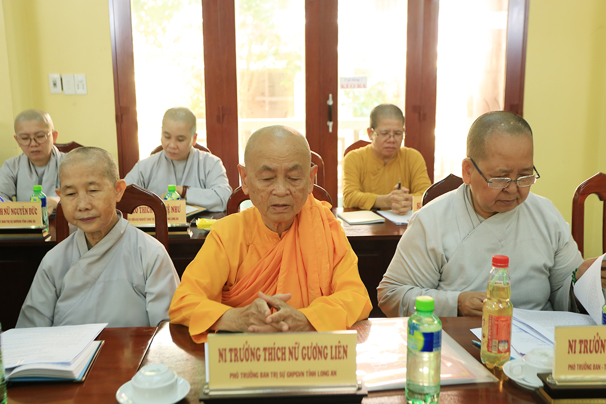 Sau khi thông qua chương trình phiên họp, Chư tôn đức Trưởng các Phân ban Hoằng pháp, Ban Văn Hóa Phật giáo tỉnh Long An đã báo các công tác Phật sự chuyên môn tại các huyện thị thuộc tỉnh, Ban Văn hóa đã thống nhất và báo cáo công tác tổ chức Đại gới đàn và pháp phục để phục vụ Đại giới đàn và Đại lễ Phật đản trong các khâu tôn thiết, trang trí dần hoàn thành, chuẩn bị tốt cho mọi thành tựu sắp đến. Văn phòng thư ký đã báo cáo về số lượng hồ sơ đã tiếp nhận, đồng thời hướng dẫn về quá trình chuẩn bị hồ sơ, bồi dưỡng về kiến thức hành chánh công tác giáo hội sắp đến để chư tôn đức được nắm bắt và thụ lý hồ sơ được tốt hơn