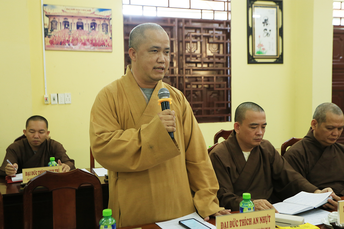 Phiên họp được đón nhận nhiều ý kiến đóng góp từ Chư tôn đức tham dự, Thượng tọa Thích Quảng Tâm – Uỷ viên HĐTS – Phó Trưởng Ban Thường trực BTS GHPGVN tỉnh Long An đã tóm tắt và thống nhất toàn bộ ý kiến, kính trình Hòa thượng Trưởng Ban trị sự cho ý kiến chỉ đạo.