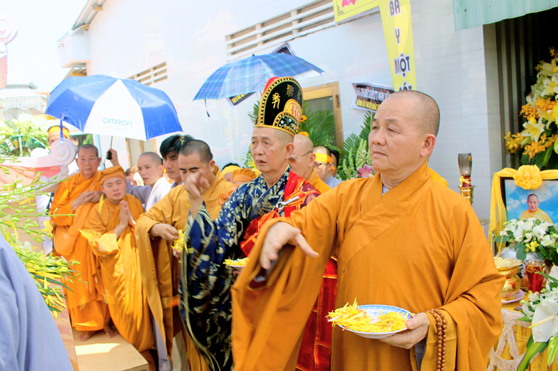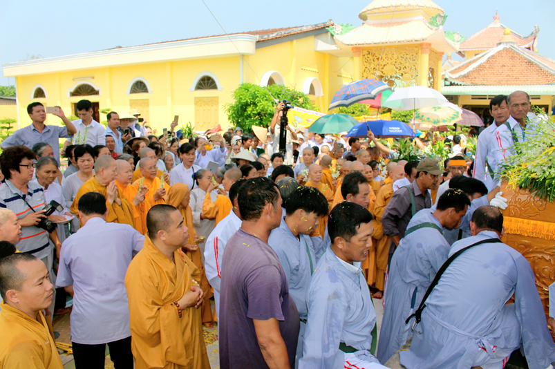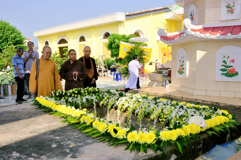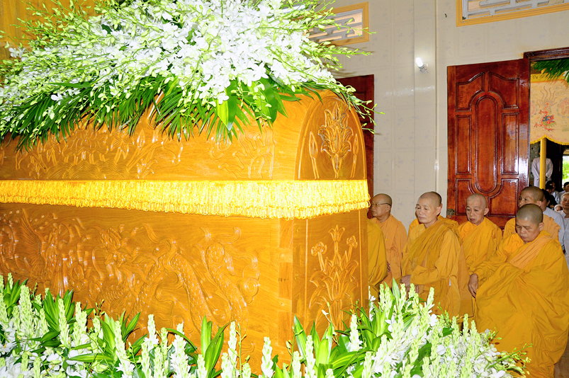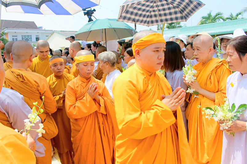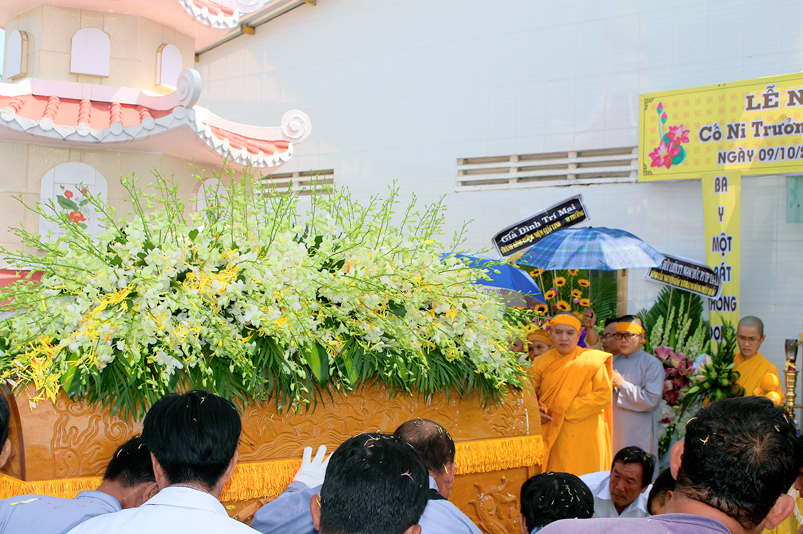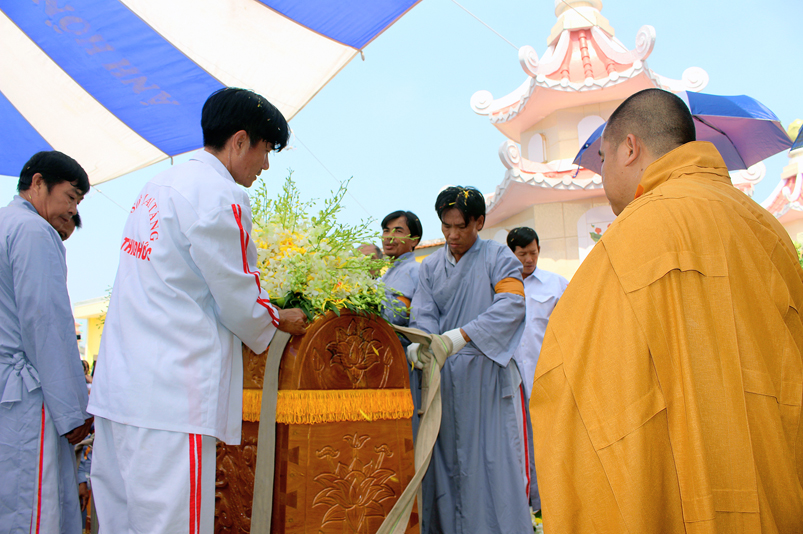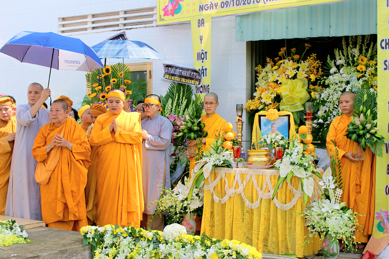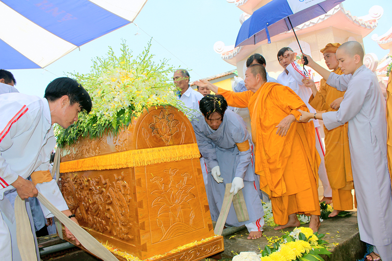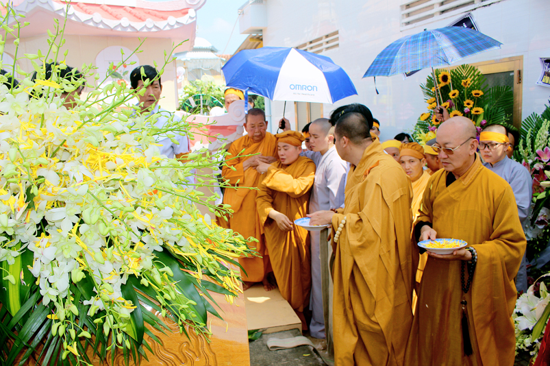 Đại đức Thích An Nhựt- Trưởng ban Hướng dẫn Phật tử tỉnh Long An, Phó Ban Trị sự GHPGVN huyện Thủ Thừa, Phó ban Tổ chức lễ tang có lời cảm tạ. Sau đó, nghi thức niệm hương, tuyên pháp ngữ, phất trần kim quan, thỉnh kim quan nhập bảo tháp trong khuôn viên chùa tịnh xá Ngọc Thặng đã diễn ra trong niềm kính tiếc và tiếng niệm Phật trầm hùng.