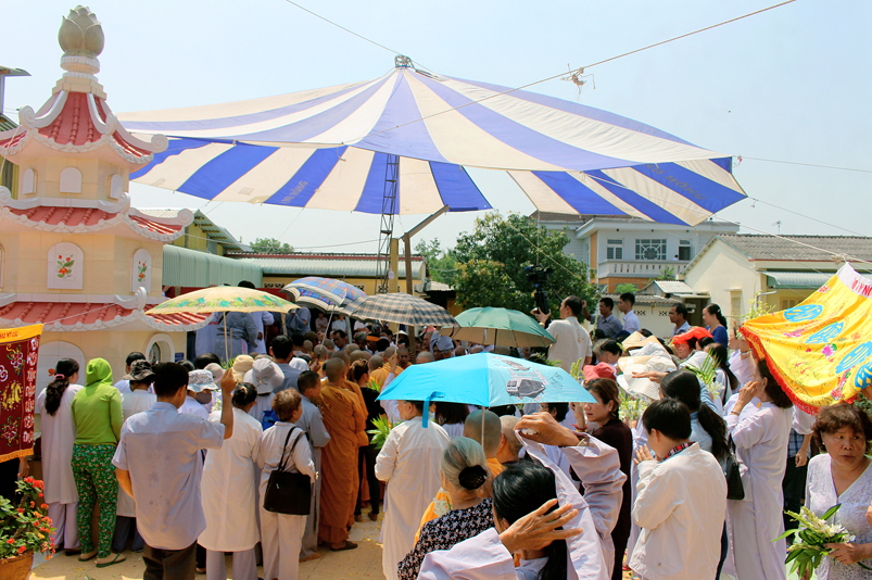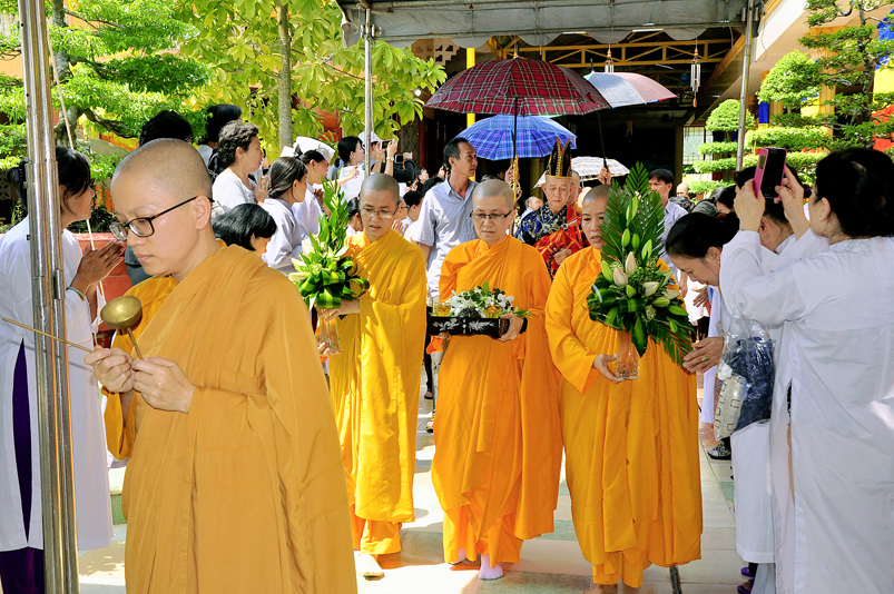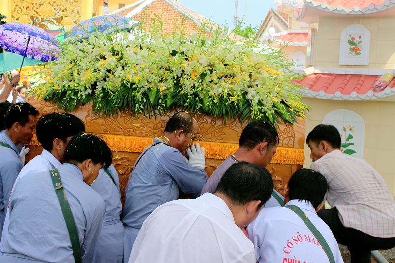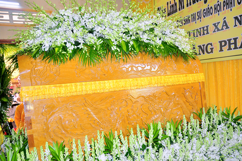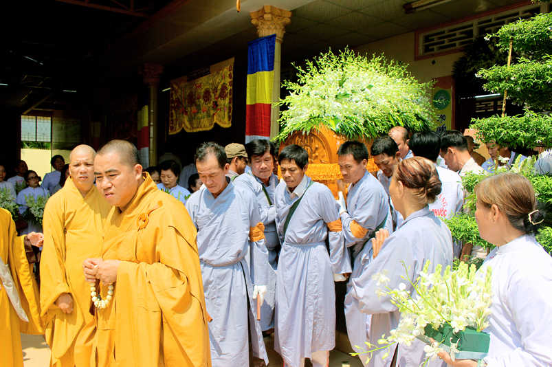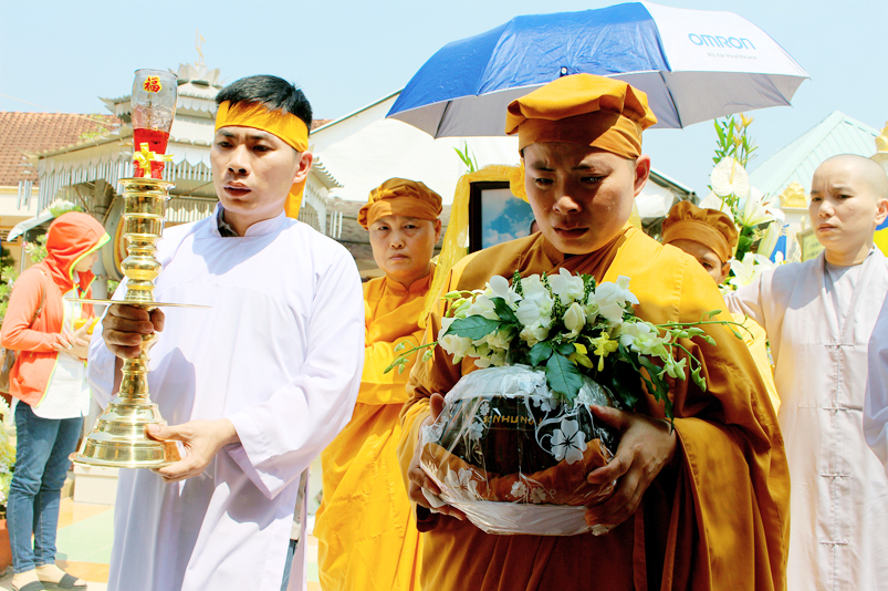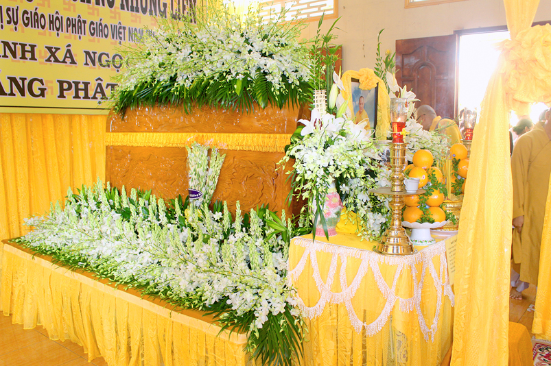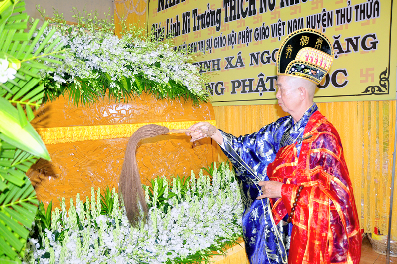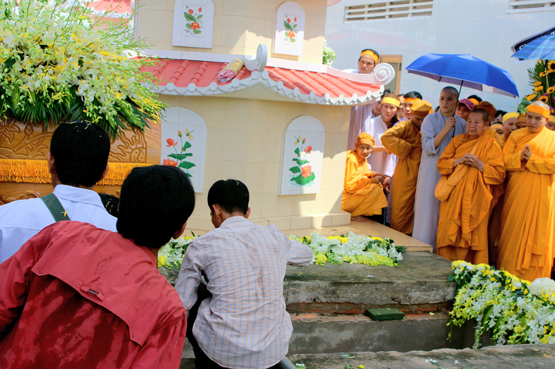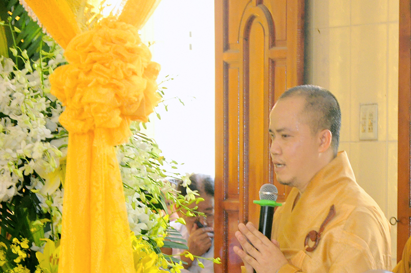 Đại đức Thích An Nhựt- Trưởng ban Hướng dẫn Phật tử tỉnh Long An, Phó Ban Trị sự GHPGVN huyện Thủ Thừa, Phó ban Tổ chức lễ tang có lời cảm tạ. Sau đó, nghi thức niệm hương, tuyên pháp ngữ, phất trần kim quan, thỉnh kim quan nhập bảo tháp trong khuôn viên chùa tịnh xá Ngọc Thặng đã diễn ra trong niềm kính tiếc và tiếng niệm Phật trầm hùng.