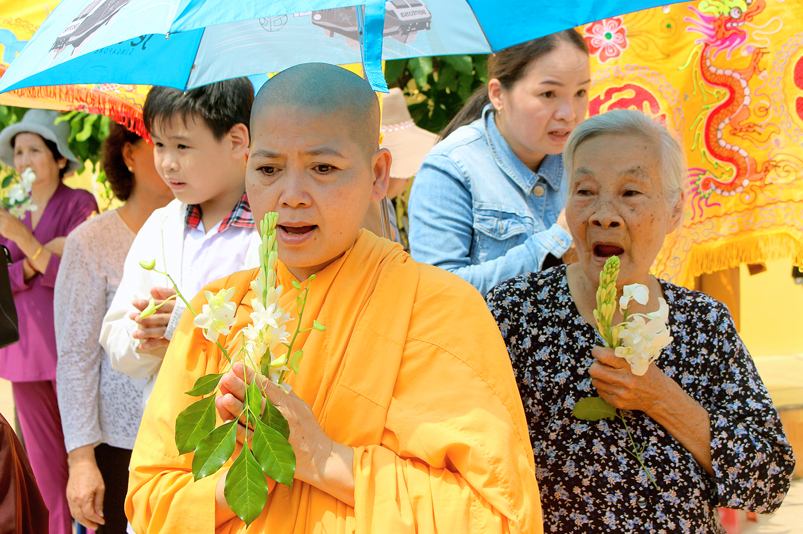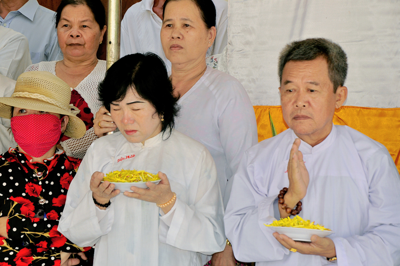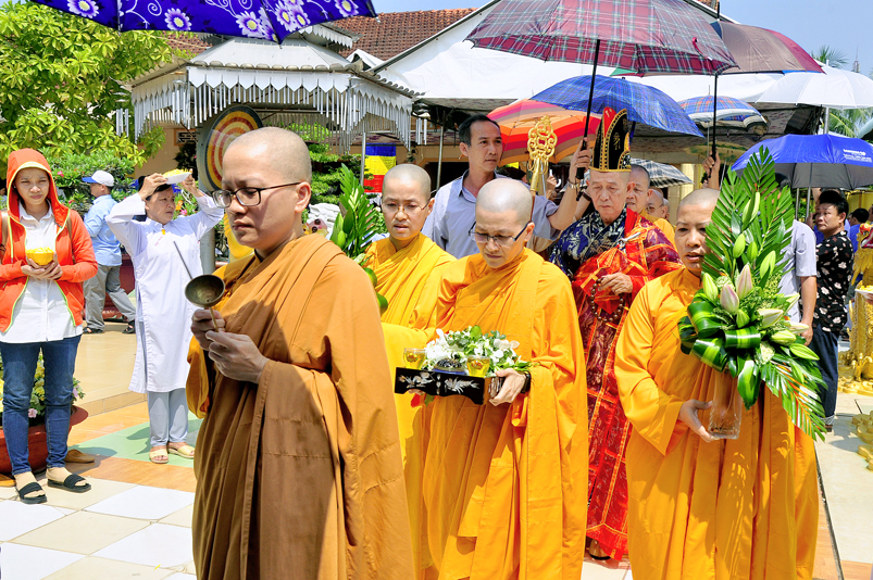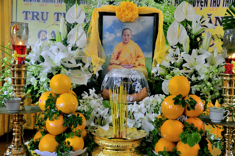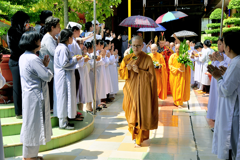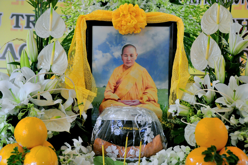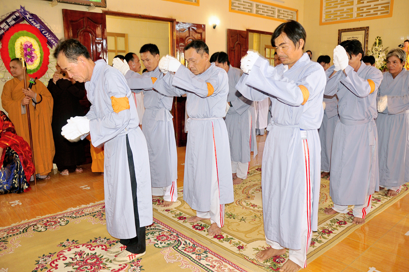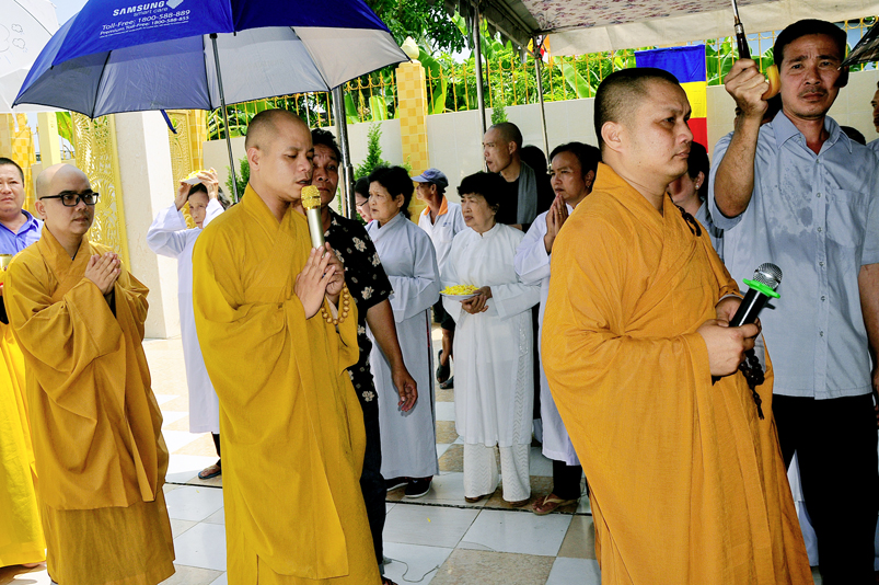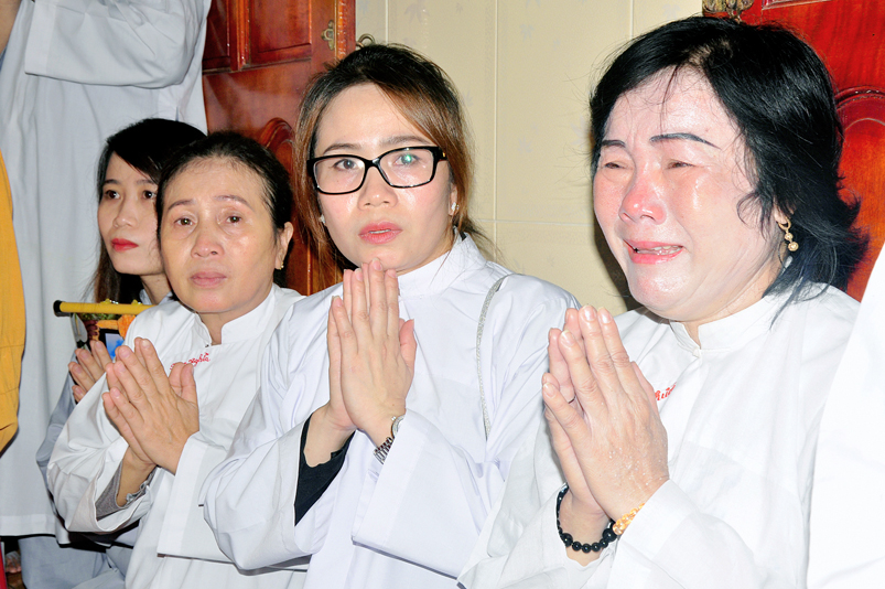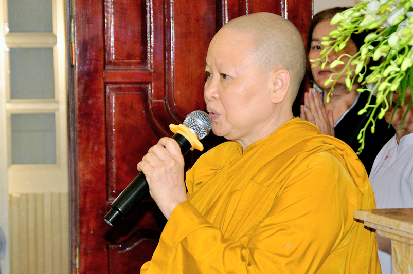 Đại đức Thích An Nhựt- Trưởng ban Hướng dẫn Phật tử tỉnh Long An, Phó Ban Trị sự GHPGVN huyện Thủ Thừa, Phó ban Tổ chức lễ tang có lời cảm tạ. Sau đó, nghi thức niệm hương, tuyên pháp ngữ, phất trần kim quan, thỉnh kim quan nhập bảo tháp trong khuôn viên chùa tịnh xá Ngọc Thặng đã diễn ra trong niềm kính tiếc và tiếng niệm Phật trầm hùng.