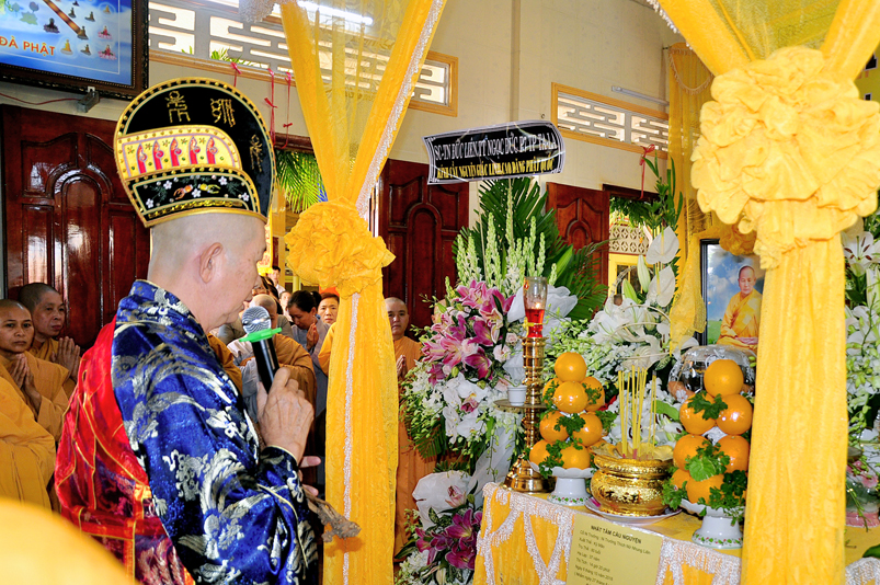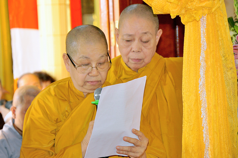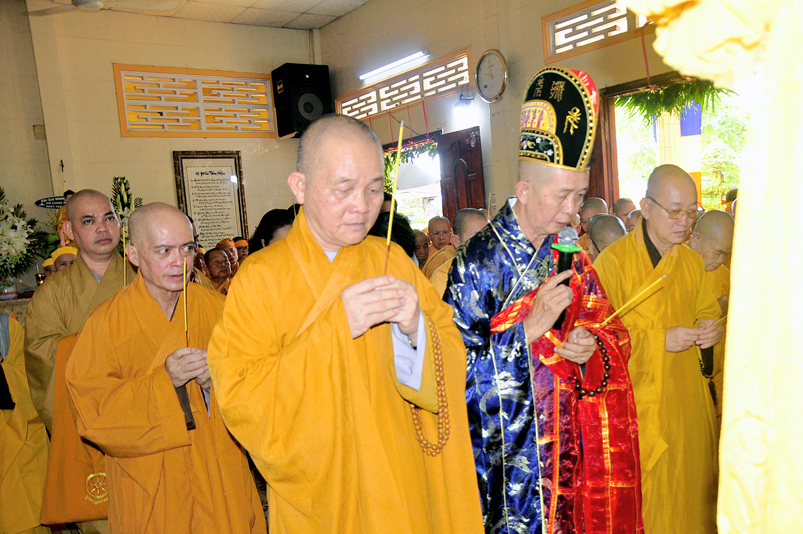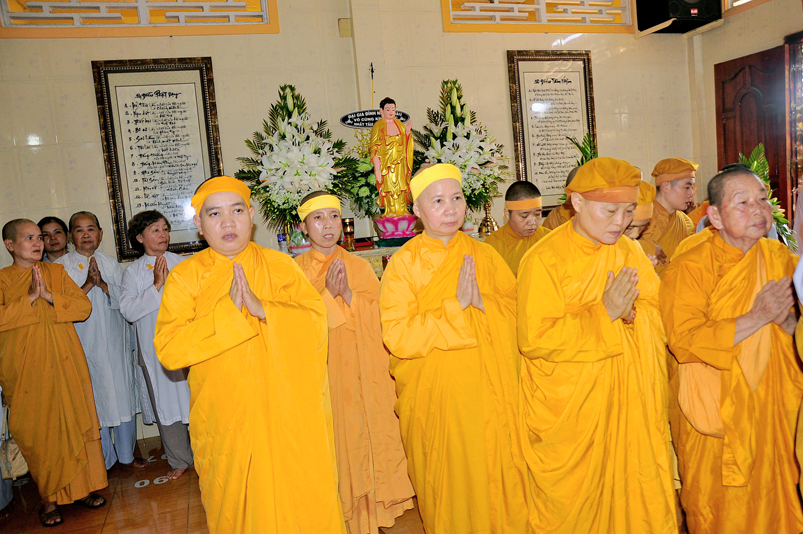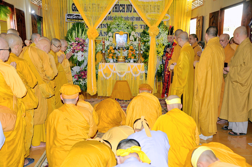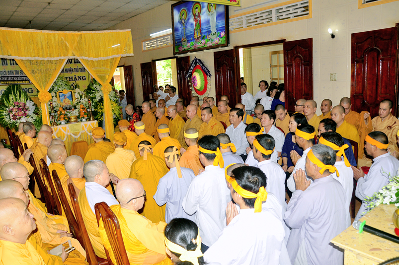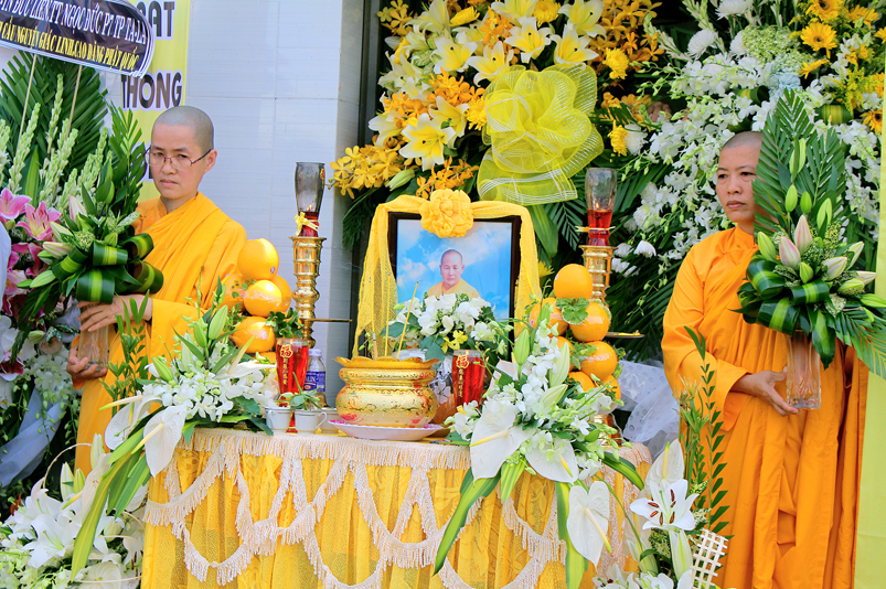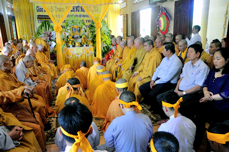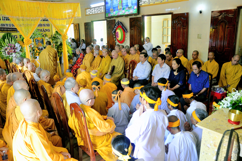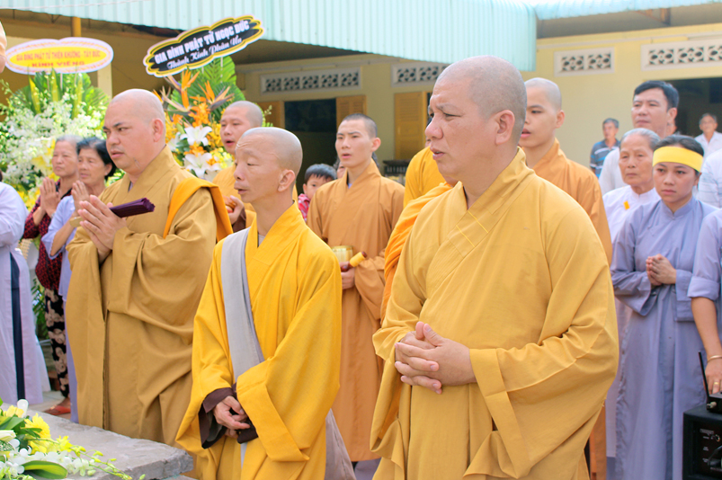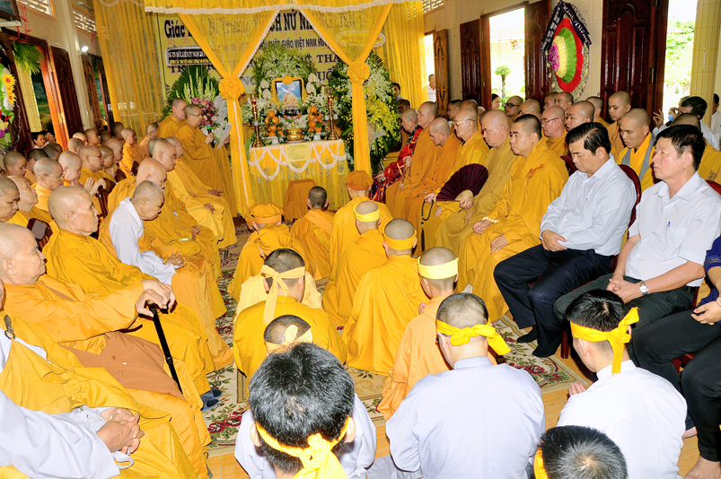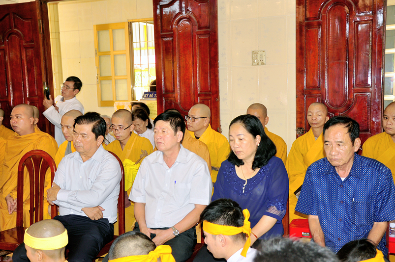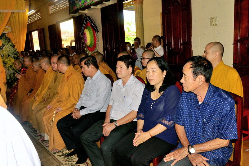 Quang lâm chứng minh lễ truy niệm và phụng tống kim quan có HT. Thích Minh Thiện- Uỷ viên Hội đồng Trị sự trung ương, Phó Ban Hoằng Pháp trung ương, Trưởng Ban trị sự GHPGVN tỉnh Long An, Hiệu trưởng trường Sơ – Trung cấp Phật học tỉnh Long An; HT. Thích Thiện Tài- Phó Trưởng Ban trị sự kiêm trưởng ban Nghi lễ Ban Trị sự GHPGVN tỉnh Long An; TT. Thích Quảng Tâm- Uỷ viên Hội đồng Trị sự trung ương, Phó Thường trực Ban trị sự kiêm trưởng Ban Từ thiện xã hội GHPGVN tỉnh Long An; TT. Thích Tắc Quảng- Chứng minh Ban trị sự GHPGVN huyện Thủ Thừa; ĐĐ. Thích Hoá Minh Trưởng ban Trị sự GHPGVN huyện Thủ Thừa; ĐĐ. Thích An Trung- Trưởng Ban trị sự GHPGVN huyện Bến Lức; ĐĐ. Thích Giác Phước- Trụ trì tịnh xá Ngọc Lâm Tp. HCM; Ni trưởng Thích nữ Phụng Liên- Giáo phẩm hệ Phái Khất sĩ Việt Nam, trú xứ tổ đình Ngọc Phương; Ni trưởng Thích Nữ Liên Liên- Giáo phẩm hệ Phái Khất sĩ Việt Nam, tổng thư ký hệ phái Khất sĩ Việt Nam; Ni trưởng- Thích Nữ Gương Liên- Phó ban Trị sự GHPGVN tỉnh Long An cùng Chư tôn đức Tăng Ni trong thường trực Ban trị sự tỉnh, huyện, Chư tôn đức trụ trì các tự viện và hơn 1000 tín đồ bà con Phật tử trong và ngoài tỉnh tham dự.