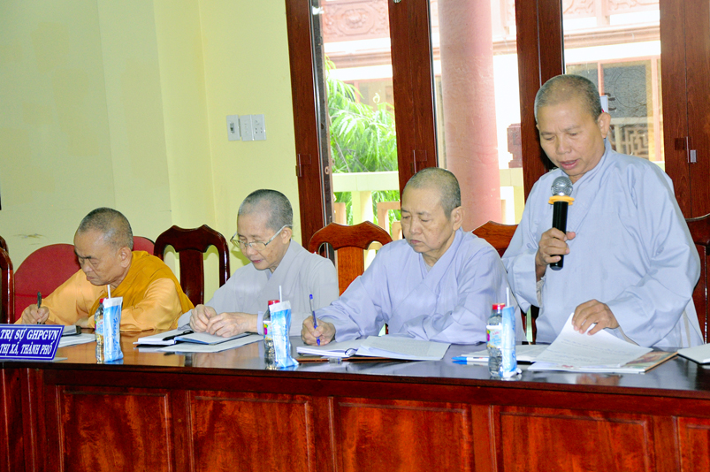 Tiếp theo là phần phổ biến công văn của Ban Thường Trực Ban Trị Sự GHPGVN về Quy chế hoạt động BTS cấp tỉnh, thành phố trực thuộc Trung ương GHPGVN, nhiệm kỳ VIII ( 2017 -2022).