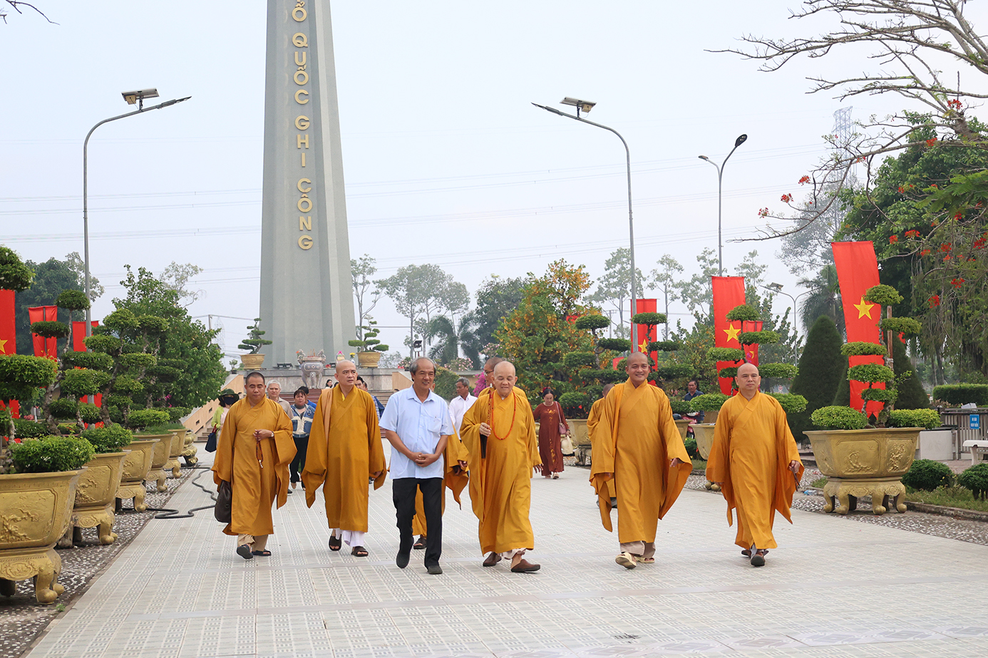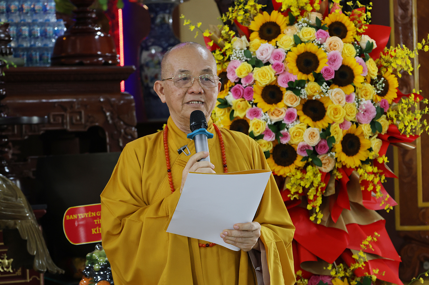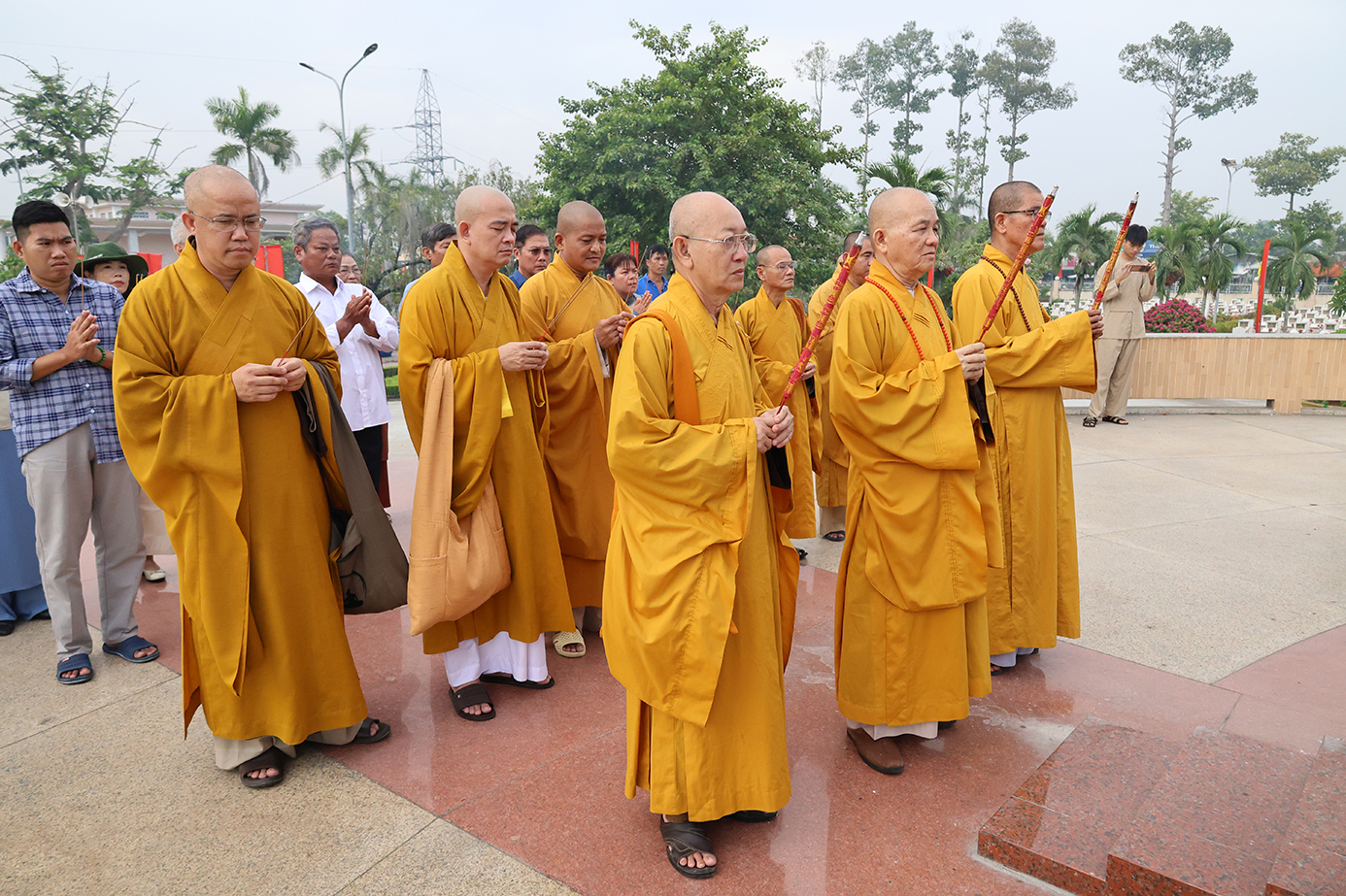 Thay mặt Ban Thường trực BTS GHPGVN tỉnh Long An, Hòa thượng Thích Minh Thiện – UV HĐTS, Phó Trưởng Ban Hoằng Pháp TƯ, Trưởng BTS GHPGVN tỉnh Long An đã tuyên đọc văn tưởng niệm anh linh anh hùng Liệt sĩ trong tỉnh Long An nói riêng và toàn thể chư anh linh anh hùng liệt sĩ đã hy sinh trong cuộc chiến tranh giải phóng dân tộc, thống nhất Tổ Quốc, trong lời văn tưởng niệm Hòa thượng cảm động nhắc lại những lời nói cao quý của Chủ tịch Hồ Chí Minh trong công cuộc đấu tranh giành độc lập, ôn lại truyền thống hào hùng của dân tộc, nêu cao những tấm gương liệt sĩ từng là những bậc Tăng sĩ trong thời chiến đã săn sàng gác lại chí nguyện xuất gia, trao trả tăng bào, mình khoác chiến bào lên đường cứu nước, bên cạnh đó Hòa thượng đã lần nữa khơi lại tinh thần dân tộc trong mỗi con người để cố gắng phát huy mạnh mẽ tinh thần “ Phật giáo đồng hành cùng Dân tộc”, Ngài gửi lời thăm hỏi, tri ân đến các mẹ VNAH, các anh hùng LLVT nhân dân, các gia đình chính sách hiện diện, tri ân chính quyền các cấp, Mạnh Thường quân, Phật tử luôn đồng lòng chung tay phát tâm, hỗ trợ, để Phật giáo tỉnh nhà phát triển ổn định, đoàn kết và tốt đẹp.