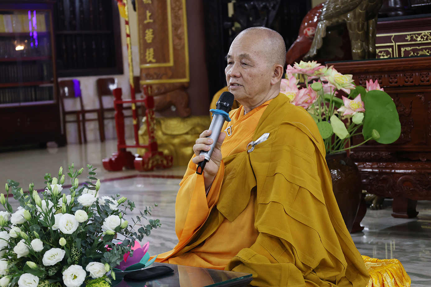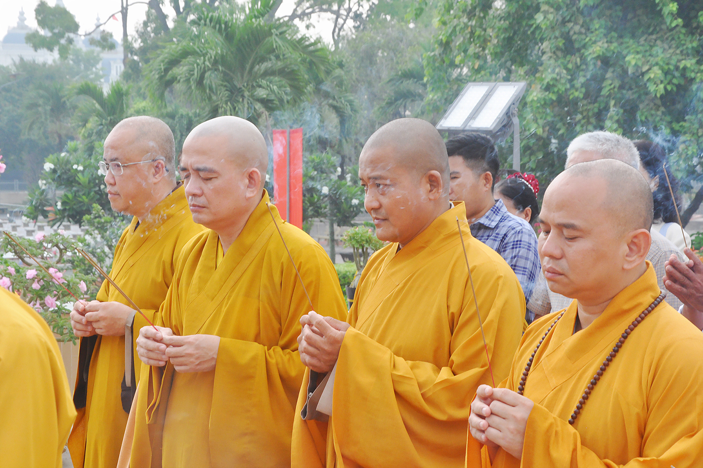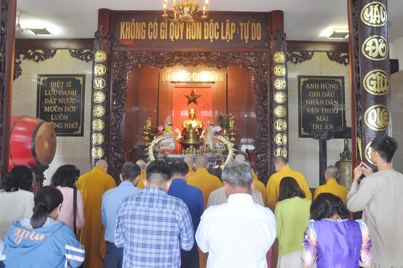 Thay mặt Ban Thường trực BTS GHPGVN tỉnh Long An, Hòa thượng Thích Minh Thiện – UV HĐTS, Phó Trưởng Ban Hoằng Pháp TƯ, Trưởng BTS GHPGVN tỉnh Long An đã tuyên đọc văn tưởng niệm anh linh anh hùng Liệt sĩ trong tỉnh Long An nói riêng và toàn thể chư anh linh anh hùng liệt sĩ đã hy sinh trong cuộc chiến tranh giải phóng dân tộc, thống nhất Tổ Quốc, trong lời văn tưởng niệm Hòa thượng cảm động nhắc lại những lời nói cao quý của Chủ tịch Hồ Chí Minh trong công cuộc đấu tranh giành độc lập, ôn lại truyền thống hào hùng của dân tộc, nêu cao những tấm gương liệt sĩ từng là những bậc Tăng sĩ trong thời chiến đã săn sàng gác lại chí nguyện xuất gia, trao trả tăng bào, mình khoác chiến bào lên đường cứu nước, bên cạnh đó Hòa thượng đã lần nữa khơi lại tinh thần dân tộc trong mỗi con người để cố gắng phát huy mạnh mẽ tinh thần “ Phật giáo đồng hành cùng Dân tộc”, Ngài gửi lời thăm hỏi, tri ân đến các mẹ VNAH, các anh hùng LLVT nhân dân, các gia đình chính sách hiện diện, tri ân chính quyền các cấp, Mạnh Thường quân, Phật tử luôn đồng lòng chung tay phát tâm, hỗ trợ, để Phật giáo tỉnh nhà phát triển ổn định, đoàn kết và tốt đẹp.