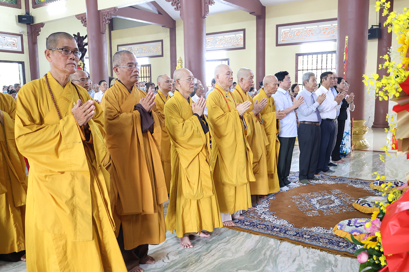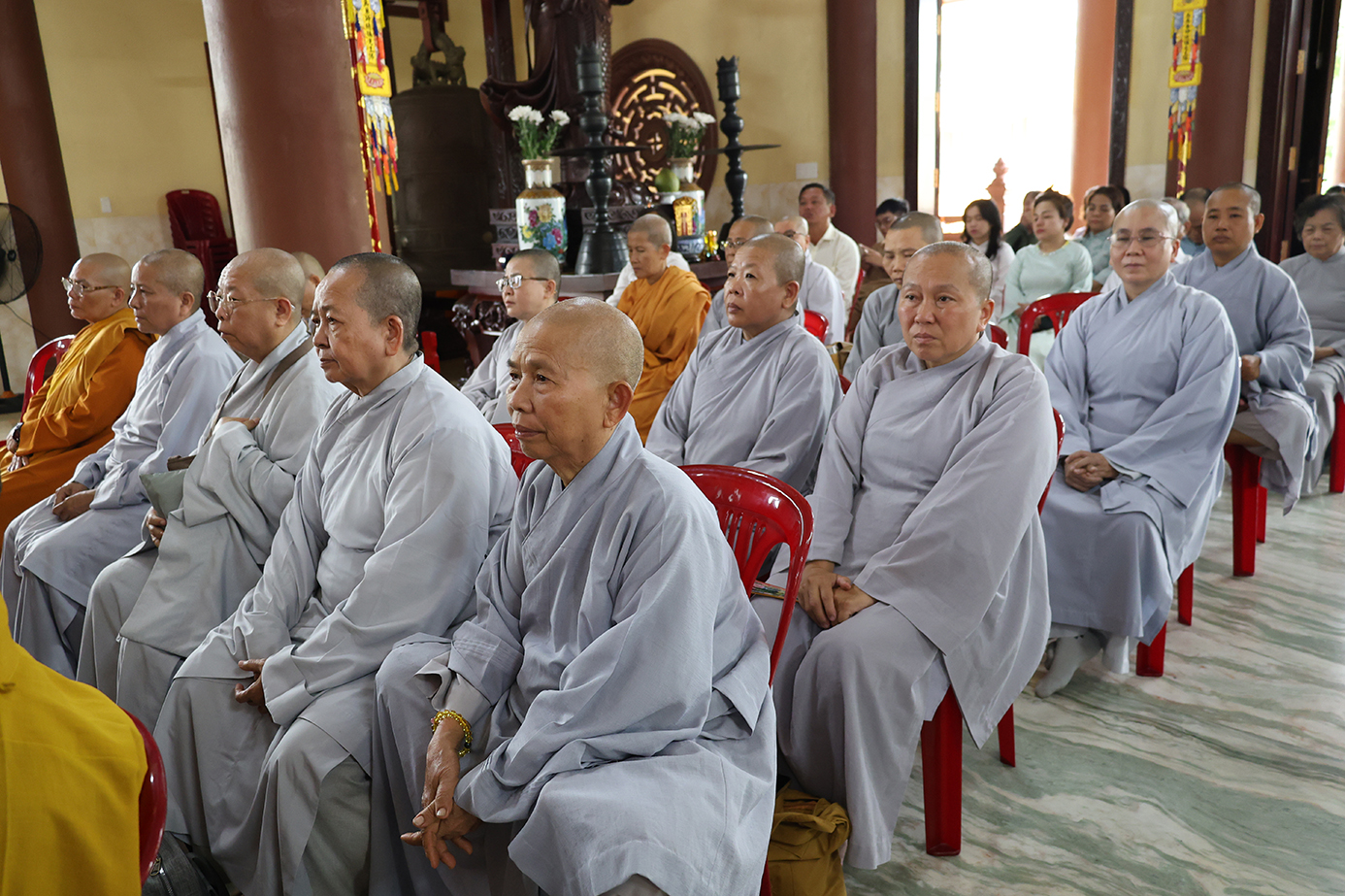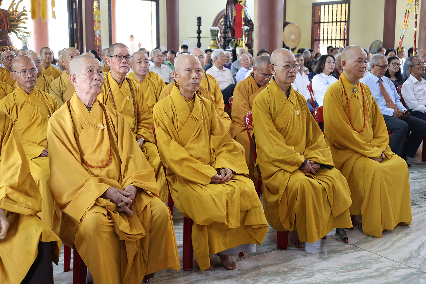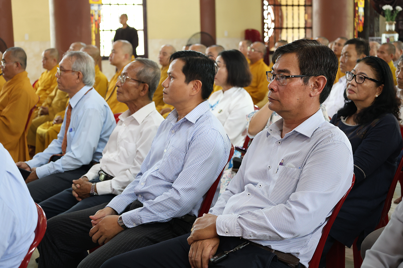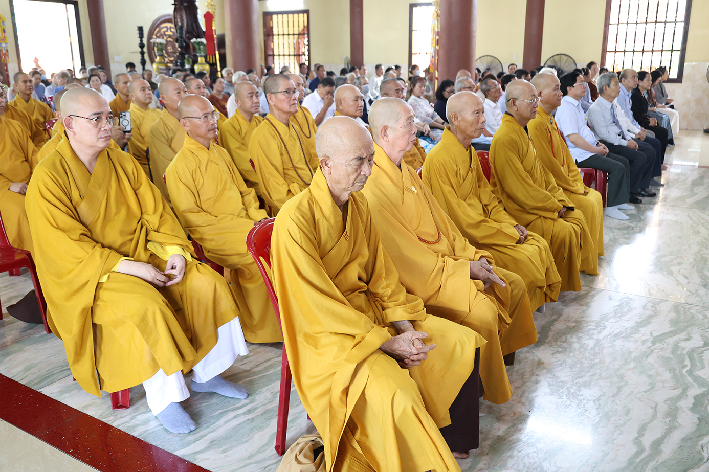 Buổi lễ được cung nghinh Hòa thượng Thích Thiện Tài, Hòa thượng Thích Huệ Hồng – Đồng Chứng Minh BTS GHPGVN tỉnh Long An, Hòa thượng Thích Minh Thiện – UV HĐTS, Phó Trưởng Ban Hoằng pháp TƯ, Trưởng BTS GHPGVN tỉnh Long An, Thượng tọa Thích Quảng Tâm – UV HĐTS, Phó Trưởng Ban Thường trực BTS GHPGVN tỉnh Long An, Chư tôn đức Phó Trưởng BTS, Uỷ viên Thường trực, Thành viên BTS GHPGVN tỉnh, Chư Tôn đức đại diện các ban trực thuộc BTS tỉnh đồng quang lâm tham dự.
