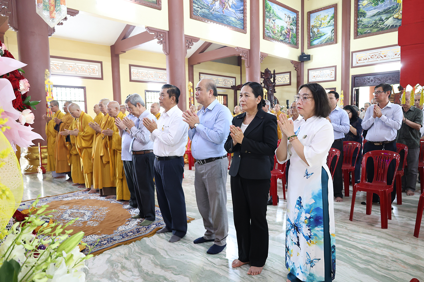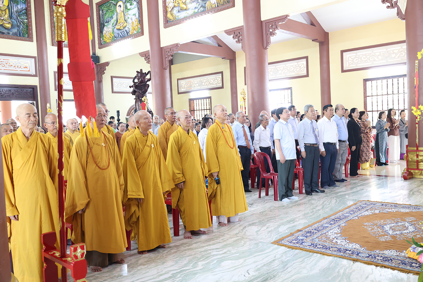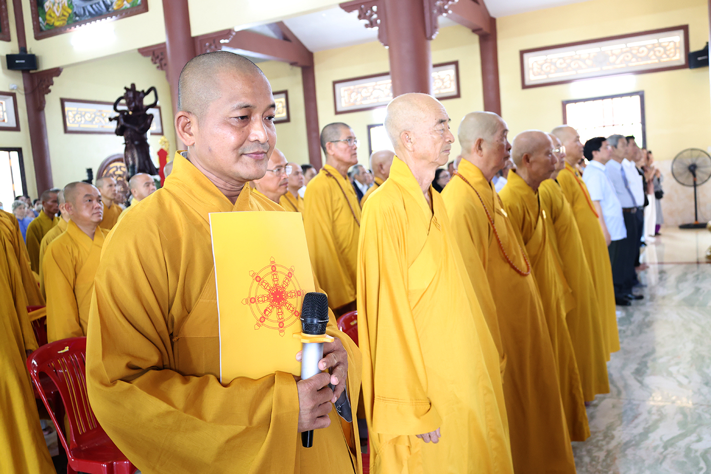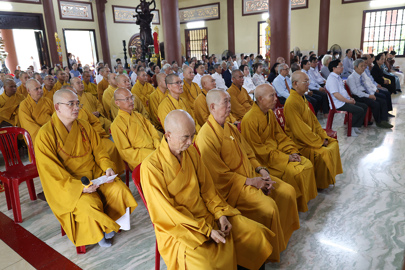 Buổi lễ được cung nghinh Hòa thượng Thích Thiện Tài, Hòa thượng Thích Huệ Hồng – Đồng Chứng Minh BTS GHPGVN tỉnh Long An, Hòa thượng Thích Minh Thiện – UV HĐTS, Phó Trưởng Ban Hoằng pháp TƯ, Trưởng BTS GHPGVN tỉnh Long An, Thượng tọa Thích Quảng Tâm – UV HĐTS, Phó Trưởng Ban Thường trực BTS GHPGVN tỉnh Long An, Chư tôn đức Phó Trưởng BTS, Uỷ viên Thường trực, Thành viên BTS GHPGVN tỉnh, Chư Tôn đức đại diện các ban trực thuộc BTS tỉnh đồng quang lâm tham dự.