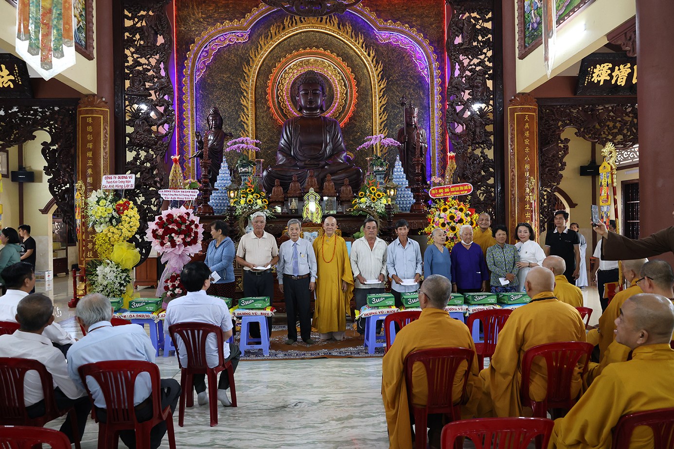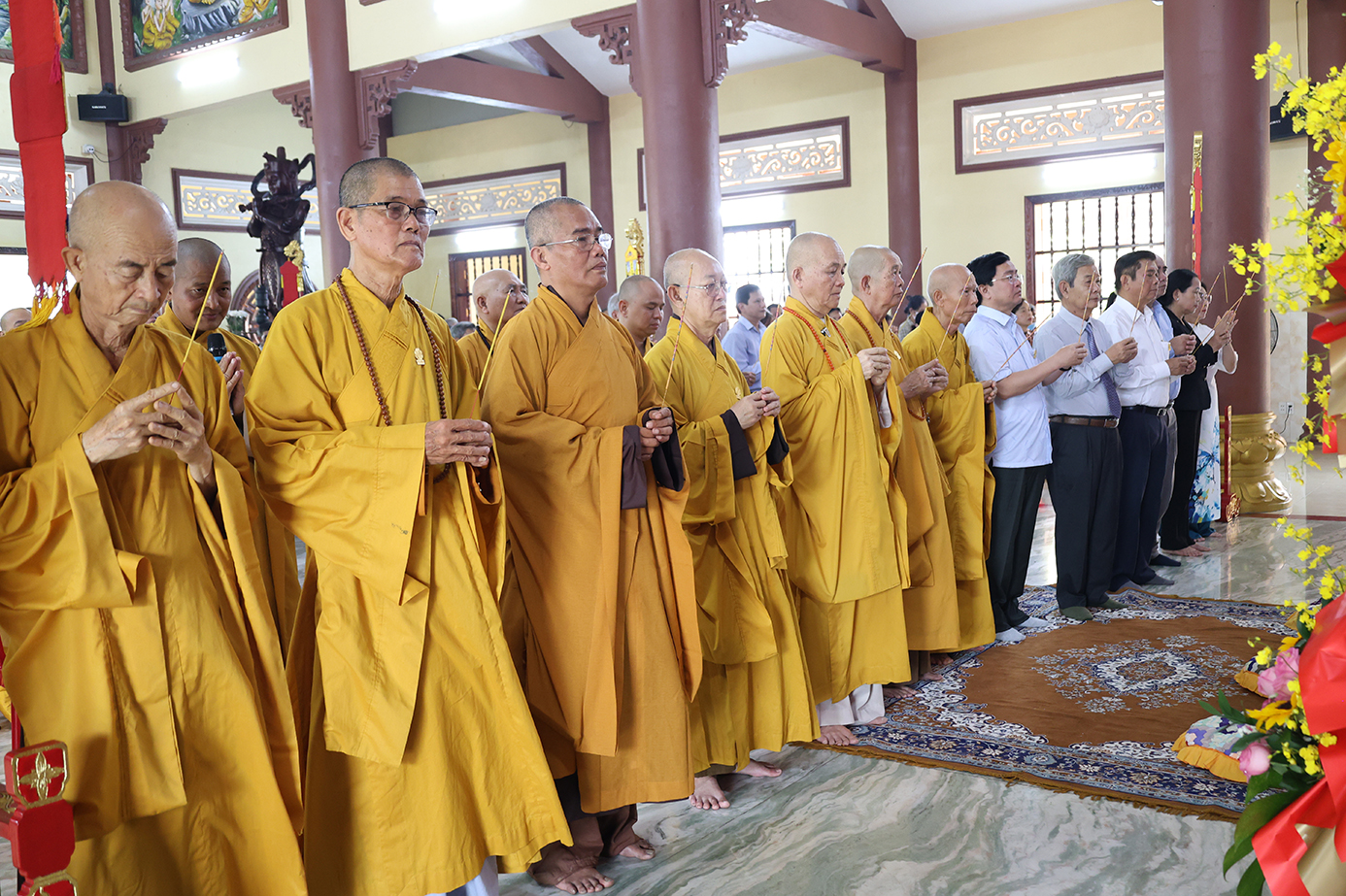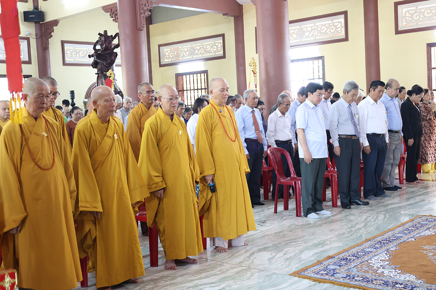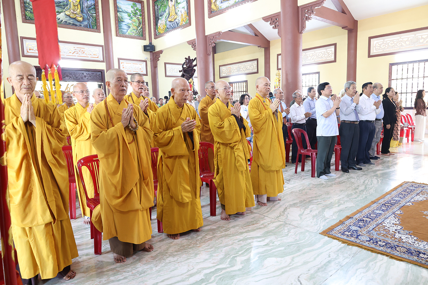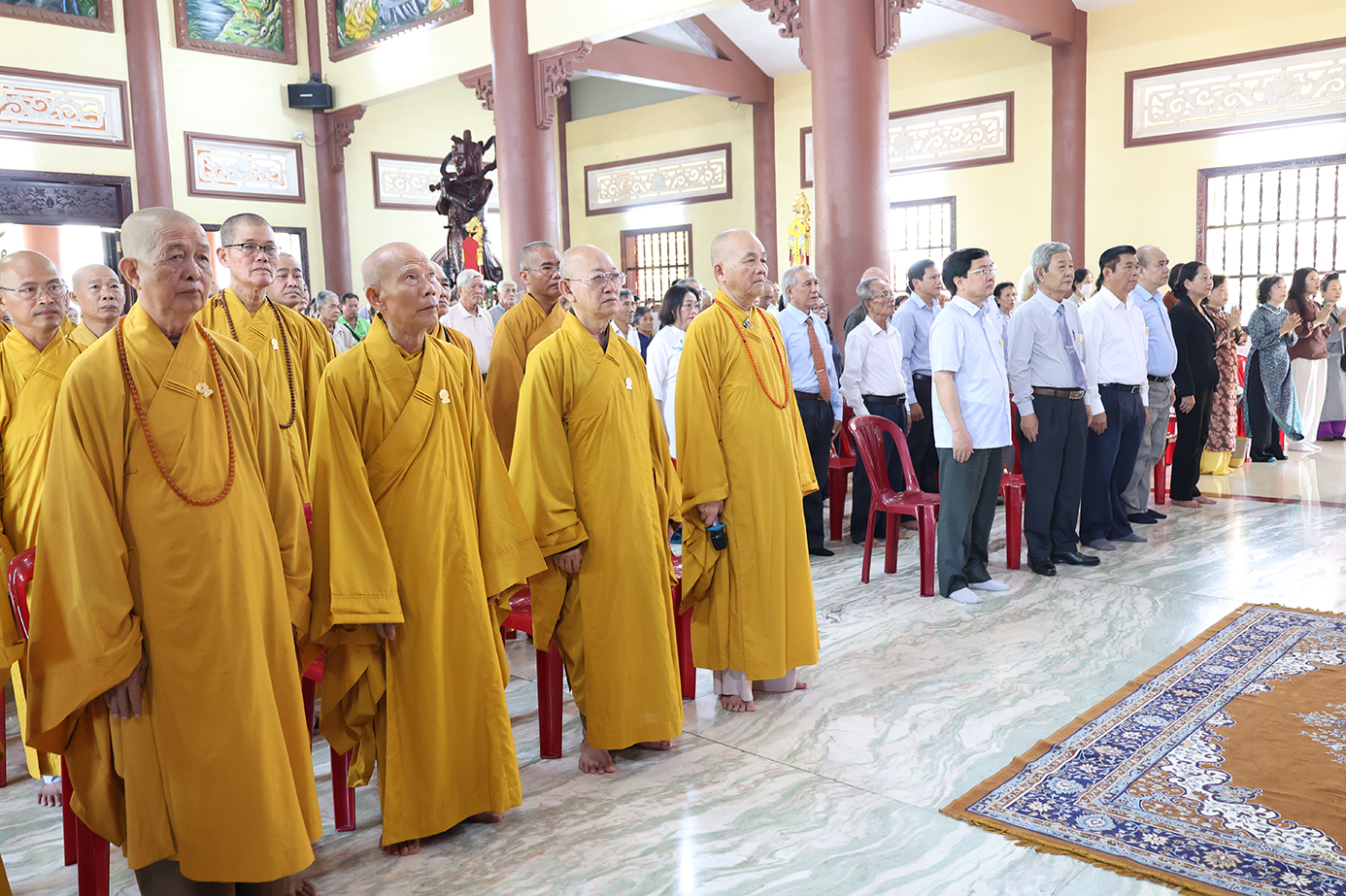 Buổi lễ được cung nghinh Hòa thượng Thích Thiện Tài, Hòa thượng Thích Huệ Hồng – Đồng Chứng Minh BTS GHPGVN tỉnh Long An, Hòa thượng Thích Minh Thiện – UV HĐTS, Phó Trưởng Ban Hoằng pháp TƯ, Trưởng BTS GHPGVN tỉnh Long An, Thượng tọa Thích Quảng Tâm – UV HĐTS, Phó Trưởng Ban Thường trực BTS GHPGVN tỉnh Long An, Chư tôn đức Phó Trưởng BTS, Uỷ viên Thường trực, Thành viên BTS GHPGVN tỉnh, Chư Tôn đức đại diện các ban trực thuộc BTS tỉnh đồng quang lâm tham dự.