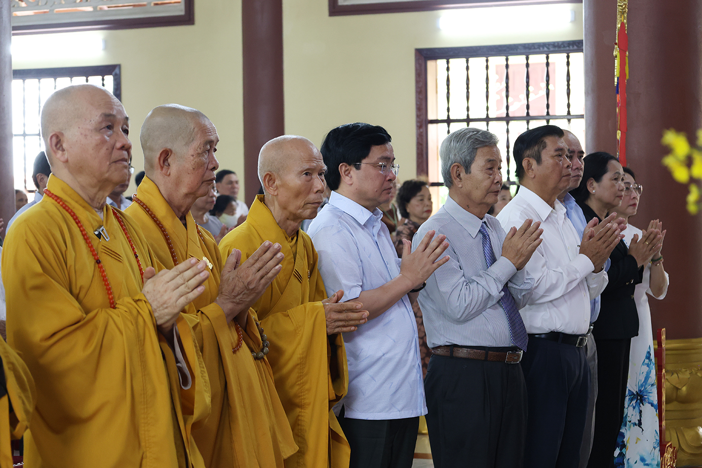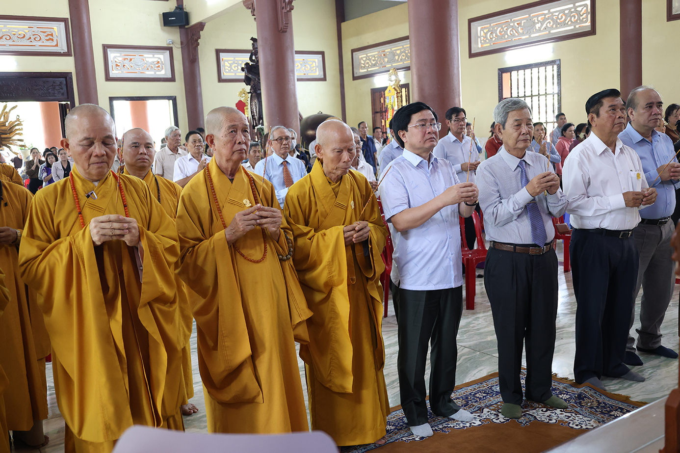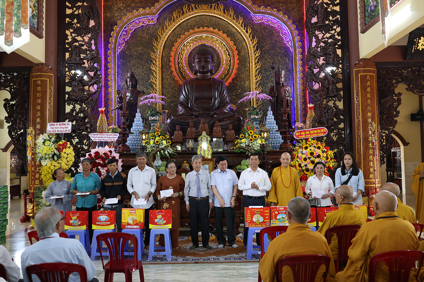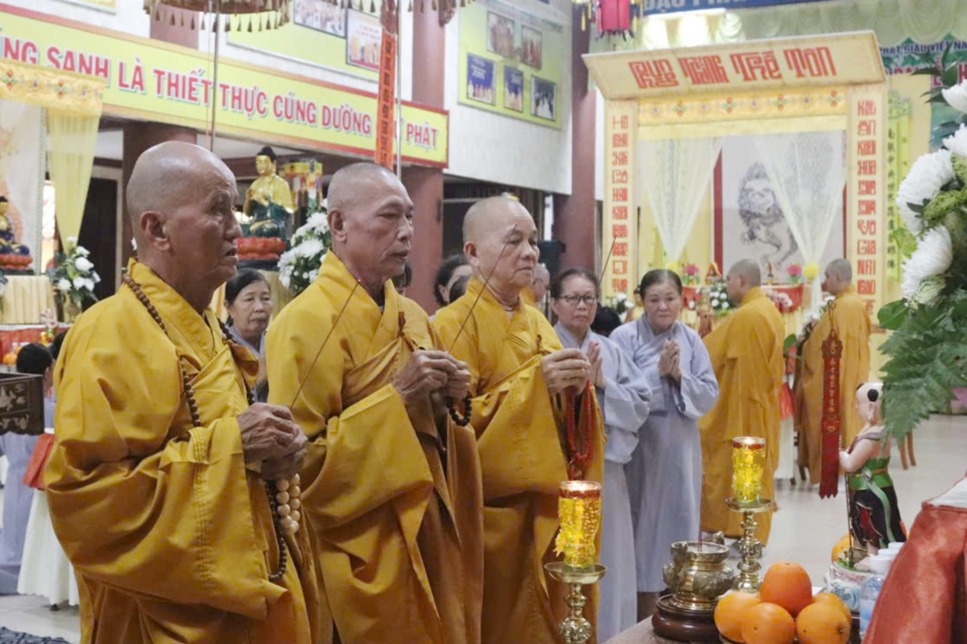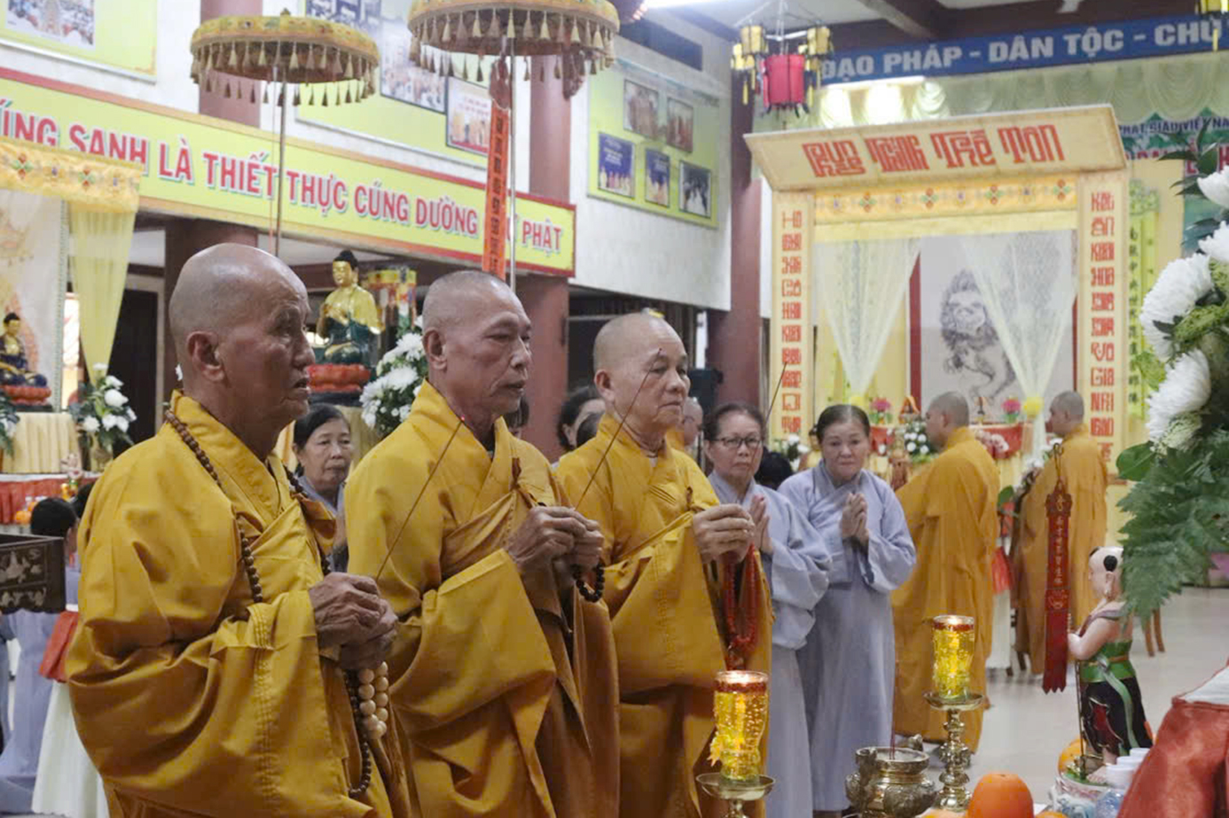 Buổi lễ được cung nghinh Hòa thượng Thích Thiện Tài, Hòa thượng Thích Huệ Hồng – Đồng Chứng Minh BTS GHPGVN tỉnh Long An, Hòa thượng Thích Minh Thiện – UV HĐTS, Phó Trưởng Ban Hoằng pháp TƯ, Trưởng BTS GHPGVN tỉnh Long An, Thượng tọa Thích Quảng Tâm – UV HĐTS, Phó Trưởng Ban Thường trực BTS GHPGVN tỉnh Long An, Chư tôn đức Phó Trưởng BTS, Uỷ viên Thường trực, Thành viên BTS GHPGVN tỉnh, Chư Tôn đức đại diện các ban trực thuộc BTS tỉnh đồng quang lâm tham dự.