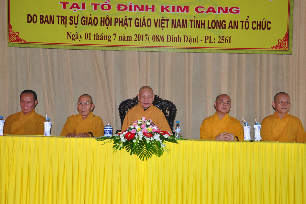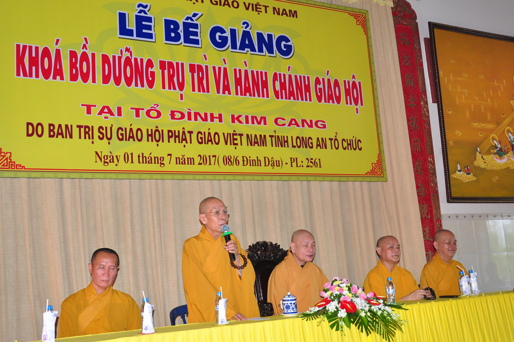 Sáng nay, vào lúc 09 giờ 30, ngày 01 tháng 7 năm 2017 (nhằm 08/6/Đinh Dậu) tại tổ đình Kim Cang, huyện Thủ Thừa, tỉnh Long An diễn ra lễ bế giảng khóa Bồi dưỡng Trụ trì và hành chánh Giáo hội năm 2017 do Ban Trị sự GHPGVN tỉnh Long An tổ chức.