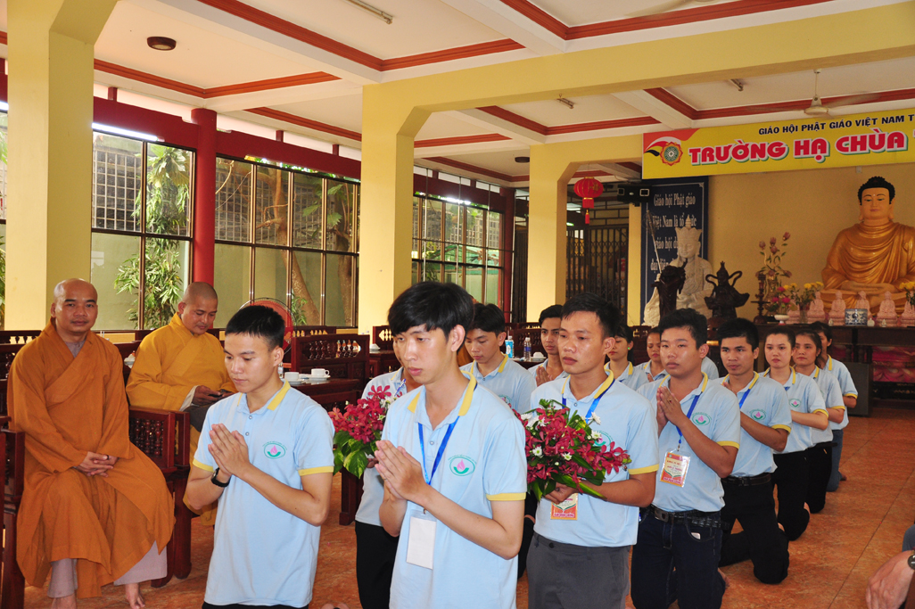 Ban tổ chức đã truyền đạt, giải thích cho các em hiểu rõ lợi ích của việc quy y tam bảo từ đó hướng dẫn cho 26 em được Quy y tam bảo.