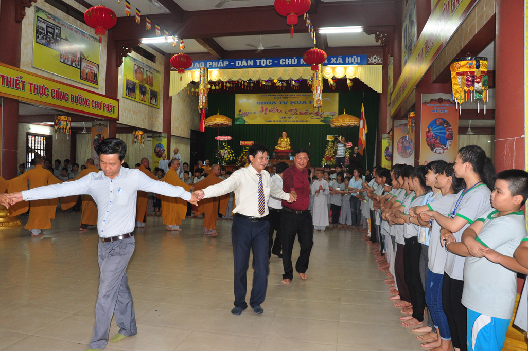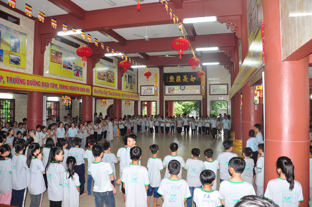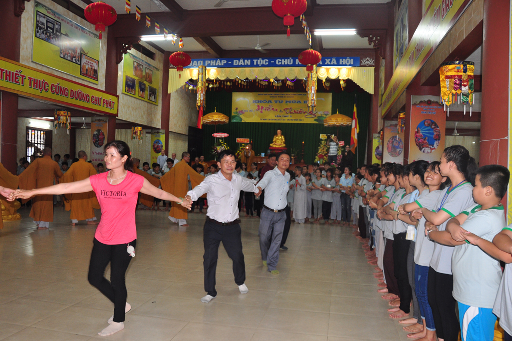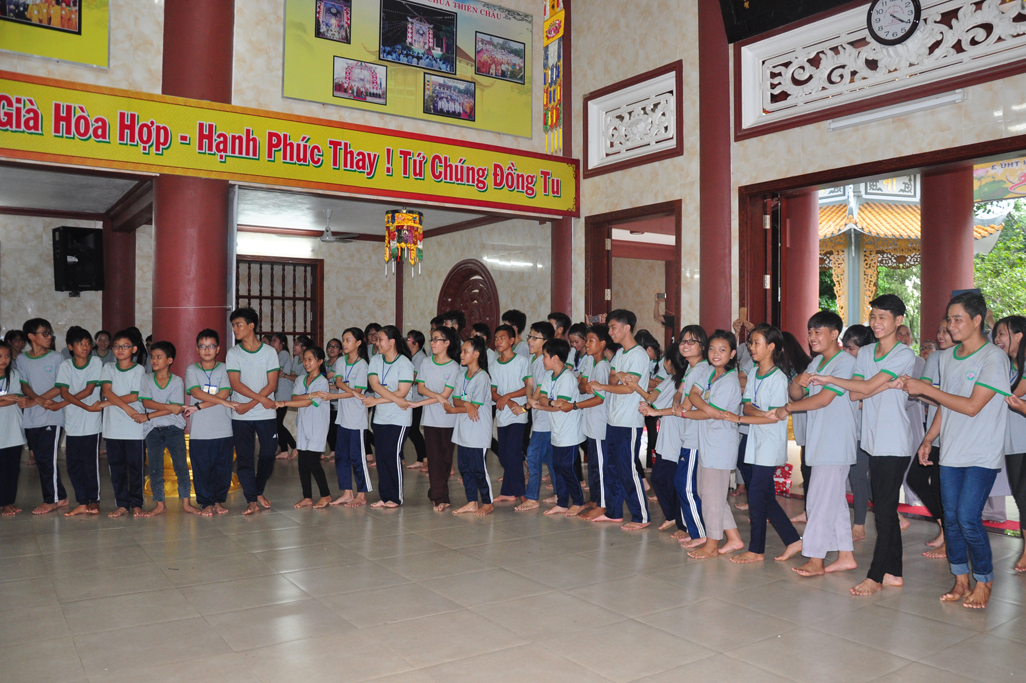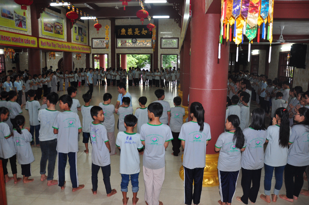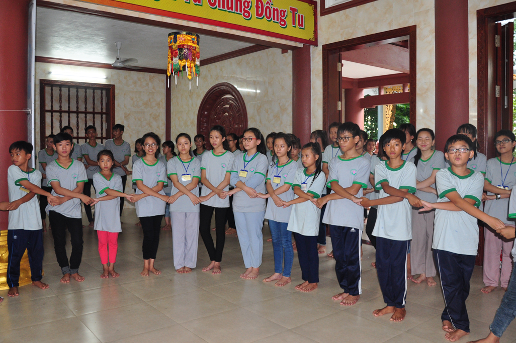 Ban tổ chức đã tạo điều kiện sinh hoạt tu tập và vui chơi cho các em theo đúng bảng chương trình, kế hoạch các em được Kinh hành niệm Phật, Học giáo lý (đố vui giáo lý), Học kỷ năng sống (nghệ thuật ứng xử), Giao lưu đố vui, văn nghệ gameshow tìm kiếm tài năng