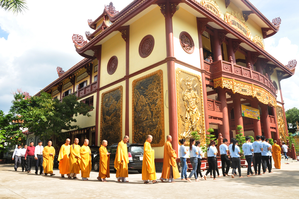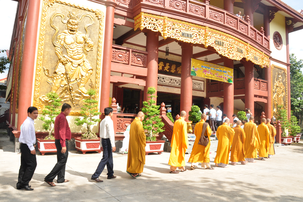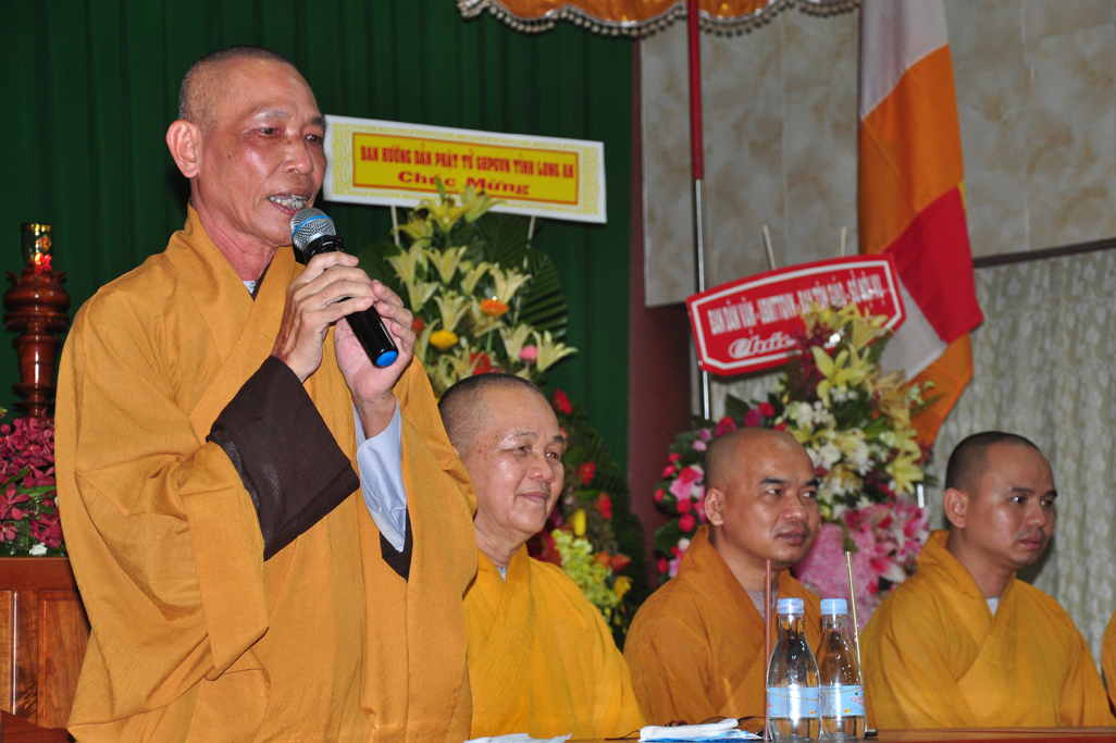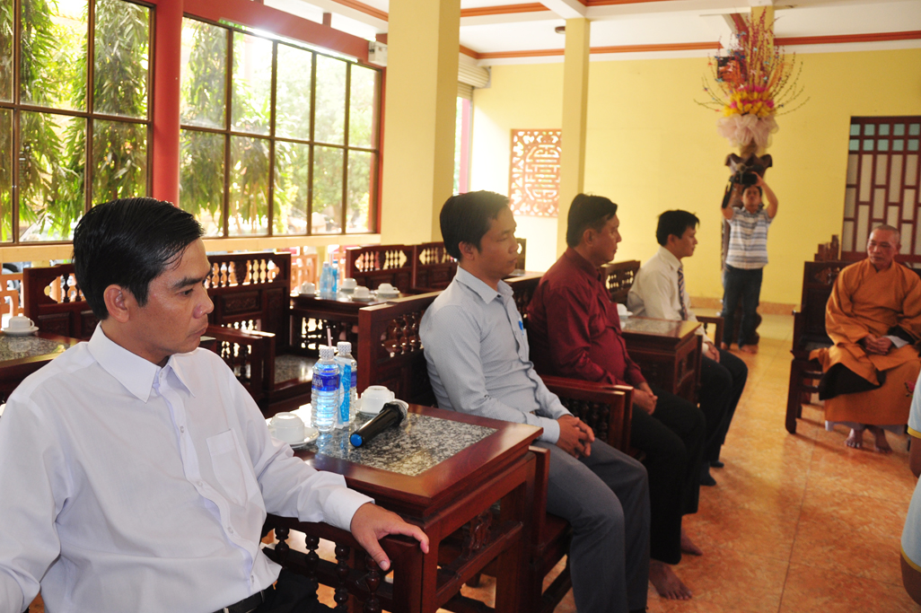 Thay mặt lãnh đạo Chính quyền Ông Nguyễn Văn Mưng- Phó ban Tôn giáo – Sở Nội vụ tỉnh phát biểu chúc mừng. Trong phát biểu có đoạn “Với gần hai ngàn năm gắn bó và đồng hành cùng dân tộc, Phật giáo Việt Nam đã trải qua những thăng trầm cùng với lịch sử đất nước. Song, thời kỳ nào Phật giáo cũng lấy đức từ bi, hỷ xả, lấy chân – thiện – mỹ để giáo hóa chúng sinh, lấy trí tuệ làm sự nghiệp và phương châm hành đạo. Giáo lý Phật giáo đã thấm nhuần trong đời sống của đông đảo người dân Việt Nam. Trong bất cứ thời kỳ nào của lịch sử, Phật giáo cũng có những đóng góp xứng đáng cho sự nghiệp bảo vệ và xây dựng đất nước, với tinh thần “Hộ quốc, an dân”.