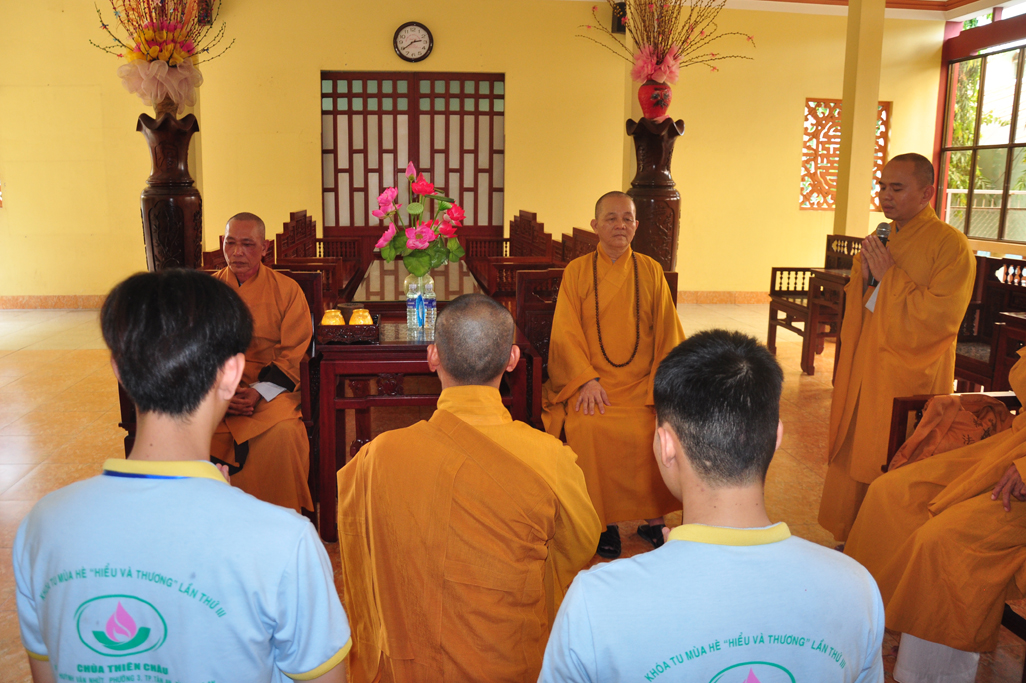 Hoà thượng mong muốn sau bốn ngày ở chùa các em được thực tập theo tinh thần Phật giáo “ Hiểu và thương” hãy lấy đây làm phương châm sống. Hoà thượng mong rằng các em sau khi về nhà giữ nếp sống này tại ngôi nhà của mình và hy vọng các em tinh tấn tu học. Năm tới các em về chùa Thiên Châu để tiếp tục tu học.