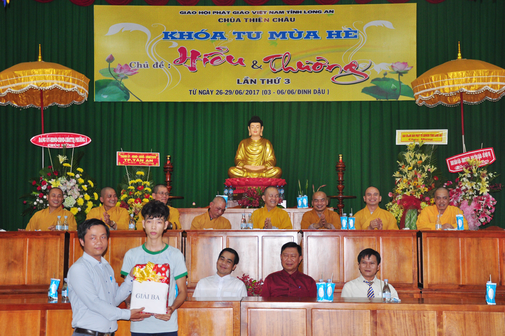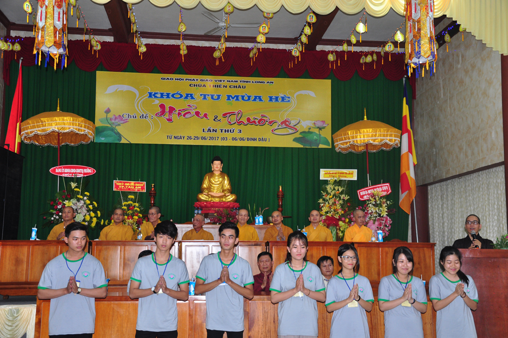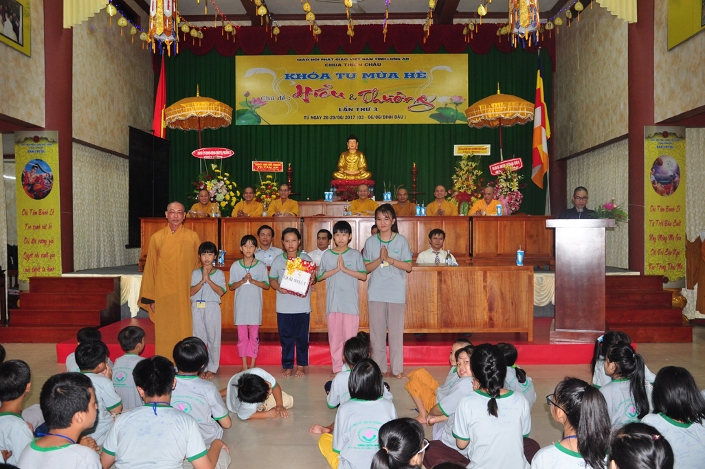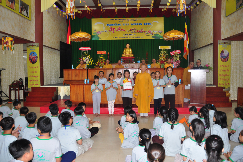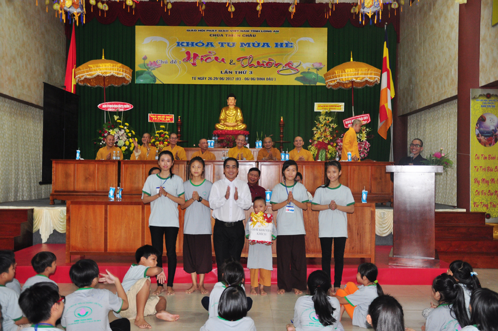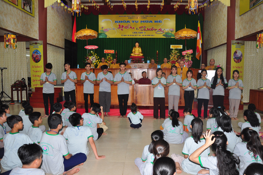 Chiều ngày 29/06/2017(06/06/ Đinh Dậu) tại chùa Thiên Châu, số 101, Đường Huỳnh Văn Nhứt, Phường 3, Tp. Tân An tỉnh Long An long trọng diễn ra lễ bế mạc khoá tu mùa hè “ Hiểu & Thương lần thứ 3.
