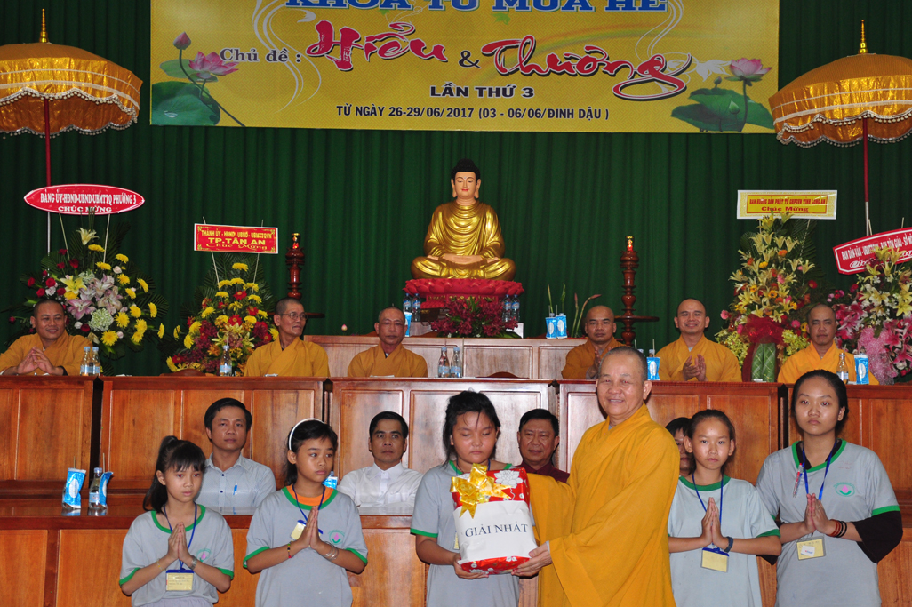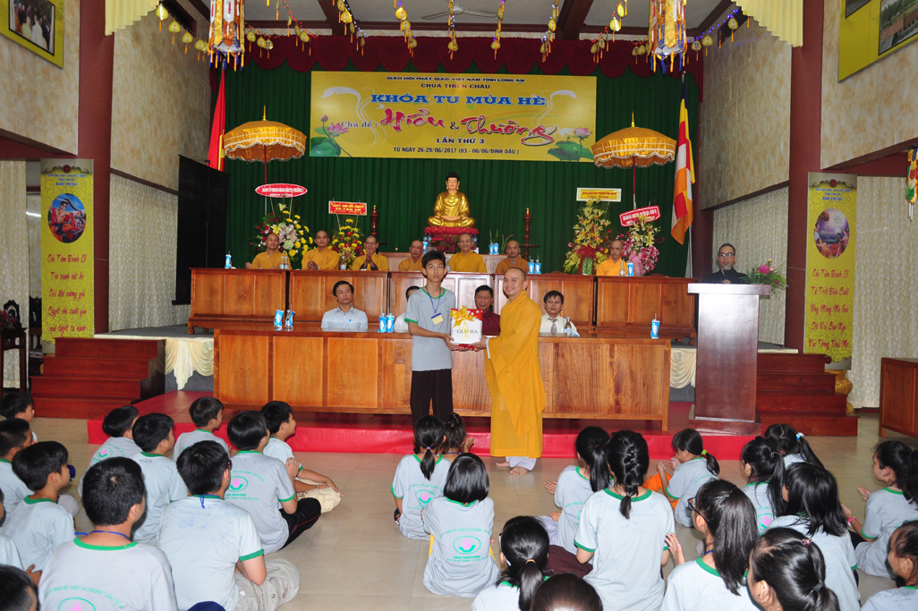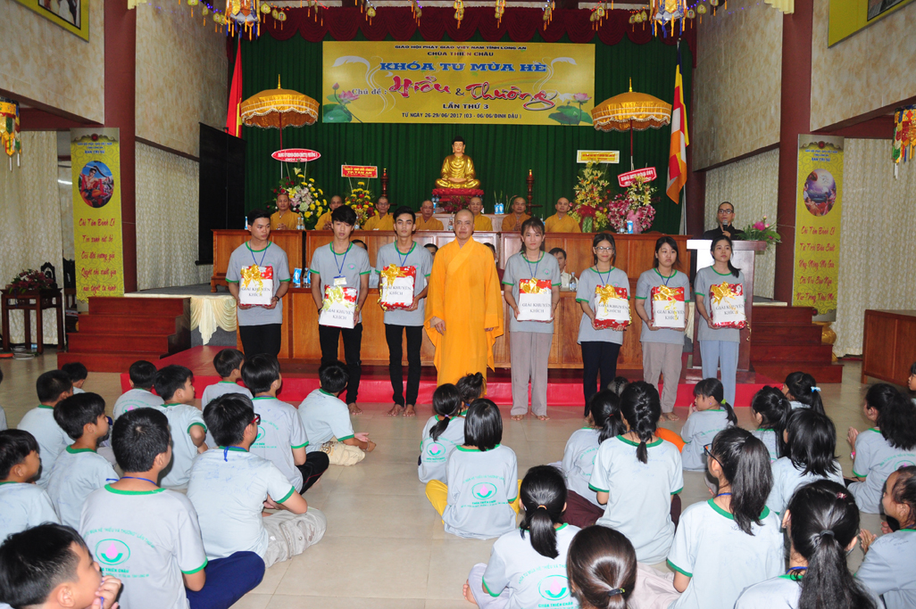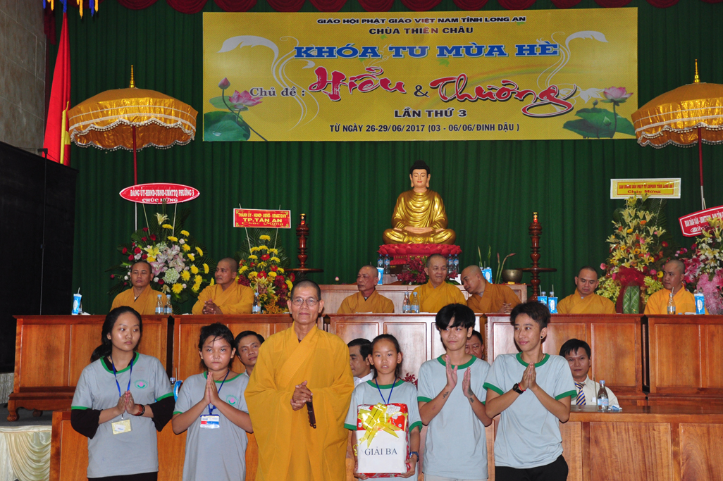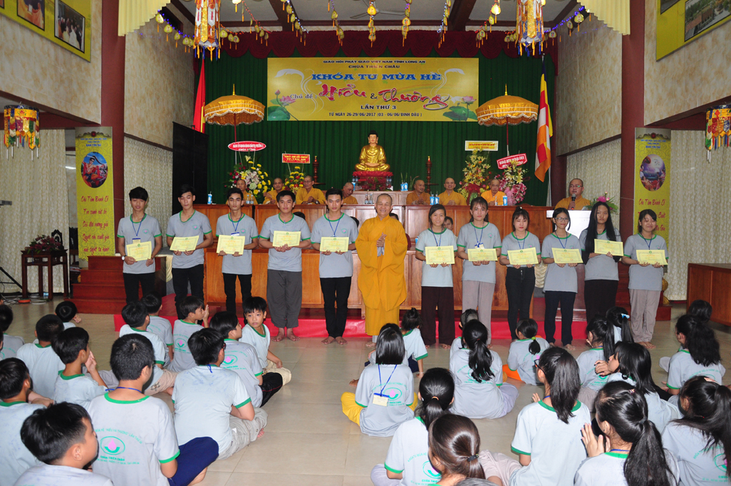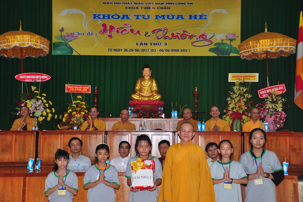 Chiều ngày 29/06/2017(06/06/ Đinh Dậu) tại chùa Thiên Châu, số 101, Đường Huỳnh Văn Nhứt, Phường 3, Tp. Tân An tỉnh Long An long trọng diễn ra lễ bế mạc khoá tu mùa hè “ Hiểu & Thương lần thứ 3.