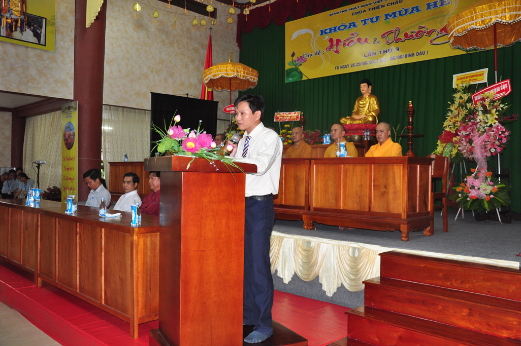 Thay mặt Lãnh đạo Ban Tôn giáo, ông kính chúc quý vị Tăng Ni, Phật tử an lạc, mọi sự viên thành; chúc Bế khai giảng khóa tu mùa hè năm 2017 thành công tốt đẹp.