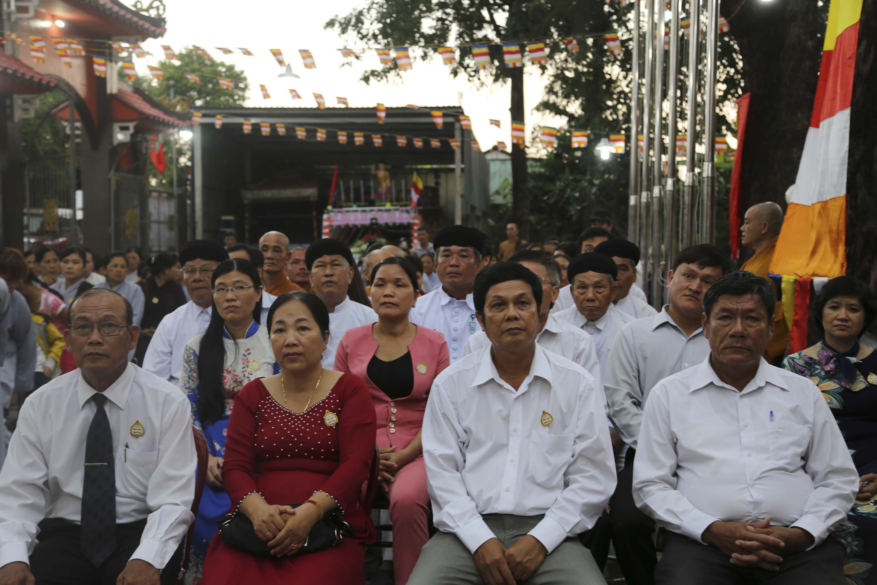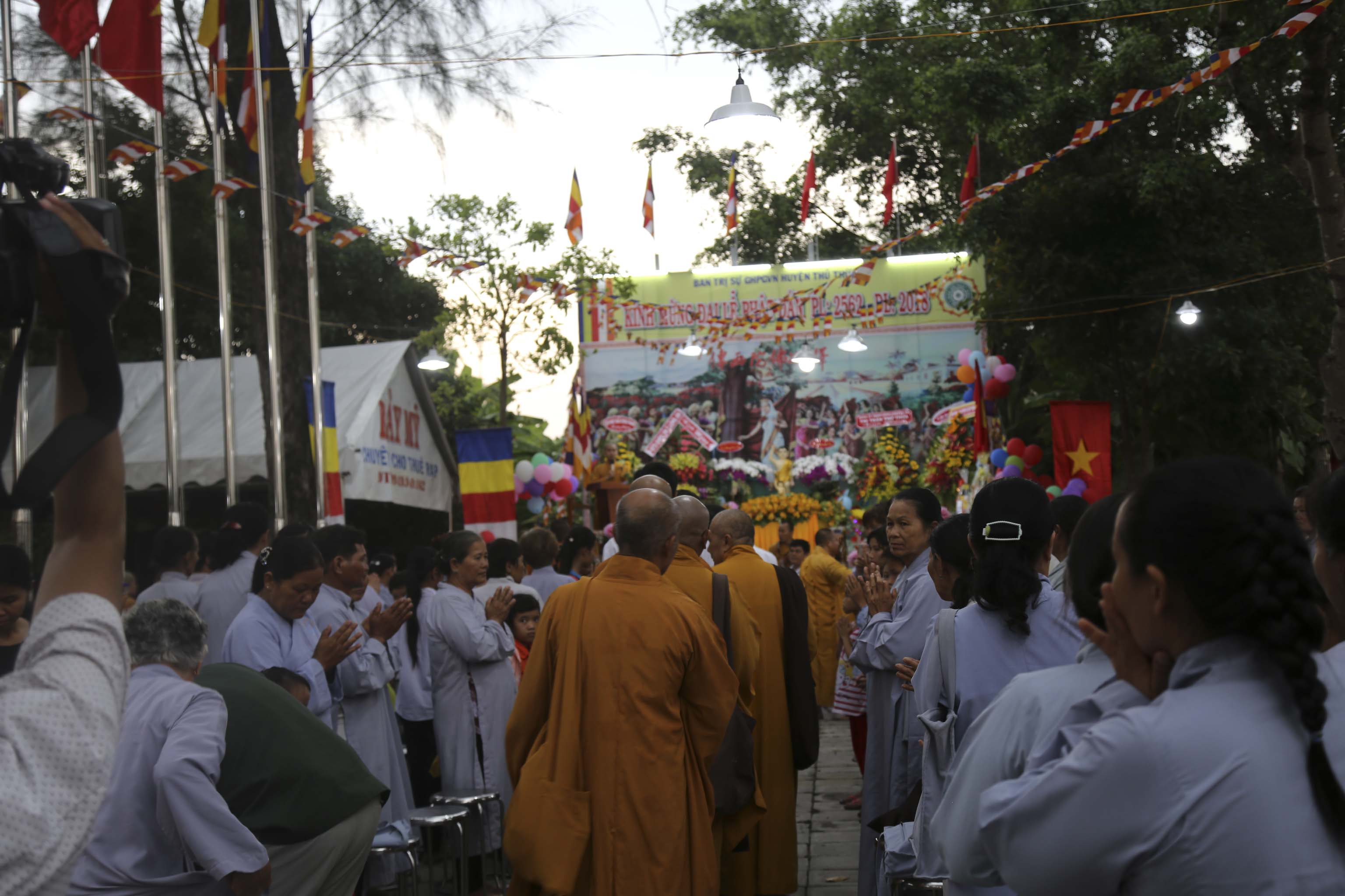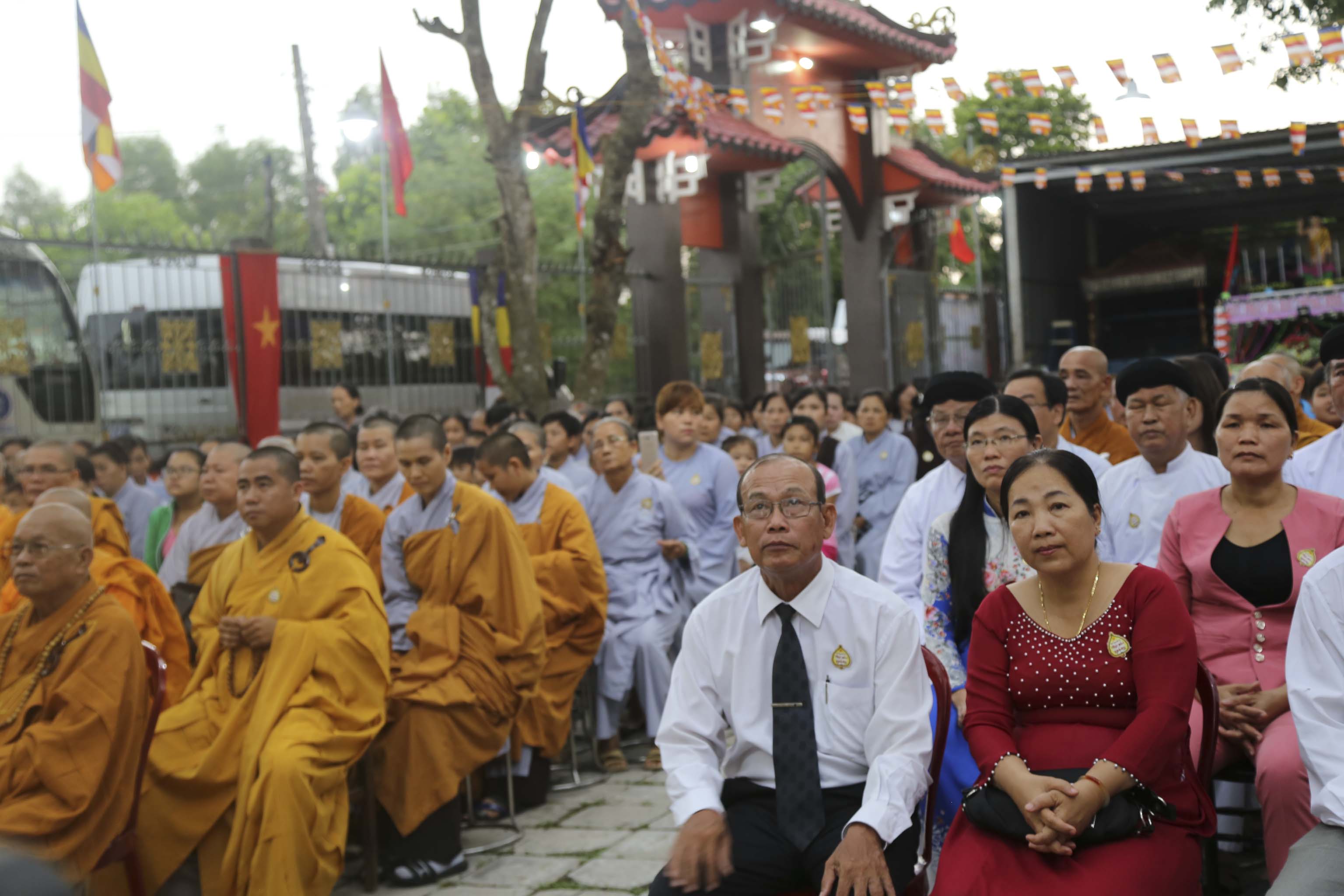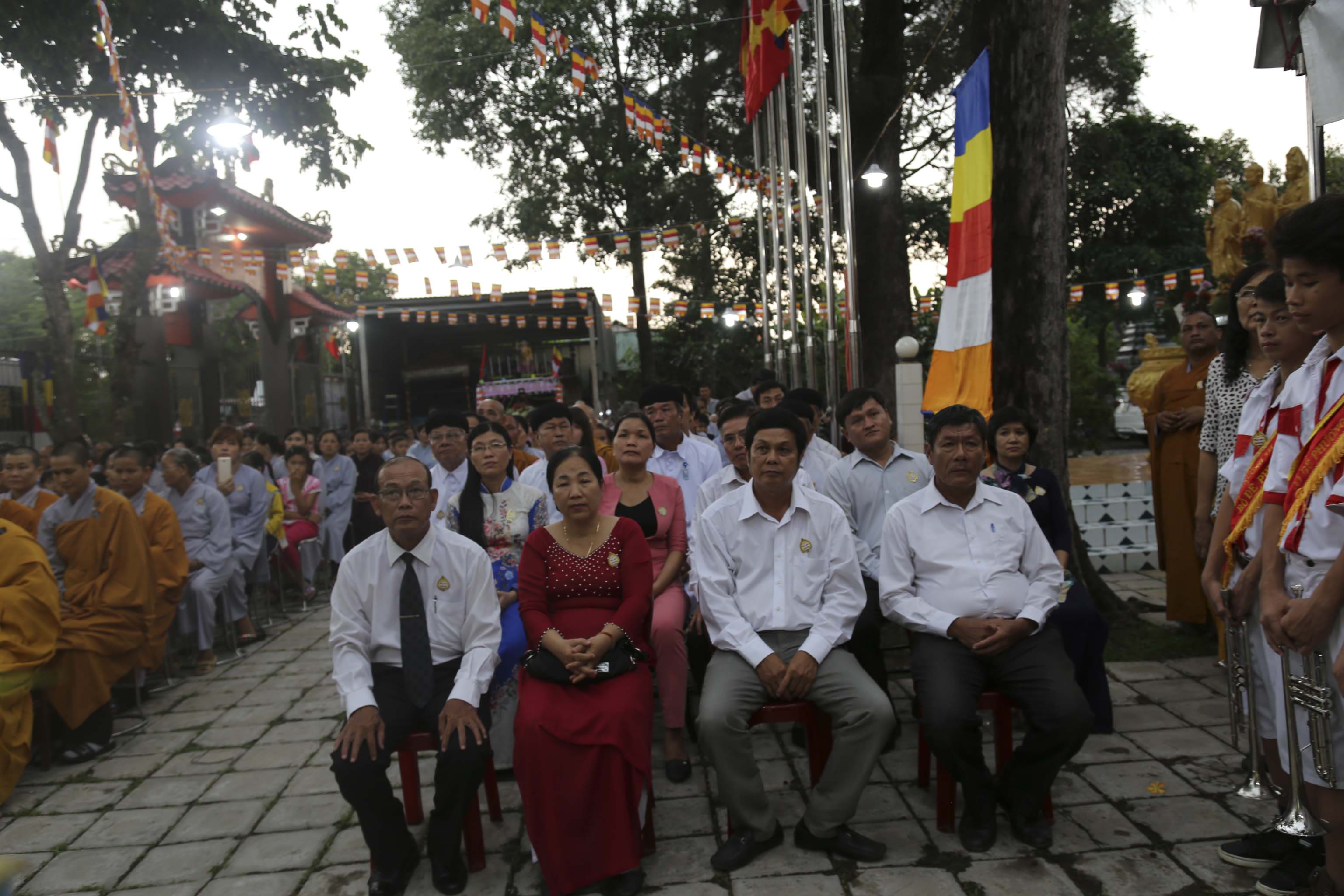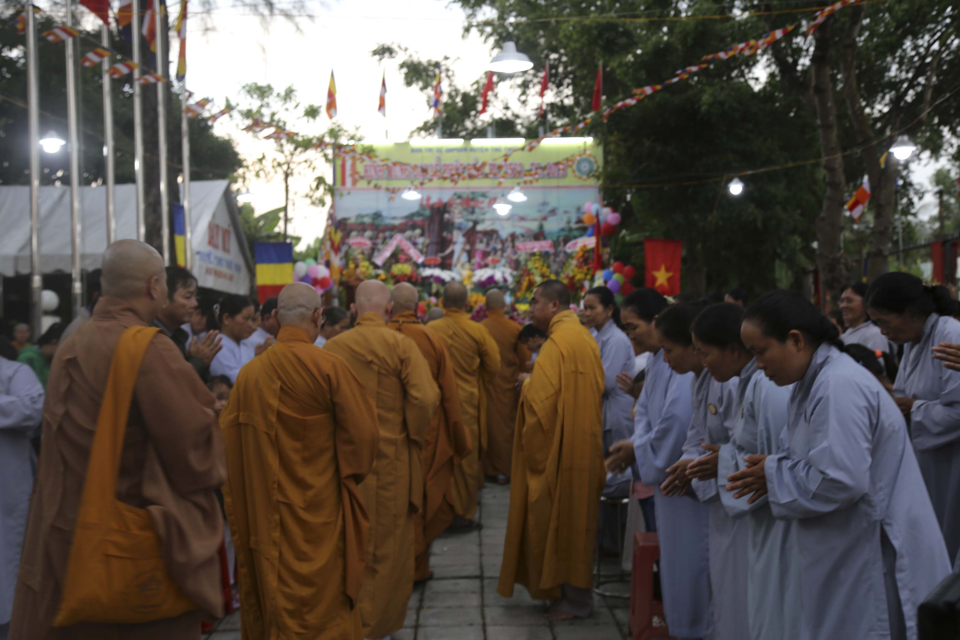 Từng hồi chuông trống Bát-nhã trầm hùng vang dội, buổi lễ Kính mừng Phật đản chính thức bắt đầu. Sau các phần nghi thức chào quốc kỳ, Ban tổ chức cung thỉnh chư Tôn đức Giáo phẩm, chư Tôn đức Tăng Ni đồng kính niệm, dâng hoa cúng dường Đức Phật Sơ sinh.