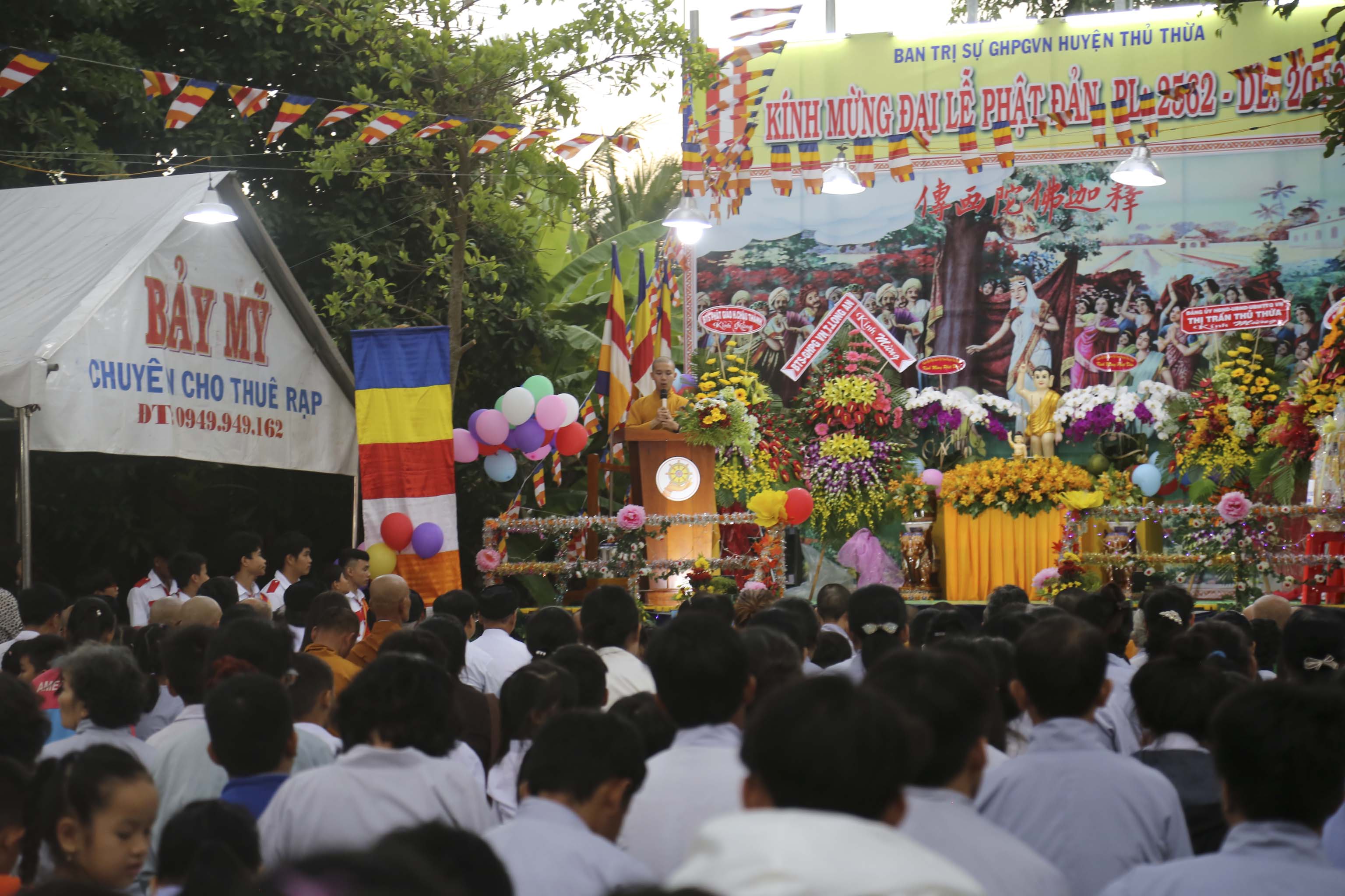 Trong giây phút trang trọng này, Ban tổ chức cũng đã cung thỉnh TT. Thích Quảng Tâm Phó ban thường trực BTS GHPGVN tỉnh Long An tuyên đọc lời Diễn văn kính mừng Phật đản của Hòa thượng Chủ tịch HĐTSTWW GHPGVN. Toàn thể chư Tăng Ni và Phật tử huyện Thủ Thừa đều trân trọng lắng nghe.