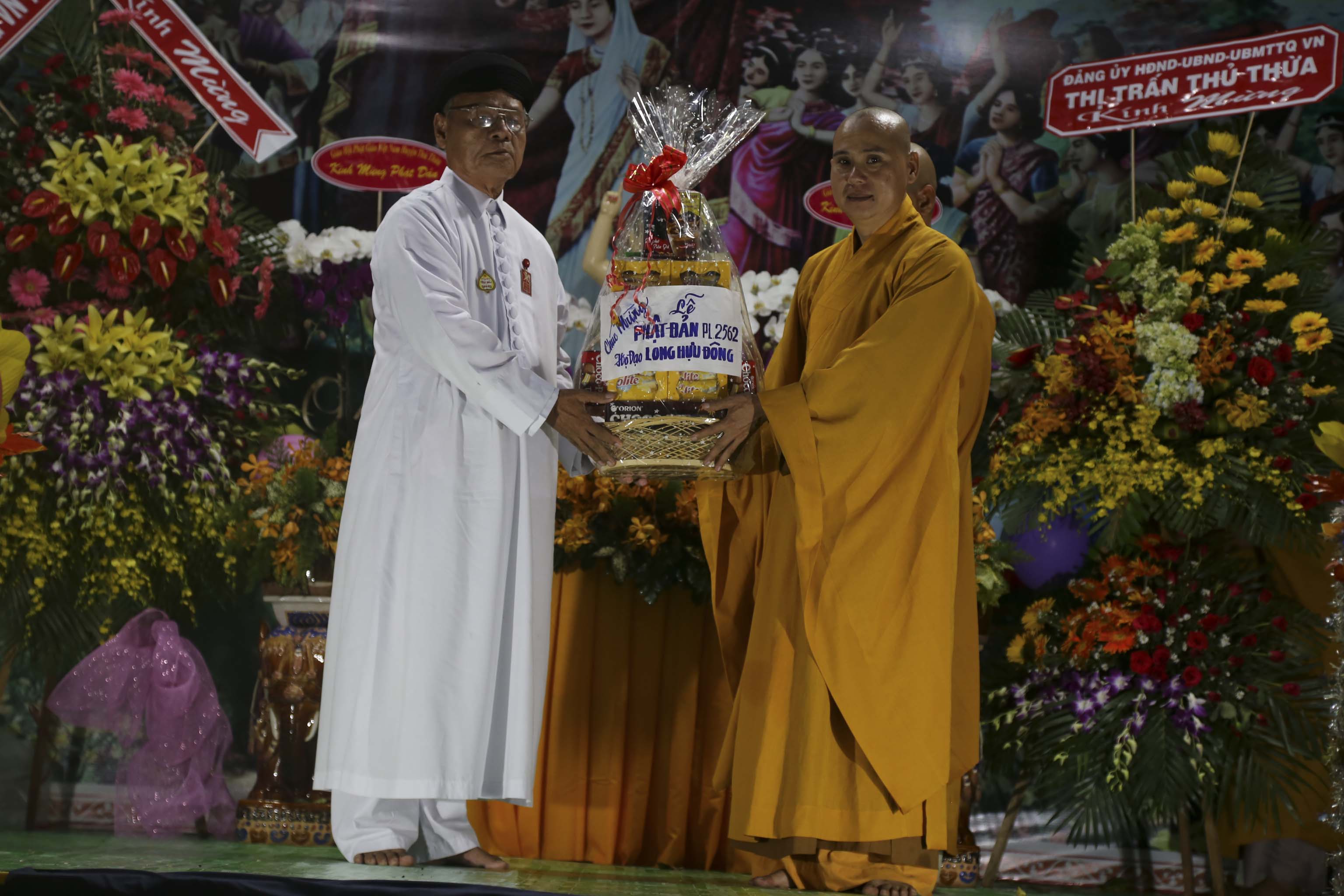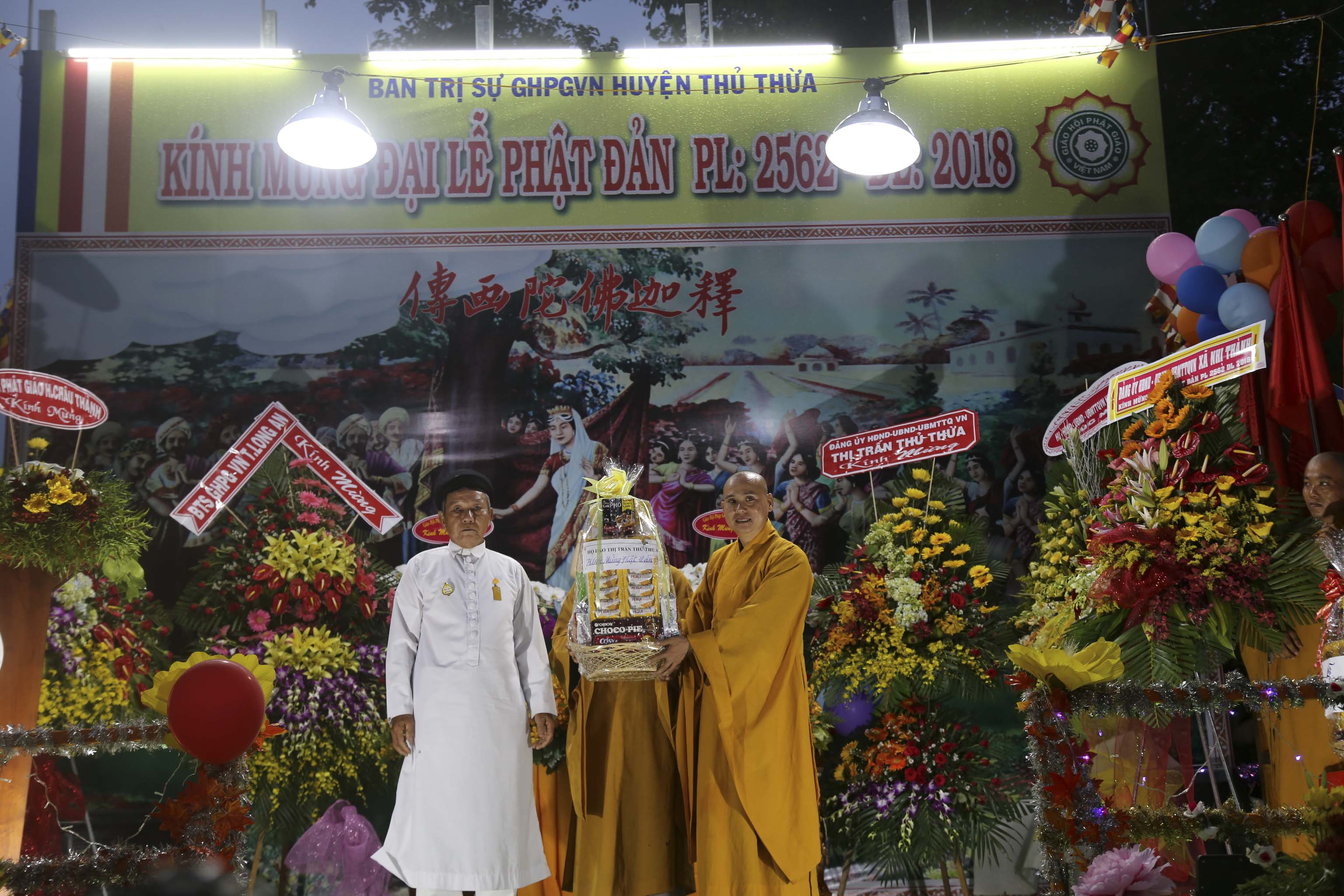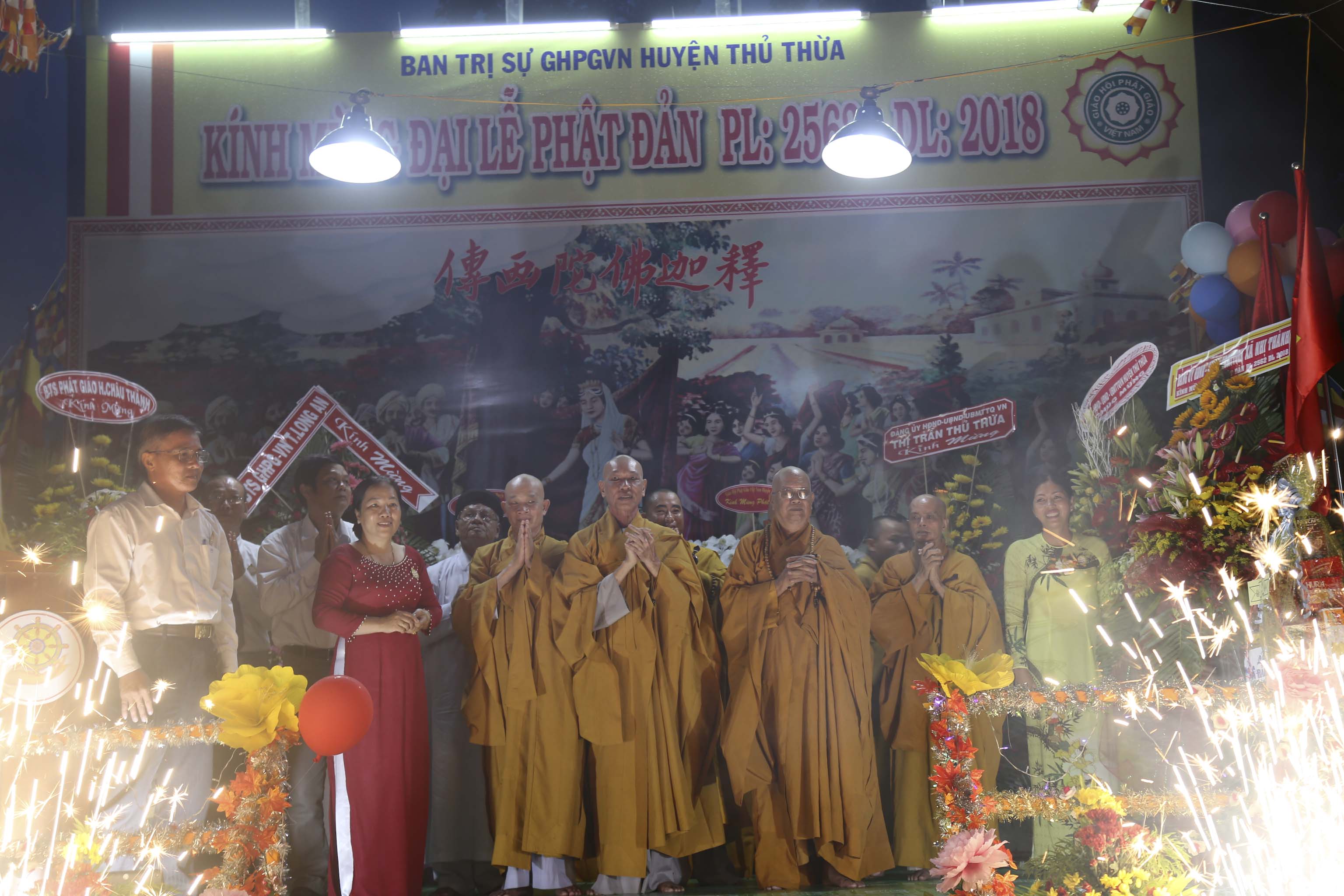 Chào mừng buổi lễ thiêng liêng đầy ý nghĩa nhân văn này, Quý vị lãnh đạo Tỉnh ủy – Hội đồng nhân dân- Ủy ban Nhân dân- Ủy ban Mặt trận Tổ quốc VN tỉnh Long An cũng đã kính thư chúc mừng Đại lễ, chia sẻ niềm vui cùng chư Tăng Ni Ban Trị sự Phật giáo huyện Thủ Thừa, do Ông Nguyễn Văn Thắm tuyên đọc.