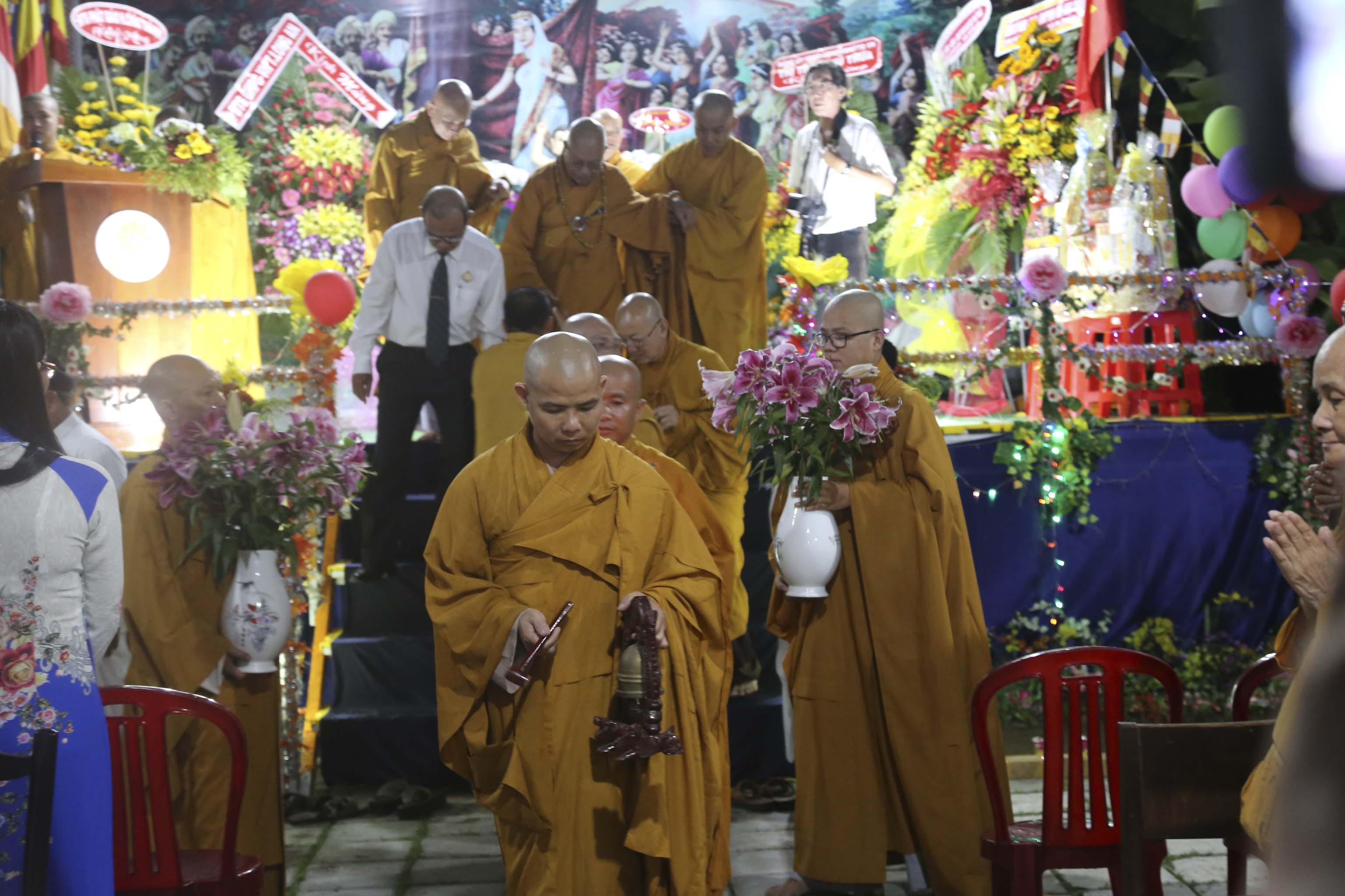 Vào lúc 16g, chư Tôn đức Tăng Ni và hơn 300 Phật tử huyện nhà đồng vân tập về chùa Thiên Phước. Đúng 17g, Ban nghi lễ trân trọng cung thỉnh chư Tôn đức Giáo phẩm quang lâm hội trường chứng minh Lễ khai mạc. Các Phật tử đồng trang nghiêm hai hàng cung nghinh quý Ngài.
