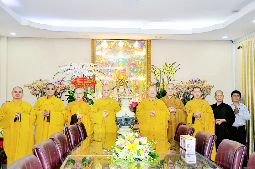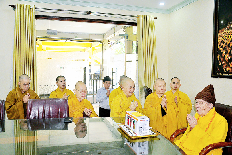 Sau cùng, đoàn về đến Văn phòng 2 Trung ương GHPGVN tại Thiền viện Quảng Đức để được đảnh lễ và dâng lời khánh tuế đến quý Ngài.