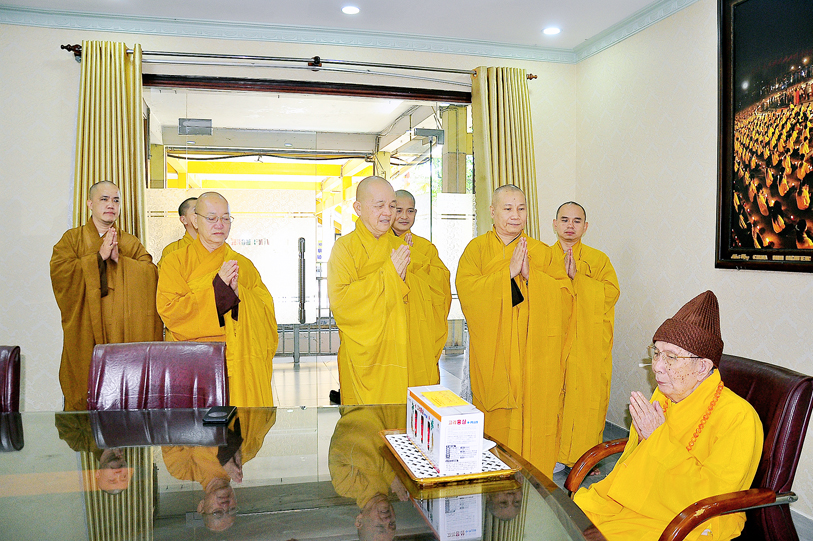 Lịch trình khánh tuế, Ban Trị sự GHPGVN tỉnh Long An được đến đảnh lễ Đức Trưởng lão HT.Thích Trí Quảng – Phó Pháp chủ kiêm Giám luật HĐCM GHPGVN; Đức Trưởng lão HT. Thích Đức Nghiệp – Phó Pháp chủ Hội đồng Chứng minh GHPGVN; Đức HT. Thích Thiện Nhơn – Chủ tịch HĐTS Trung ương GHPGVN; HT.Thích Giác Toàn – Phó Chủ tịch HĐTS, Viện trưởng Viện Nghiên cứu Phật học VN cùng chư tôn giáo phẩm Văn phòng 2 Trung ương GHPGVN.