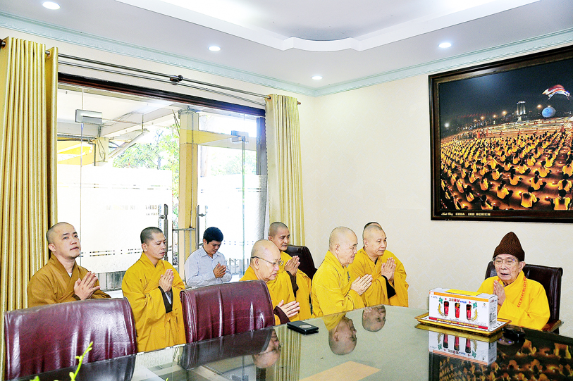 Trong lời dâng khánh tuế, Hòa thượng trưởng đoàn đã kính trình lên chư tôn giáo phẩm những thành tựu Phật sự mà giáo hội Phật giáo Long An đạt được như: sự ổn định, phát triển các tự viện, sinh hoạt của Tăng Ni, thành lập được 11 hạ trường cho 1000 hành giả an cư. Về xã hội Phật giáo Long An có nhiều sự đóng góp về mặt an sinh xã hội; tuân thủ chính sách, pháp luật của Nhà nước. Đặc biệt thời gian qua, Phật giáo Long An đã nghiêm túc thực hiện những quy định của Nhà nước về phòng, chống dịch Covid-19 và có nhiều hoạt đồng hỗ trợ, đóng góp cùng chính quyền trong việc phòng, chống dịch.